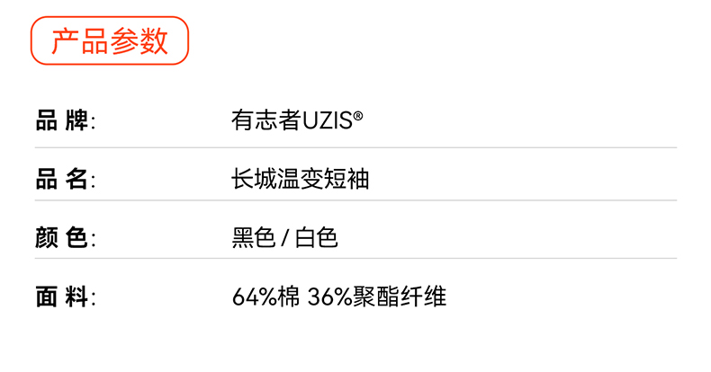 有志者UZIS有志青年长城温变短袖男夏季休闲透气健身篮球运动T恤