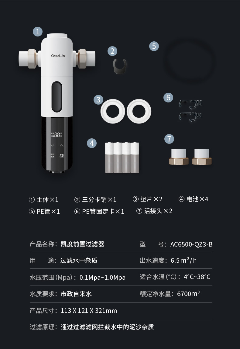 【新品】凯度QZ3前置过滤器家用自动反冲洗自来水全屋中央净水器