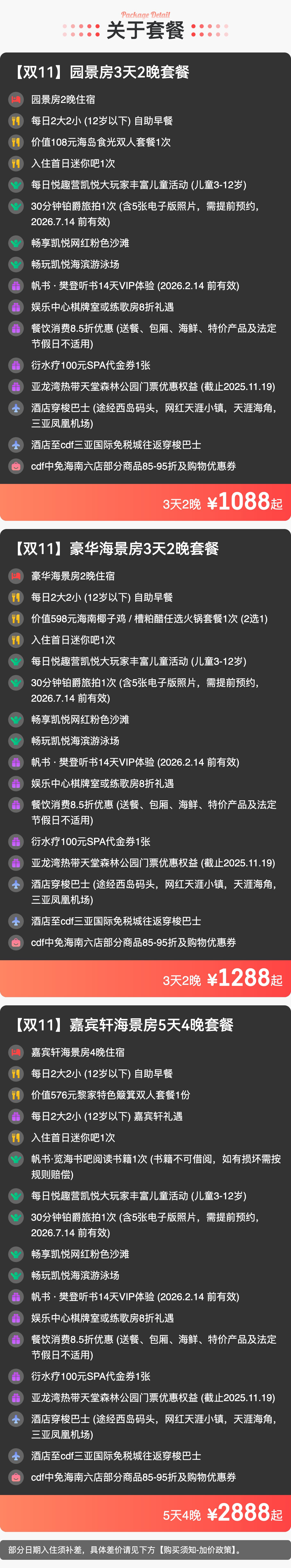 双11返场!2晚/4晚【三亚天丽湾凯悦酒店】元旦/寒假/春节/清明/五一可用!含特色正餐,打卡三亚网红亲子酒店,嗨玩每日悦趣营及丰富休闲玩乐活动~
