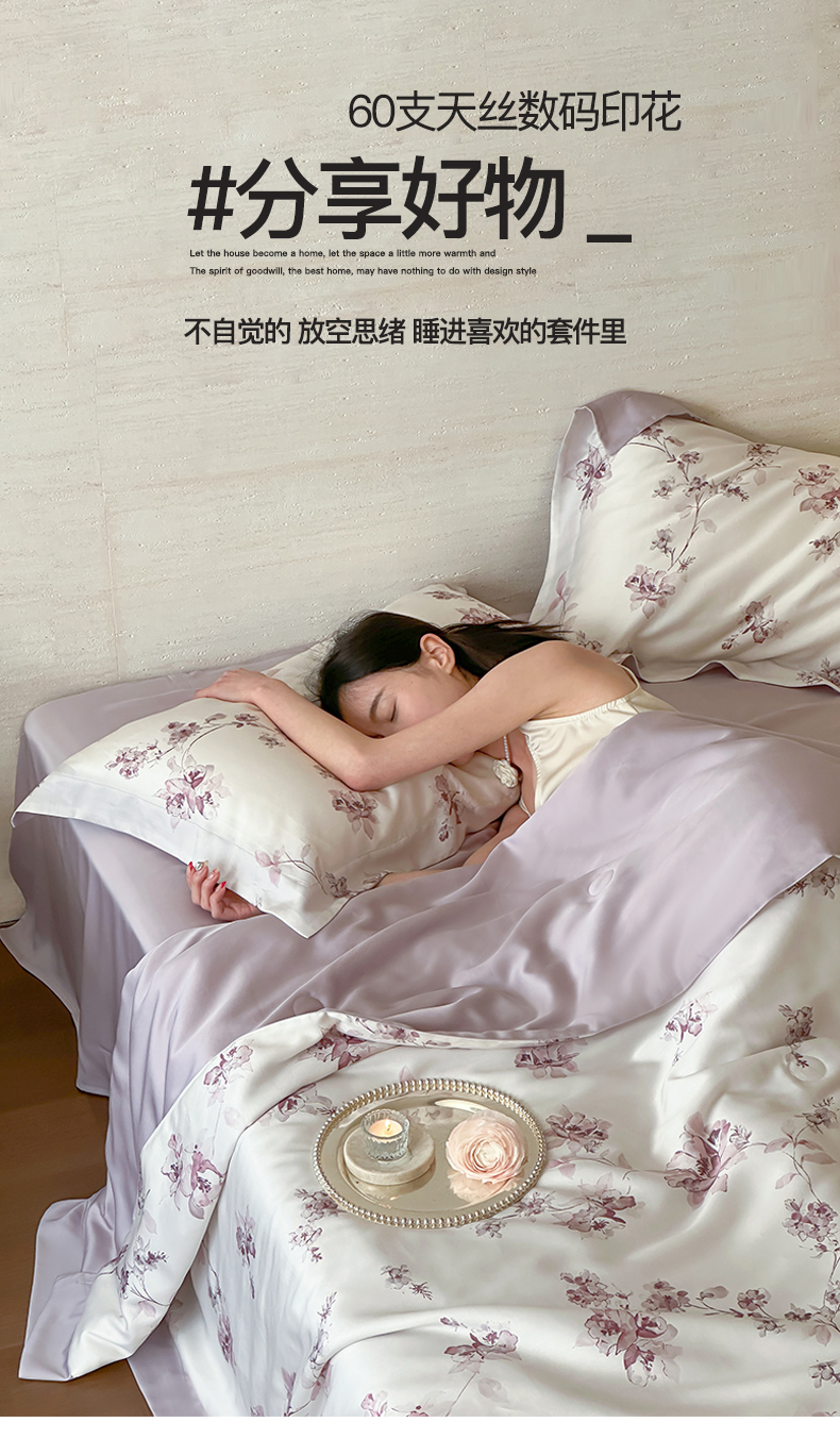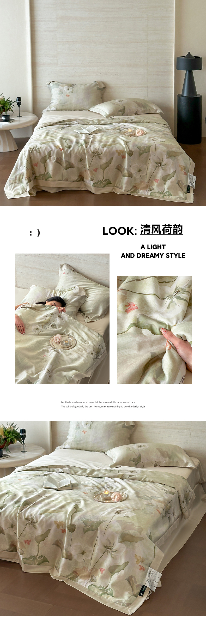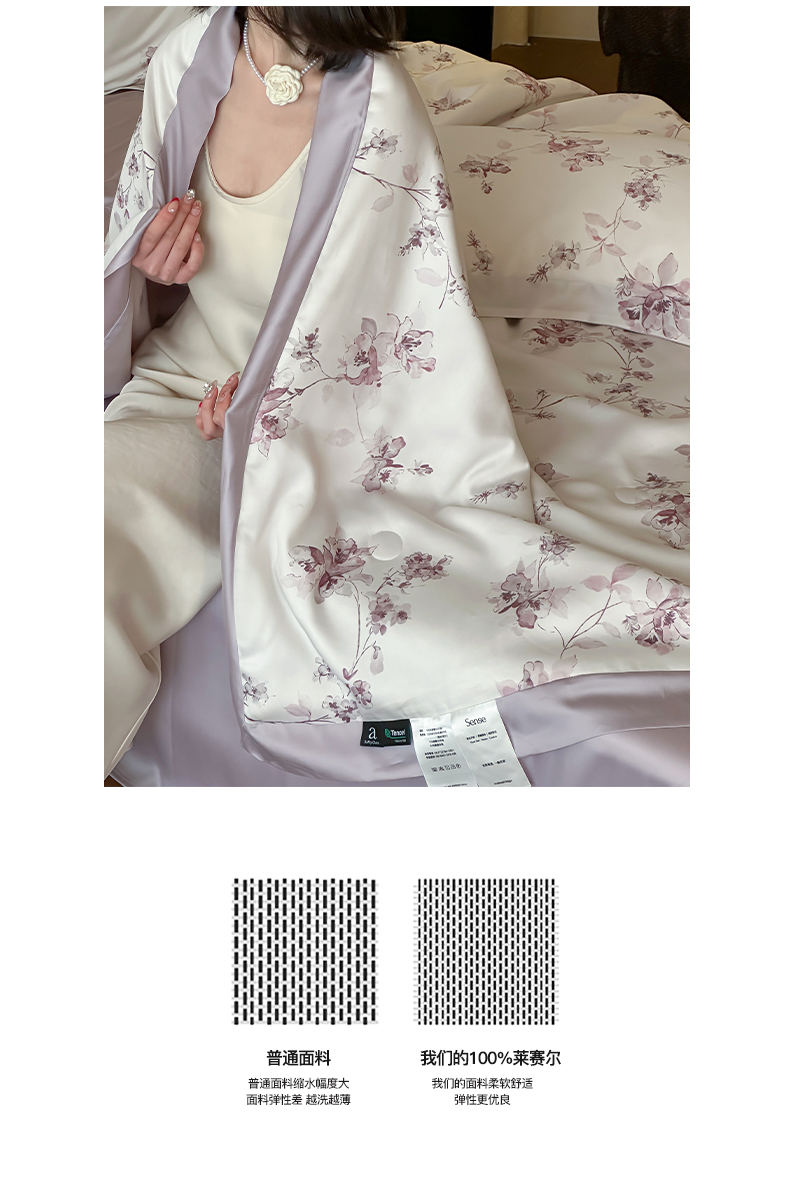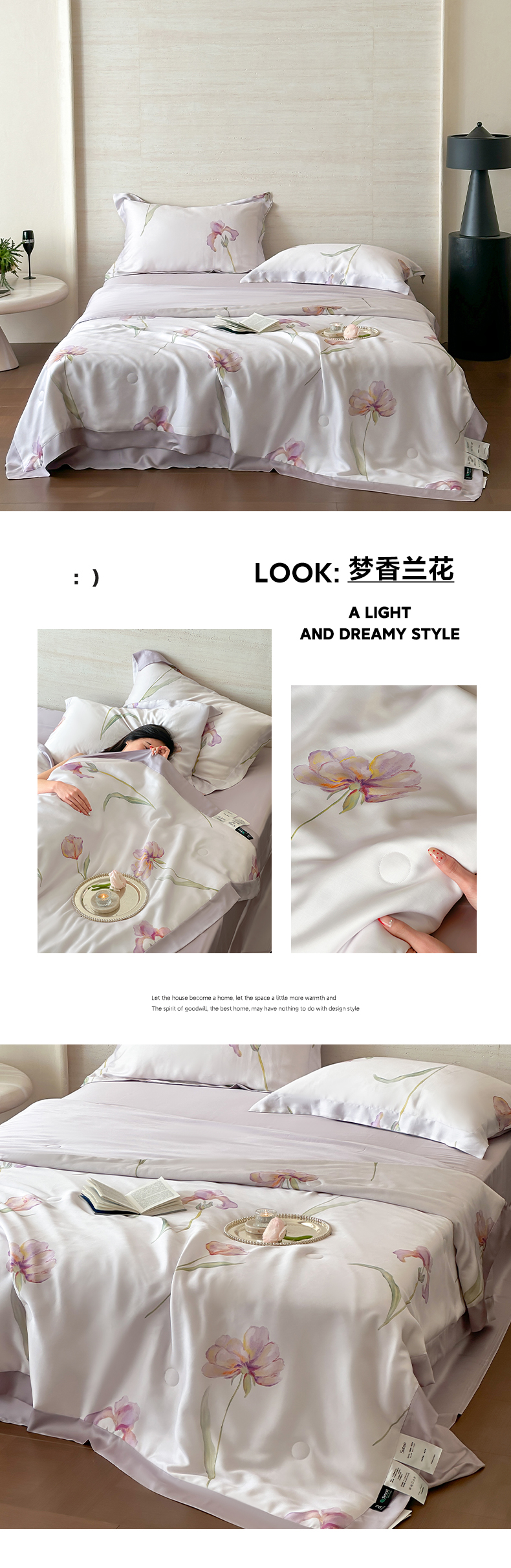 自然醒花卉60支天丝数码印花夏被四件套高级夏季可水洗莱赛尔凉感薄款空调被夏被子TD