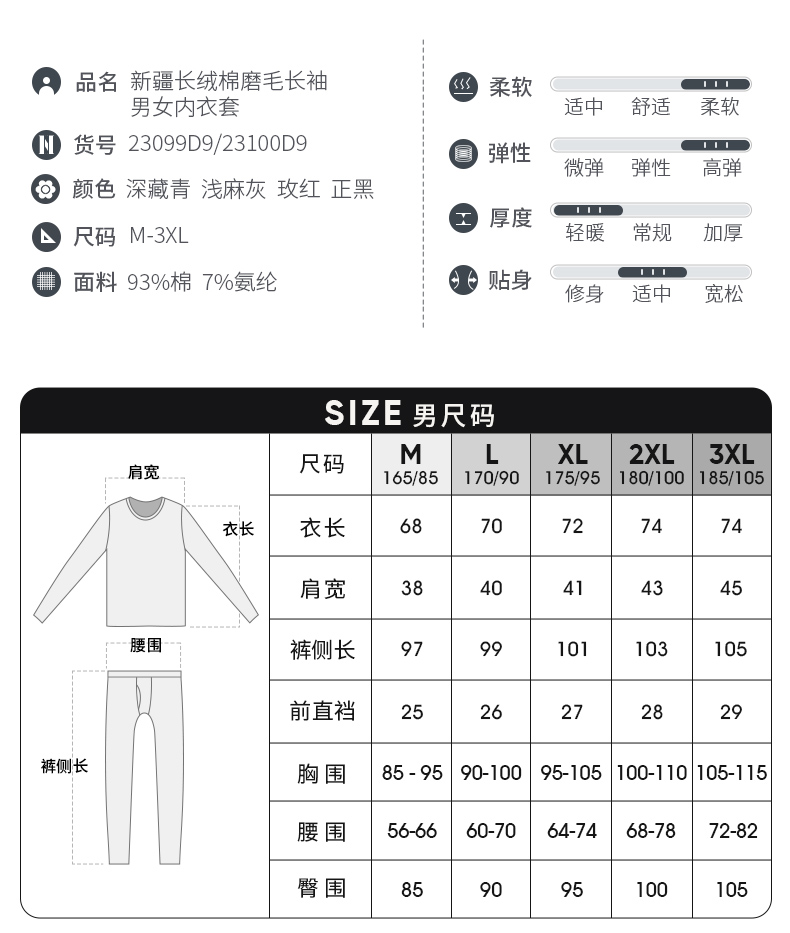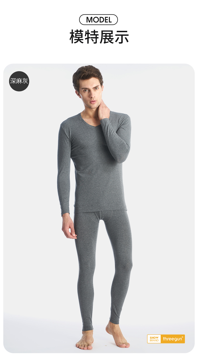 Threegun三枪 【新疆长绒棉】磨毛大圆领女士保暖内衣套装-23100D921