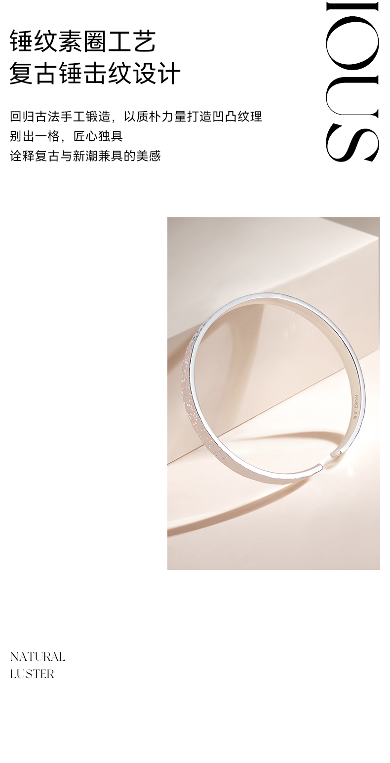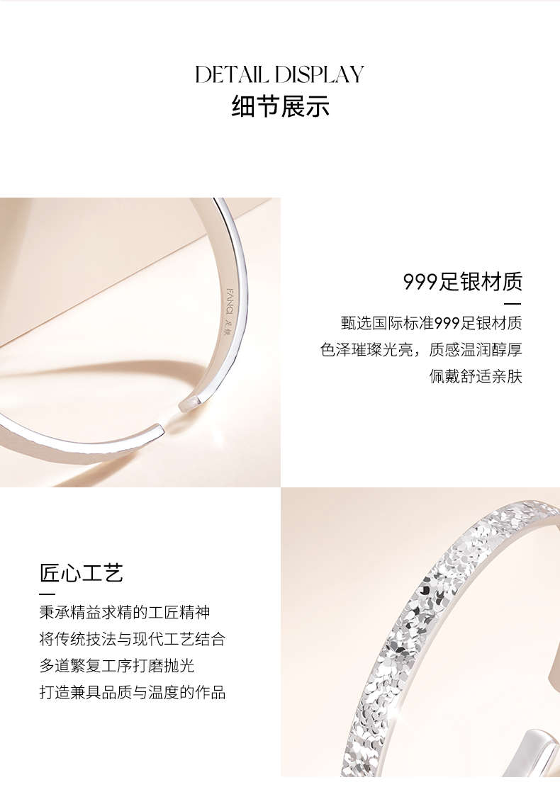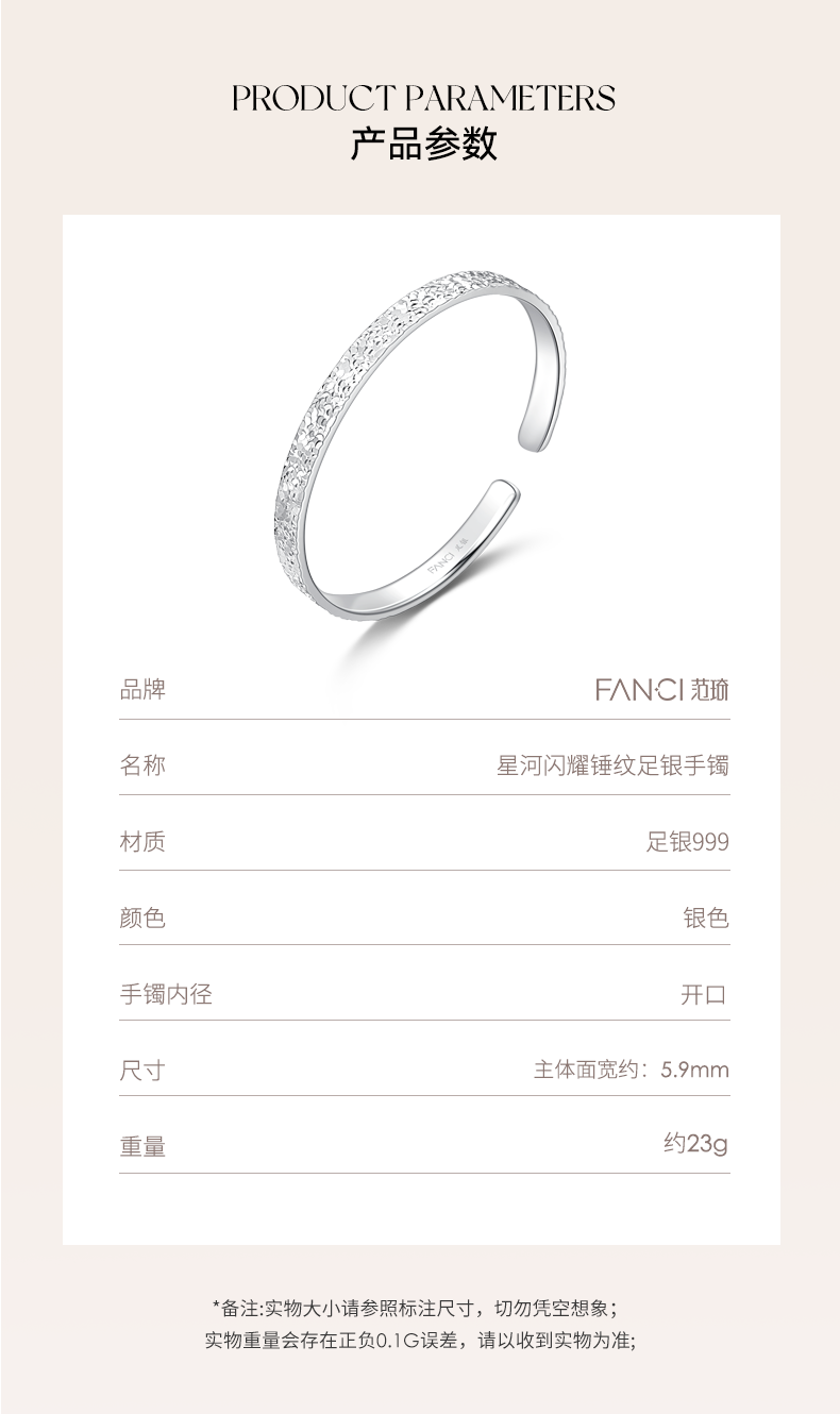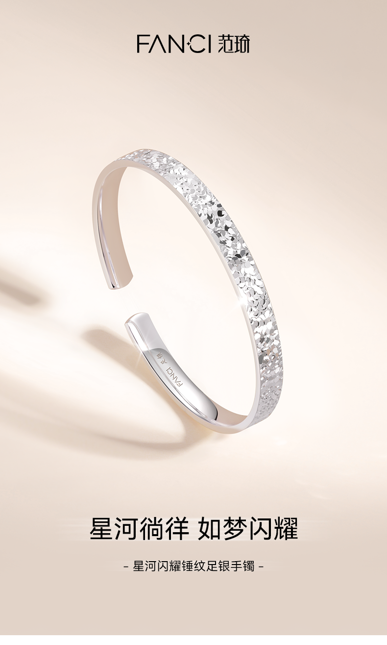 【星河闪耀锤纹足银手镯】Fanci范琦999足银碎冰冰开口手饰 礼物送妈妈 下单赠精美礼盒+顺丰速运+运费险