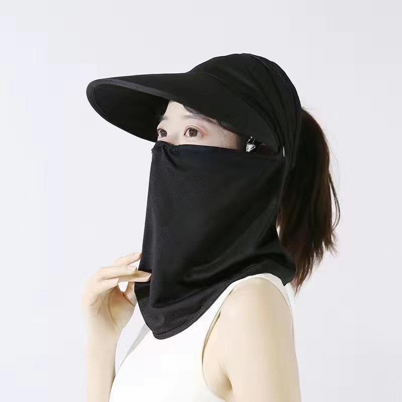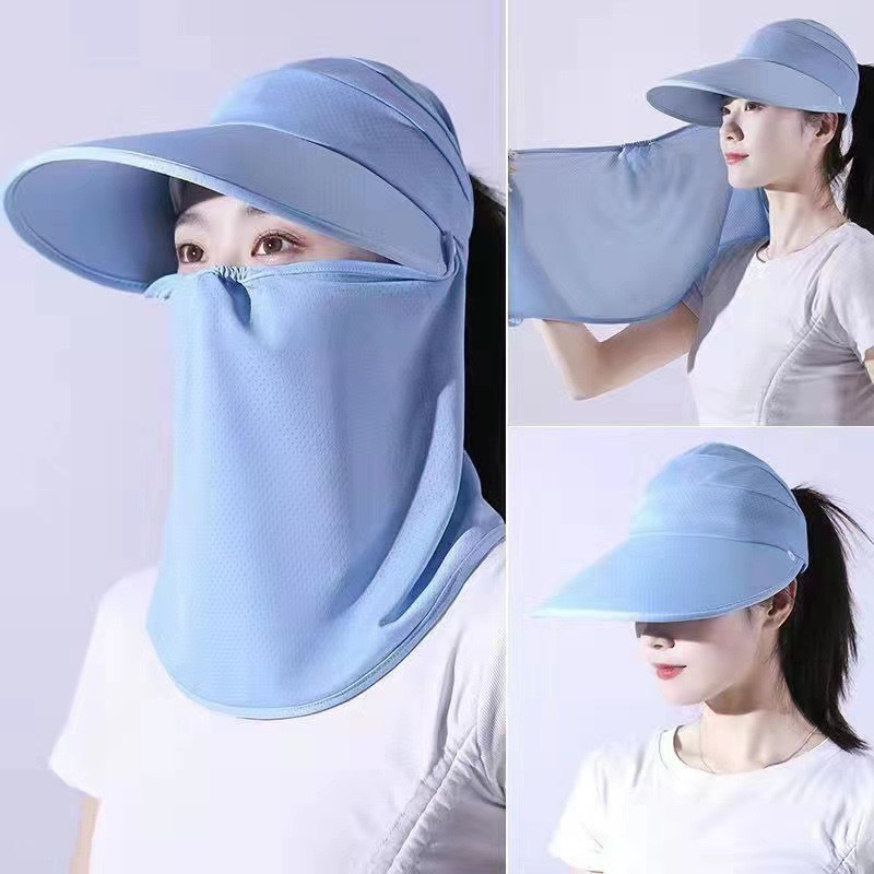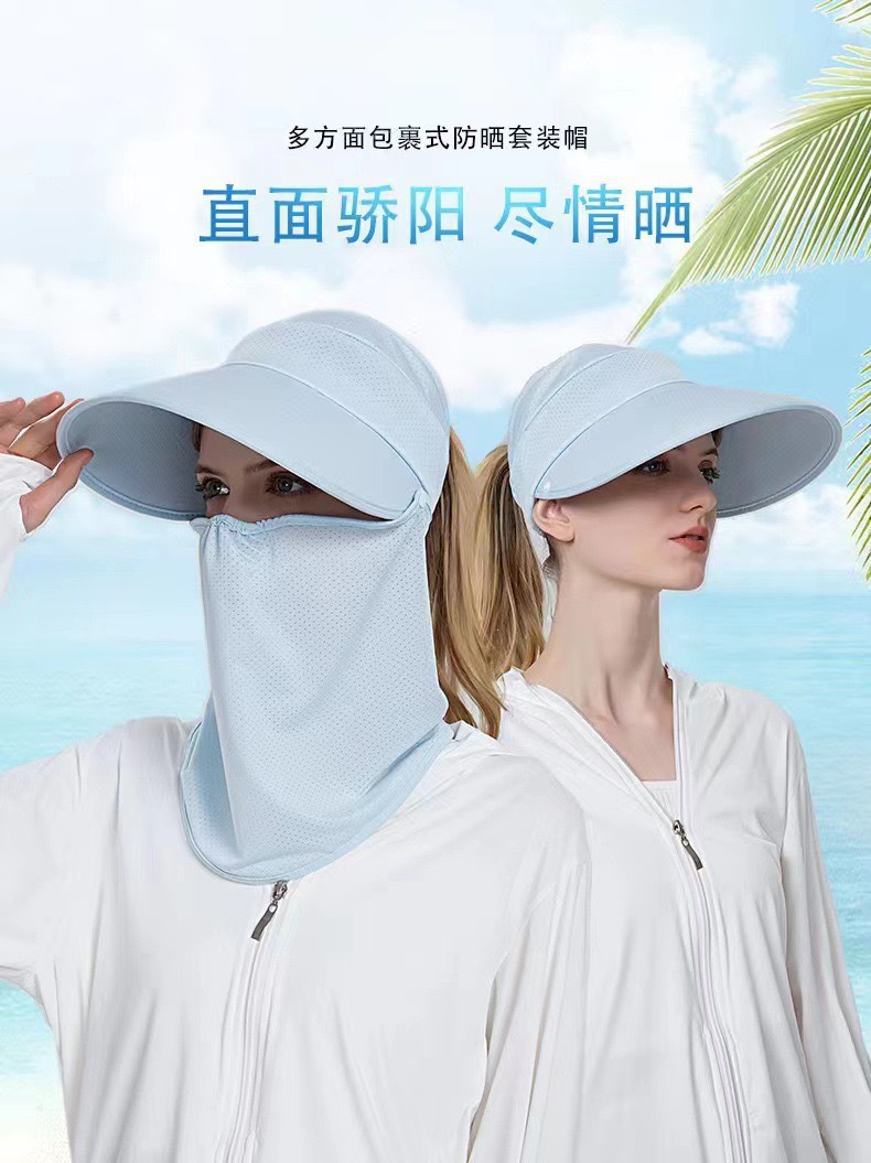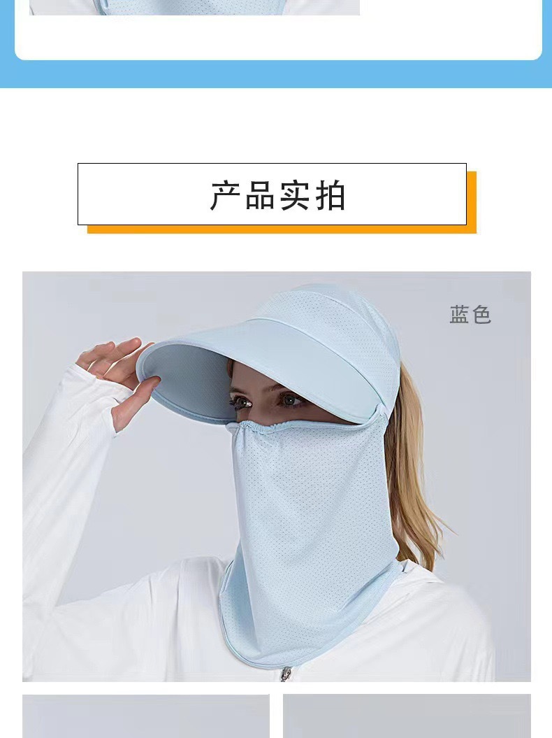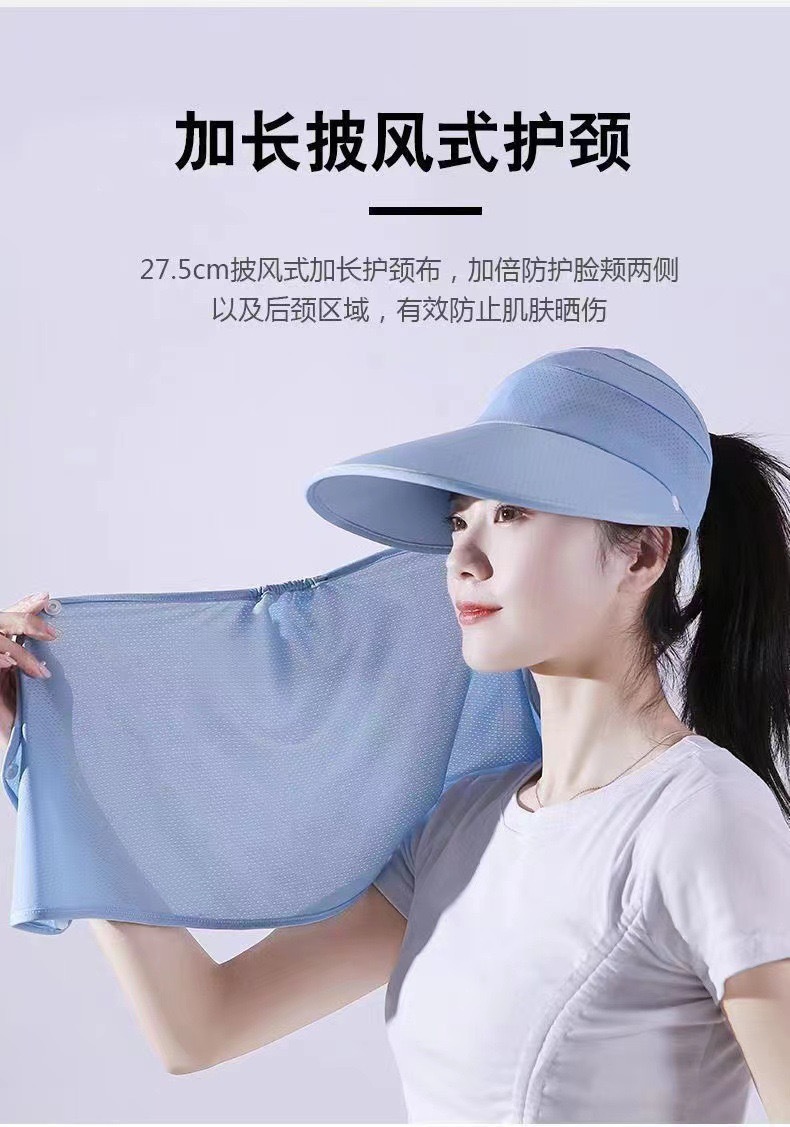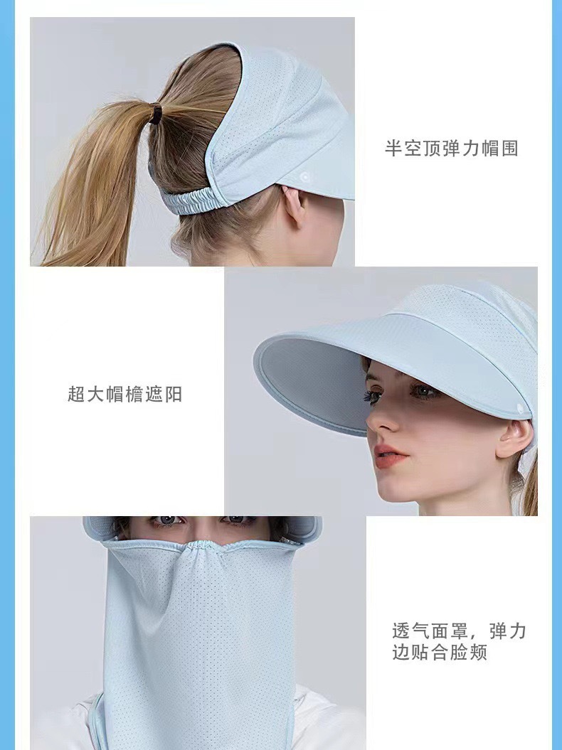 冰丝遮阳防晒帽女骑车遮脸空顶帽夏季防紫外线面纱太阳帽可扎马尾