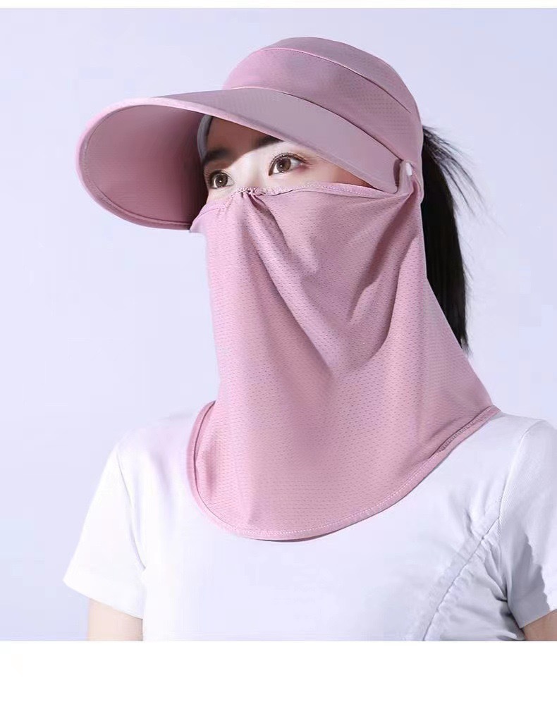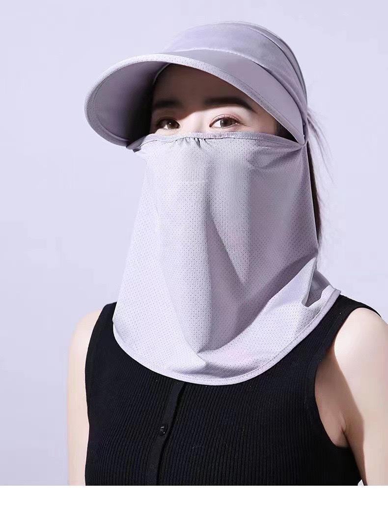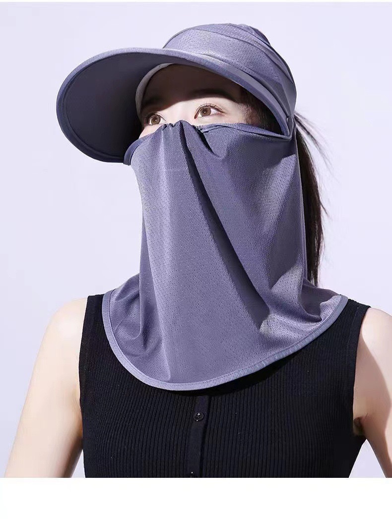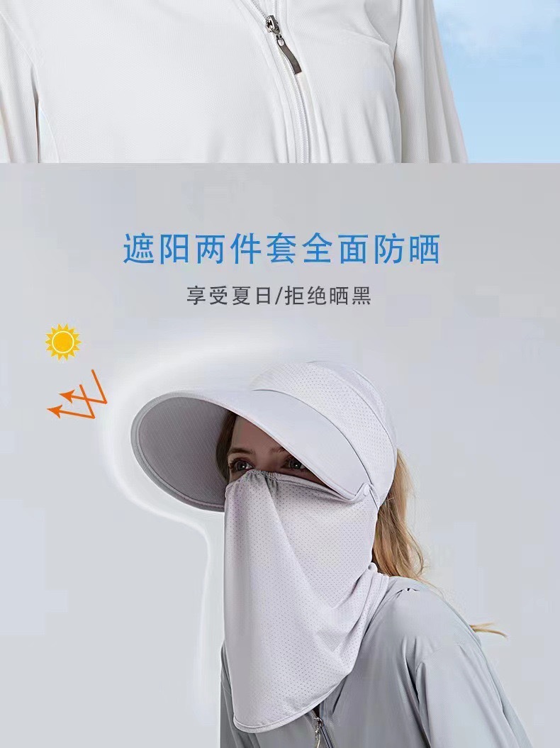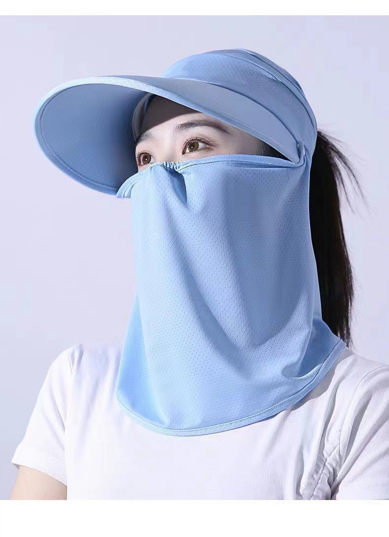 冰丝遮阳防晒帽女骑车遮脸空顶帽夏季防紫外线面纱太阳帽可扎马尾
