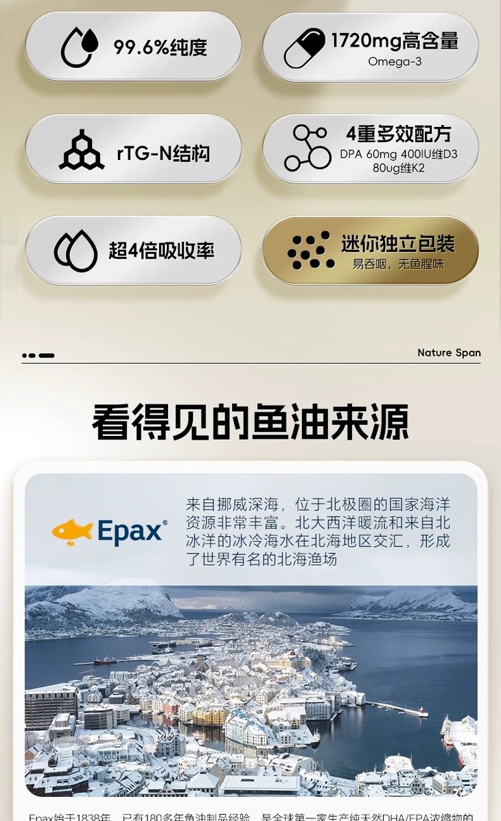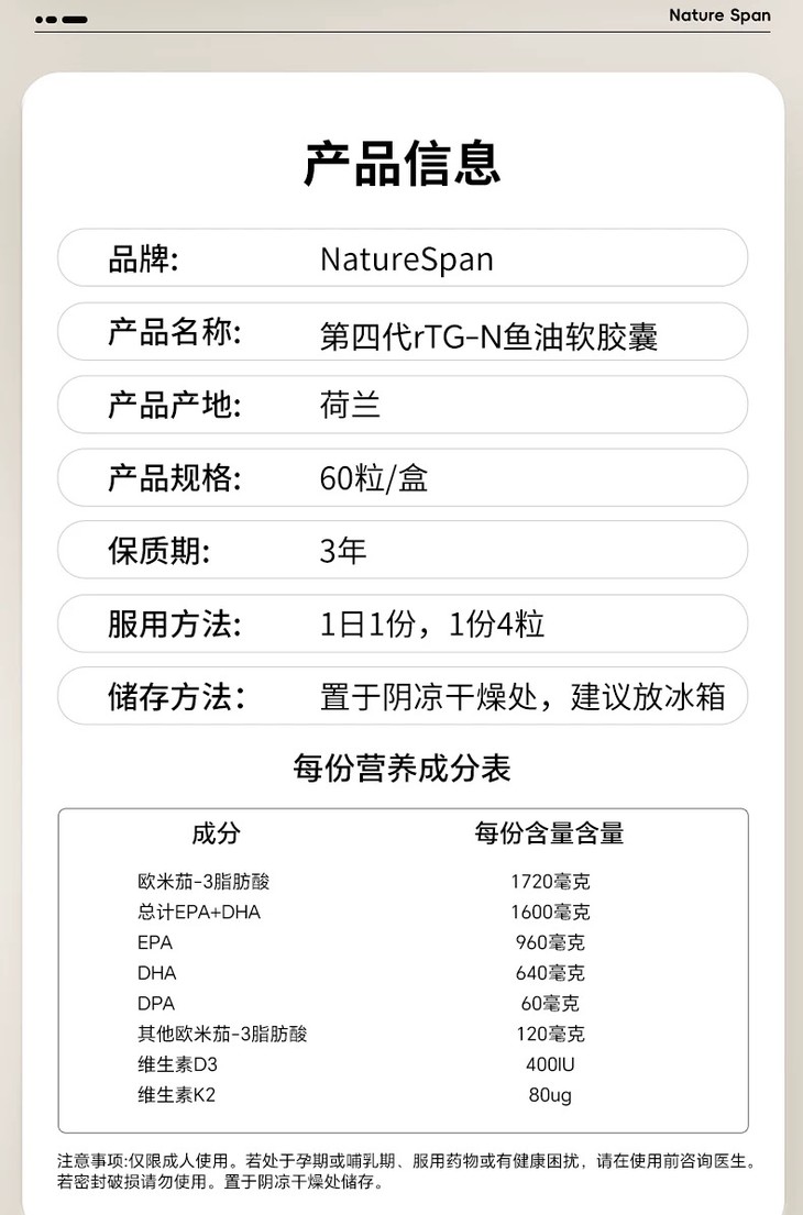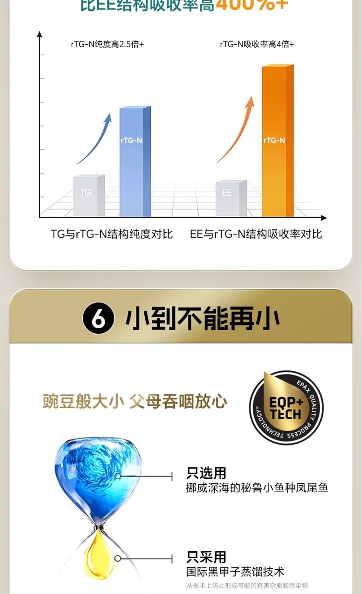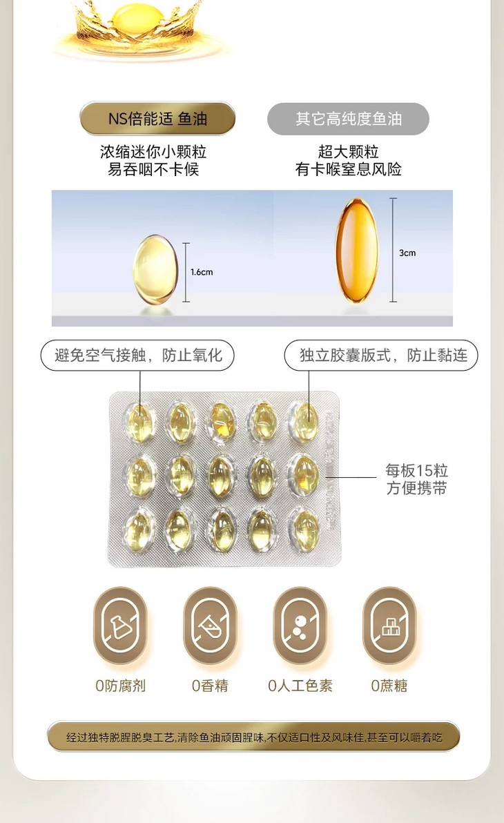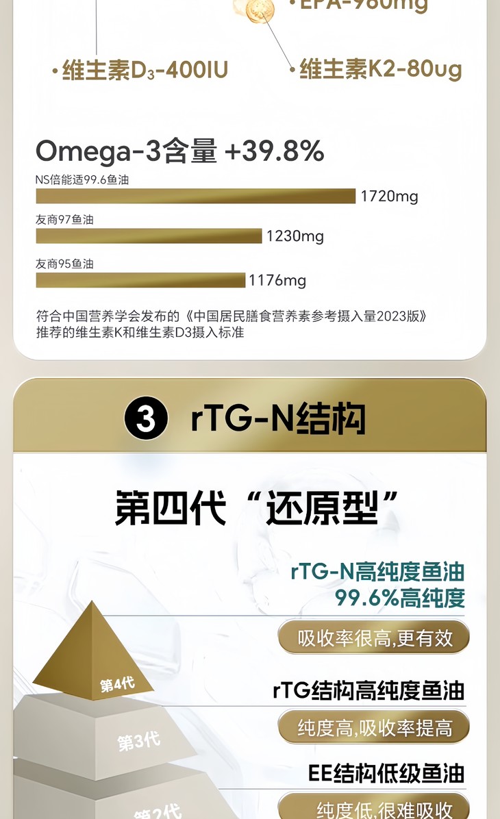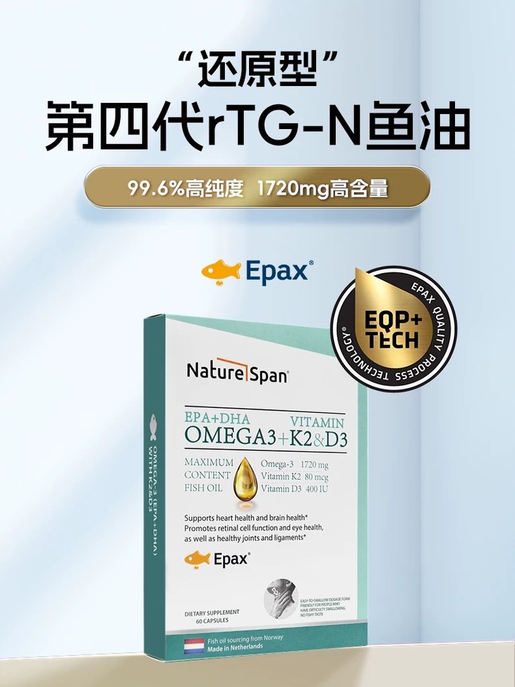 rTG-N结构高纯度鱼油小颗粒易吞咽 60粒EPA+DHA+DPA+K2+D3五大成分