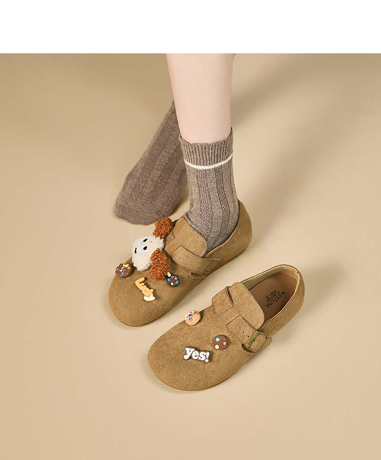西遇丑萌勃肯鞋女新款秋季可爱小狗一脚蹬懒人平底鞋软底单鞋K1857094