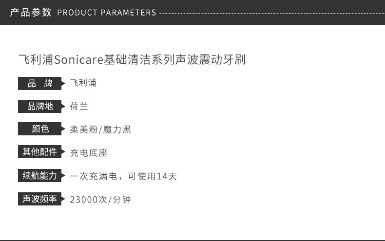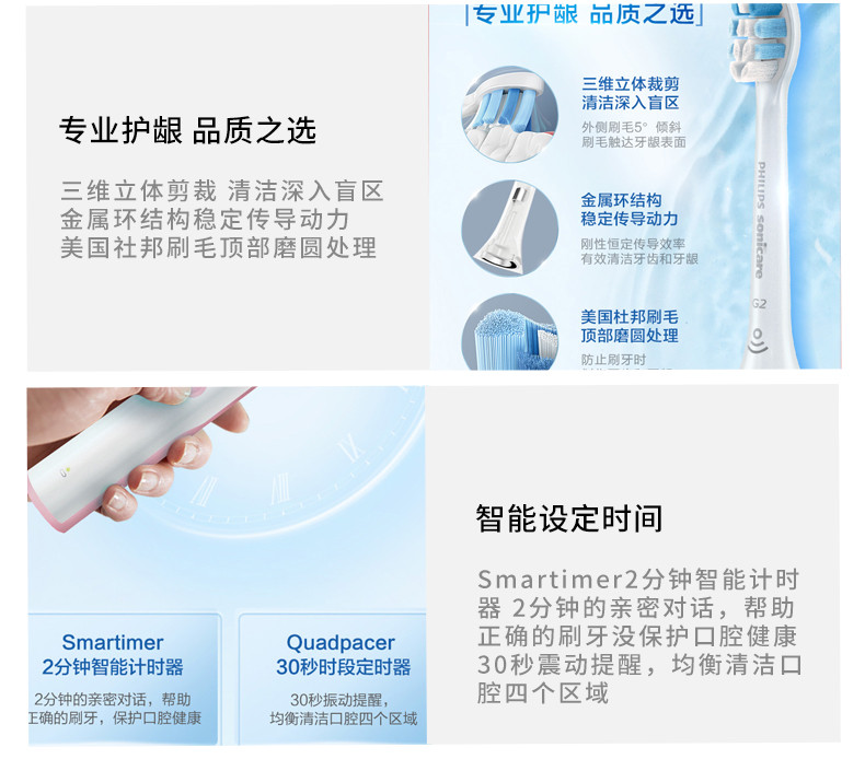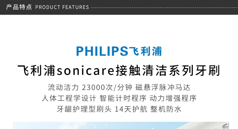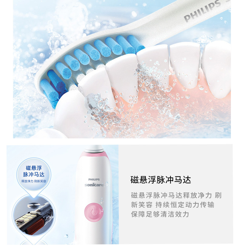 PHILIPS飞利浦 成人声波震动牙刷(自带刷头2个)