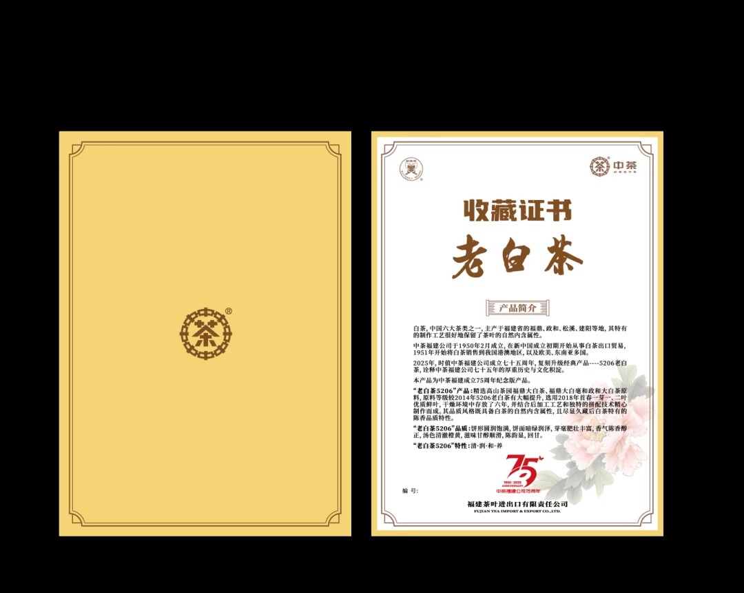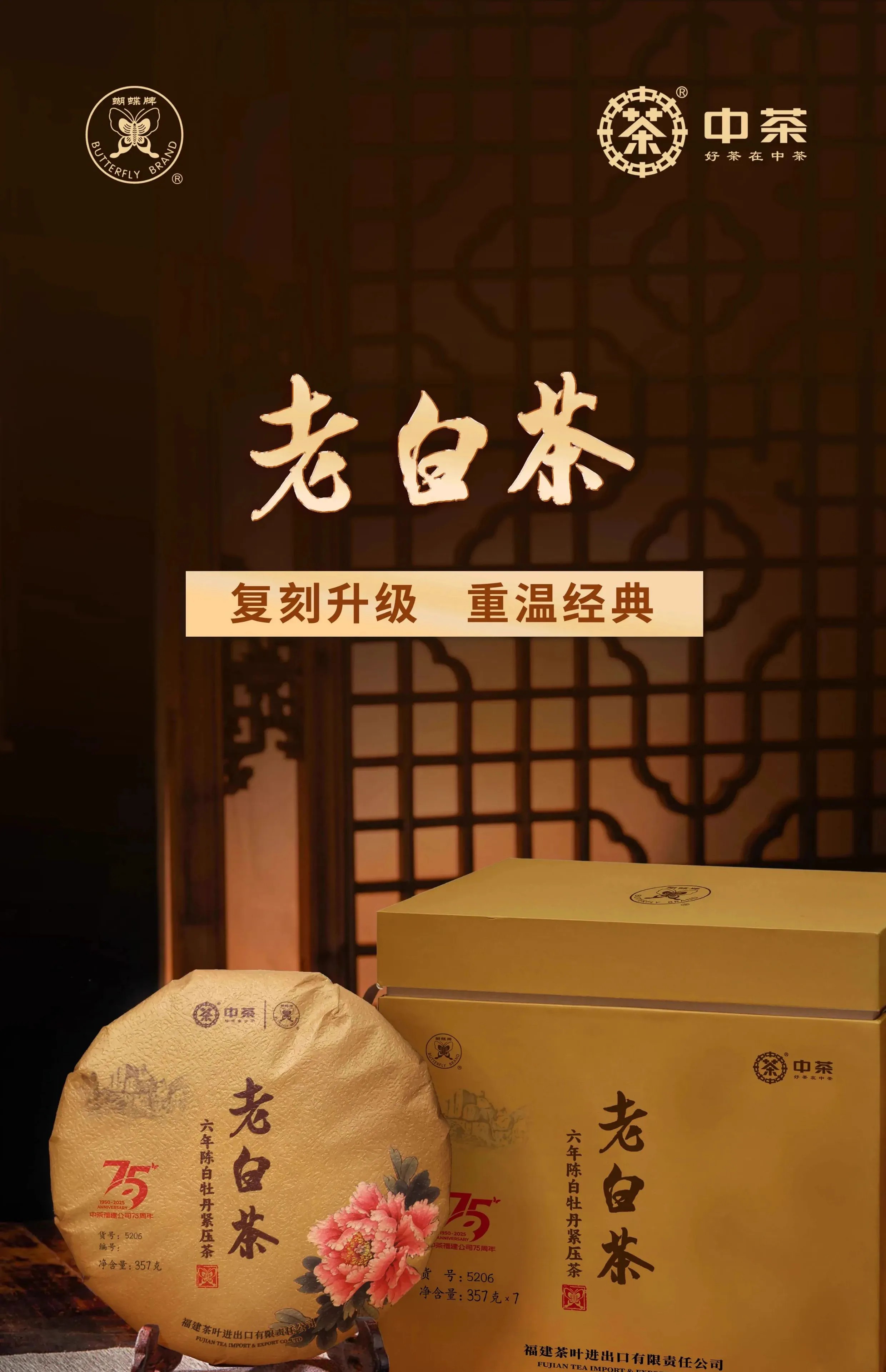 中粮-中茶2025中茶福建公司75周年纪念版老白茶六年陈白牡丹5206/干仓直发