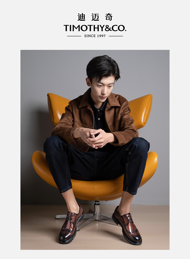 TIMOTHY&CO./迪迈奇男士布洛克德比正装鞋商务休闲轻便防滑