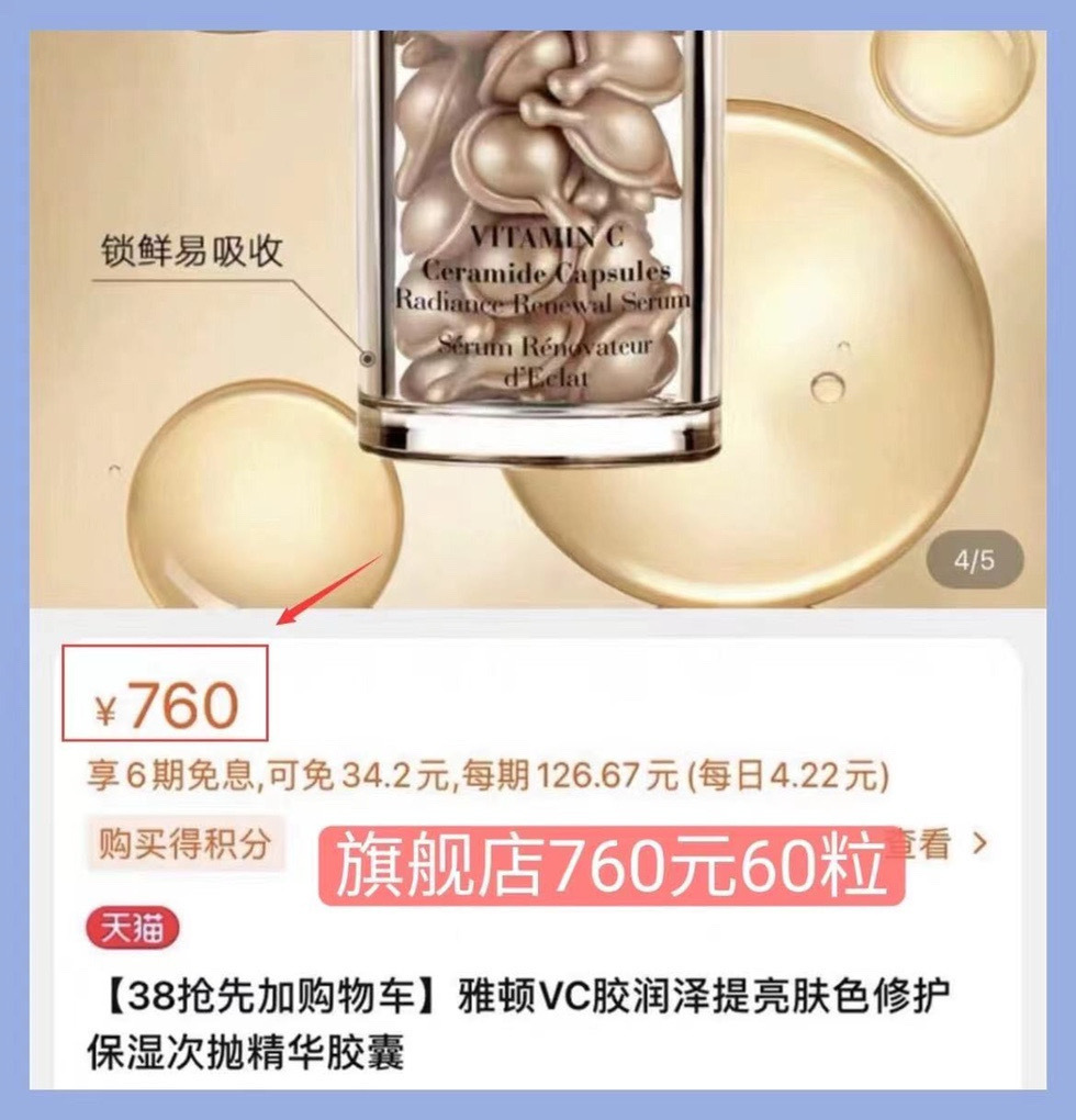 【商品名称】雅顿VC小鲜胶(铜胶) 约60粒