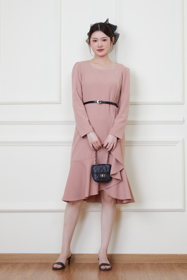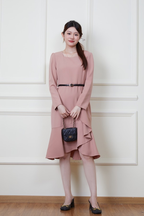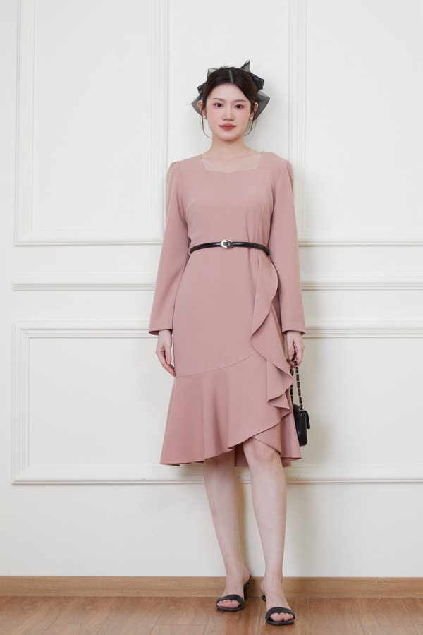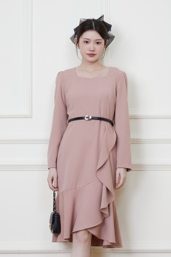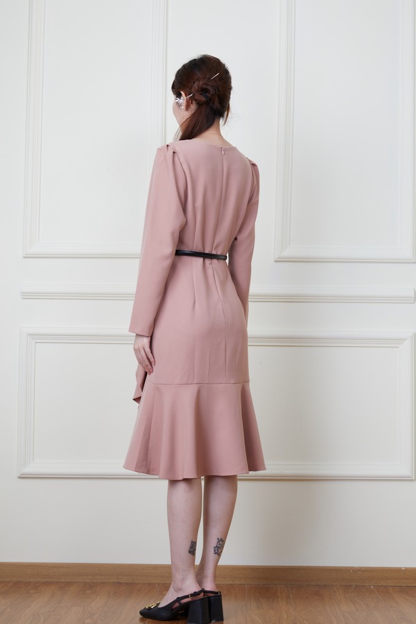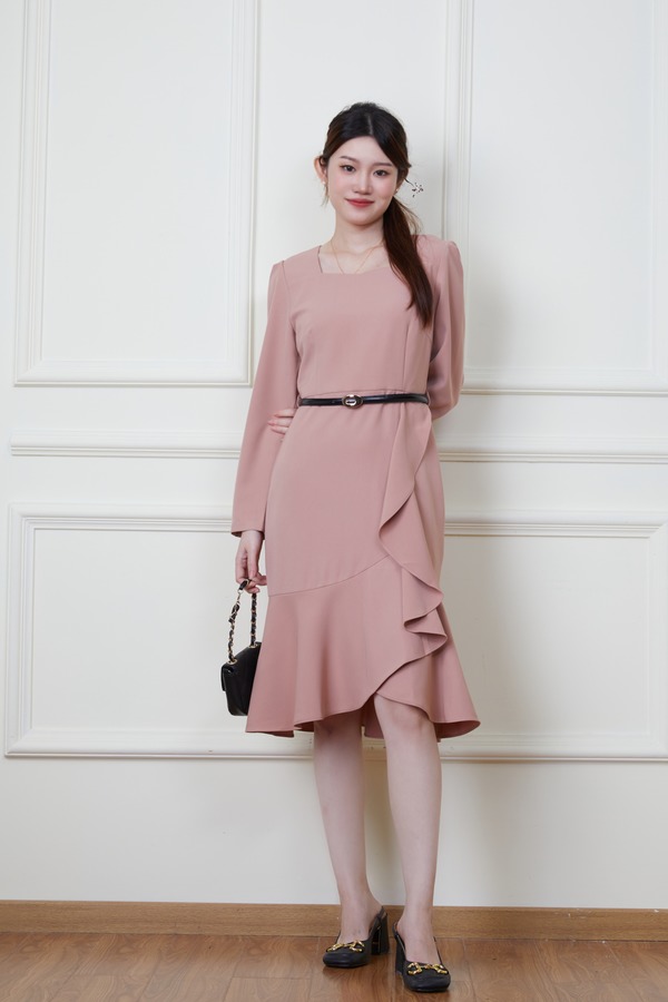 Le Malene 粉色收腰荷叶边连衣裙 19923