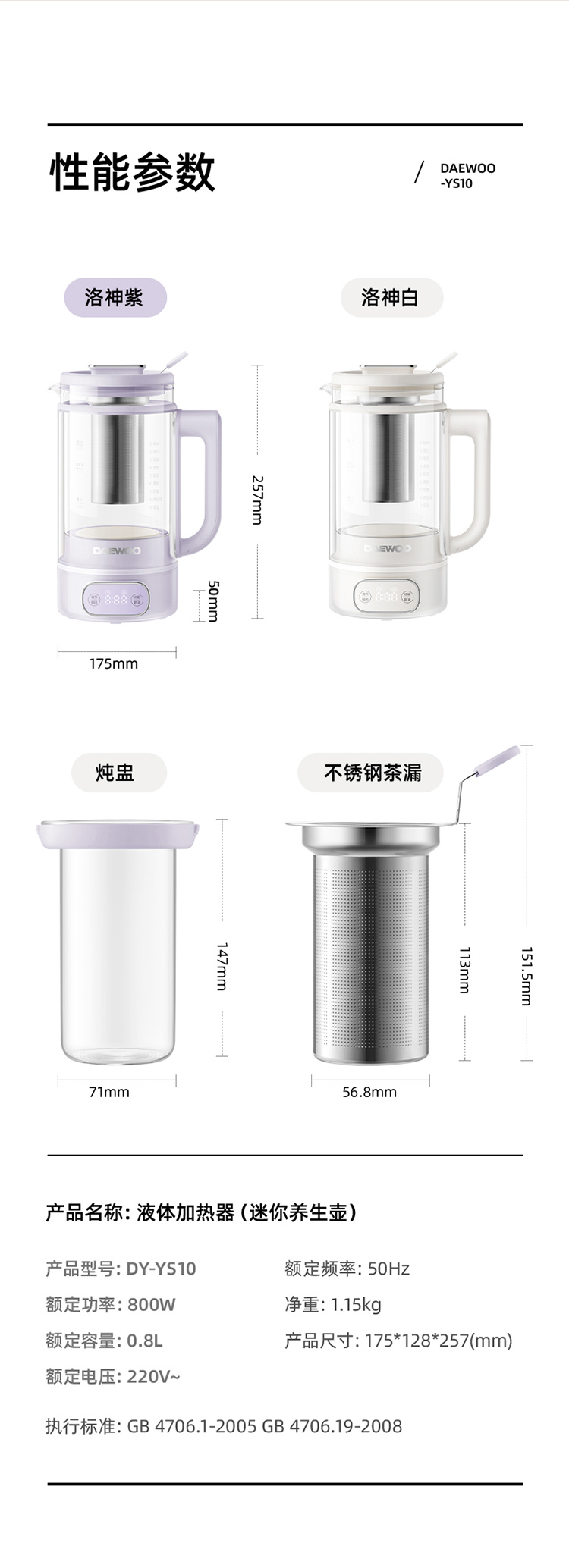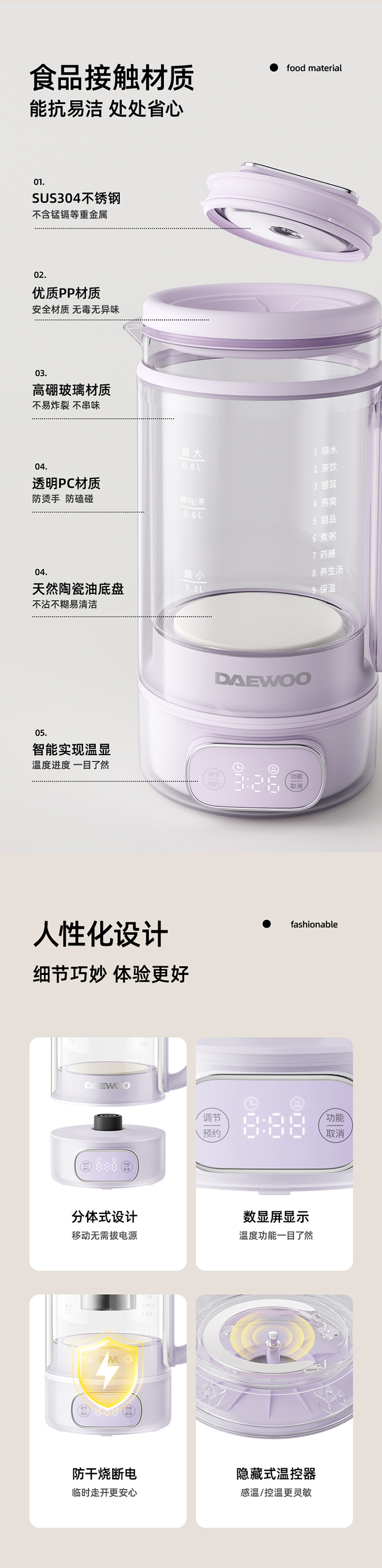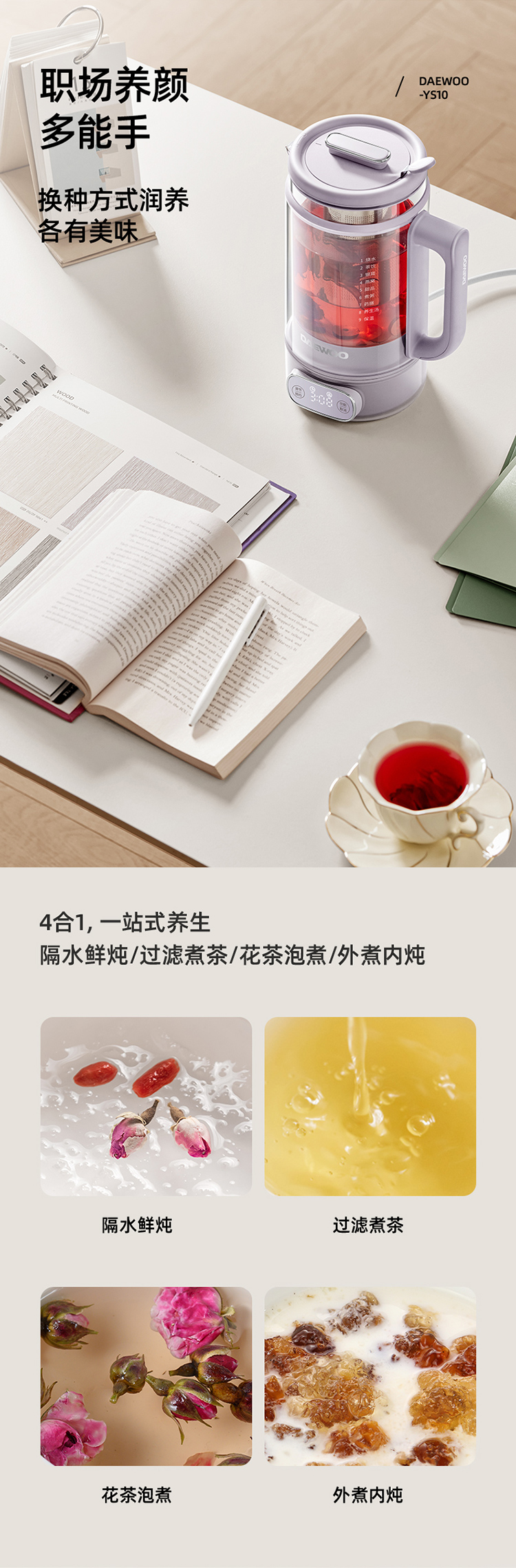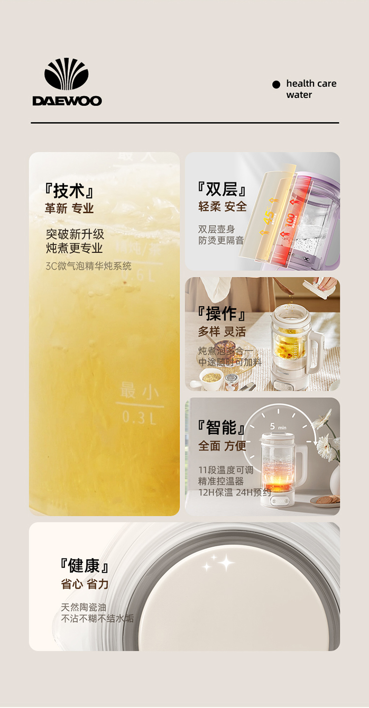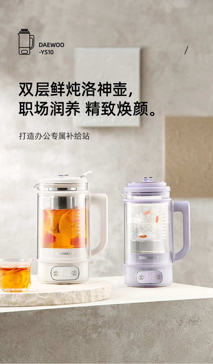 【韩国大宇洛神养生壶】家用多功能全自动办公室小型双层玻璃炖煮茶花茶壶