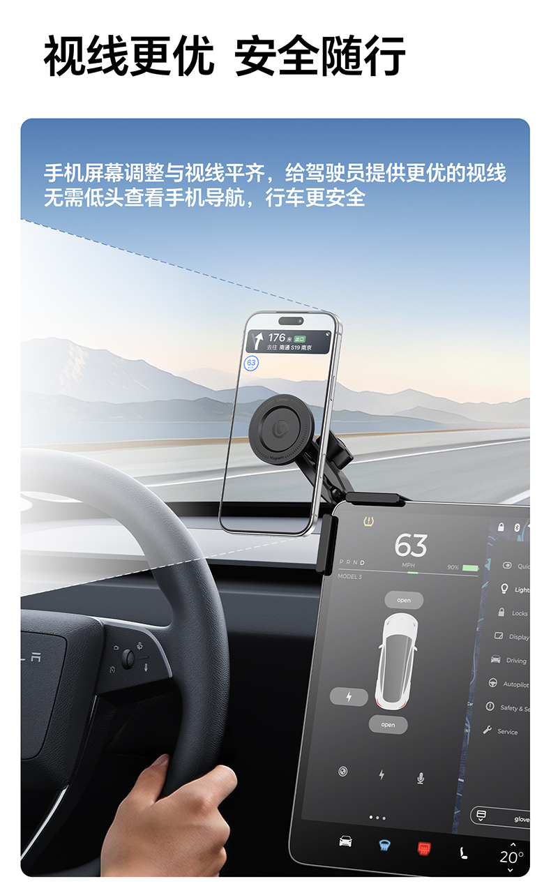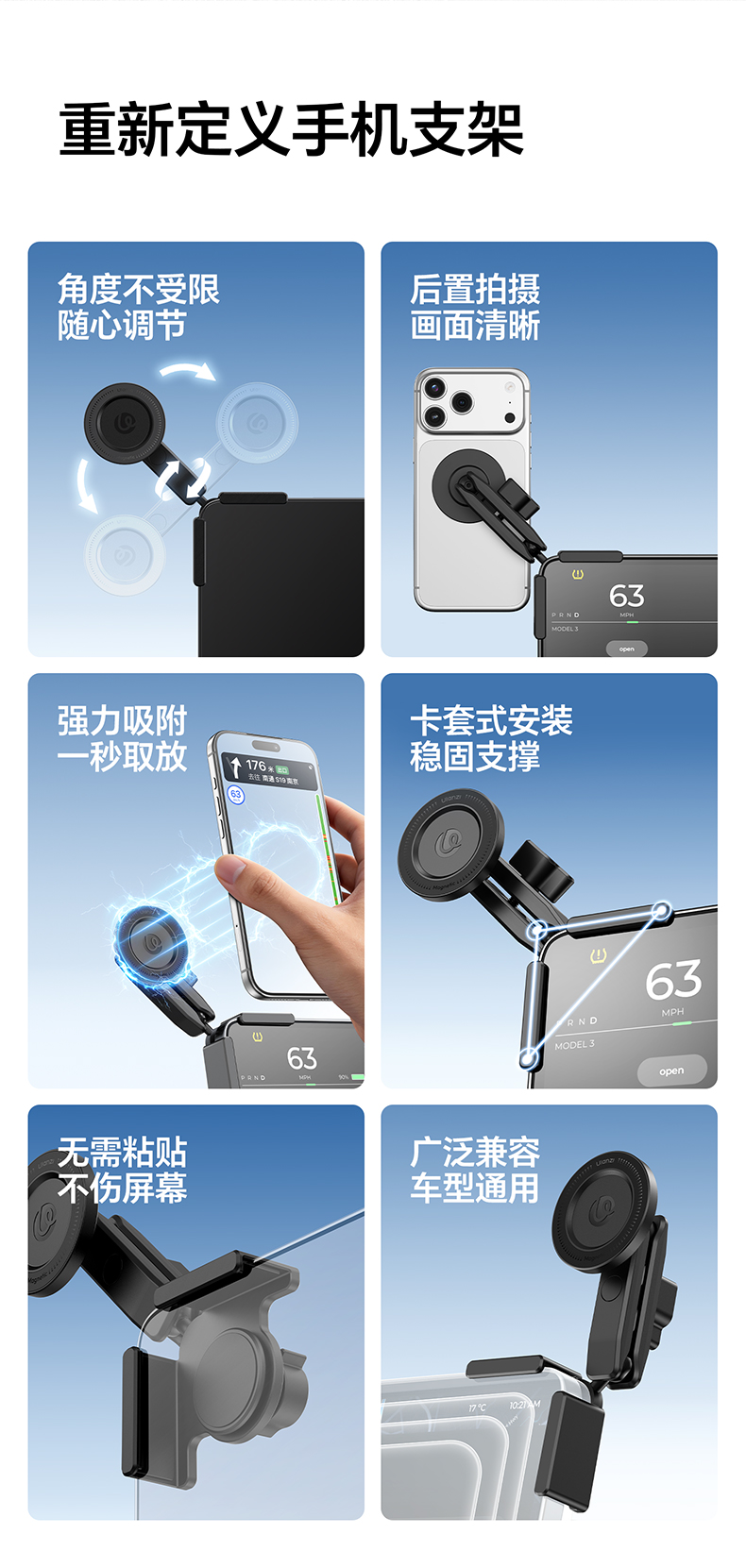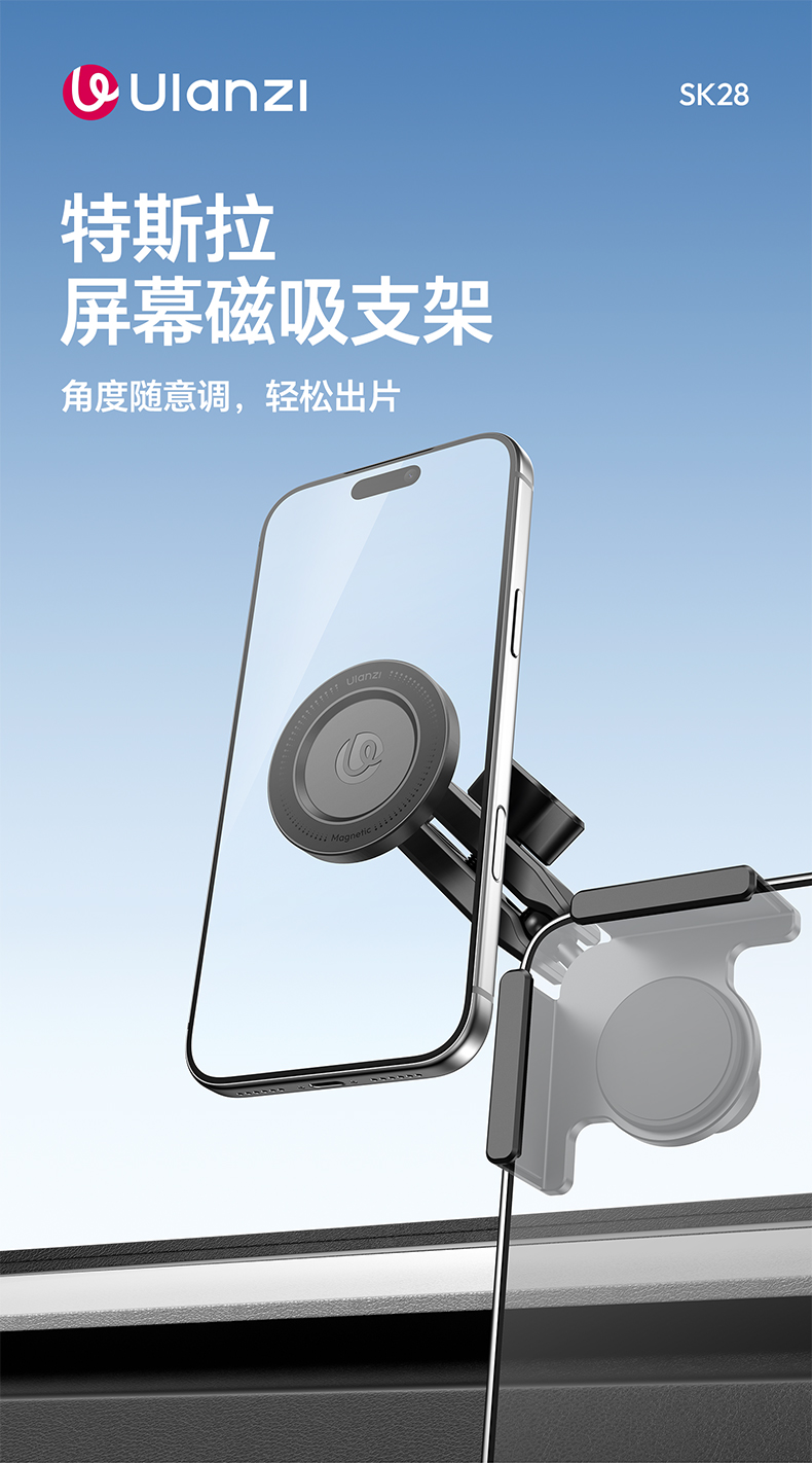 Ulanzi优篮子SK28特斯拉屏幕磁吸手机支架modely/3屏幕导航拍摄(适配ModelY/3全系及换新版适配市面90%其他新能源车型)