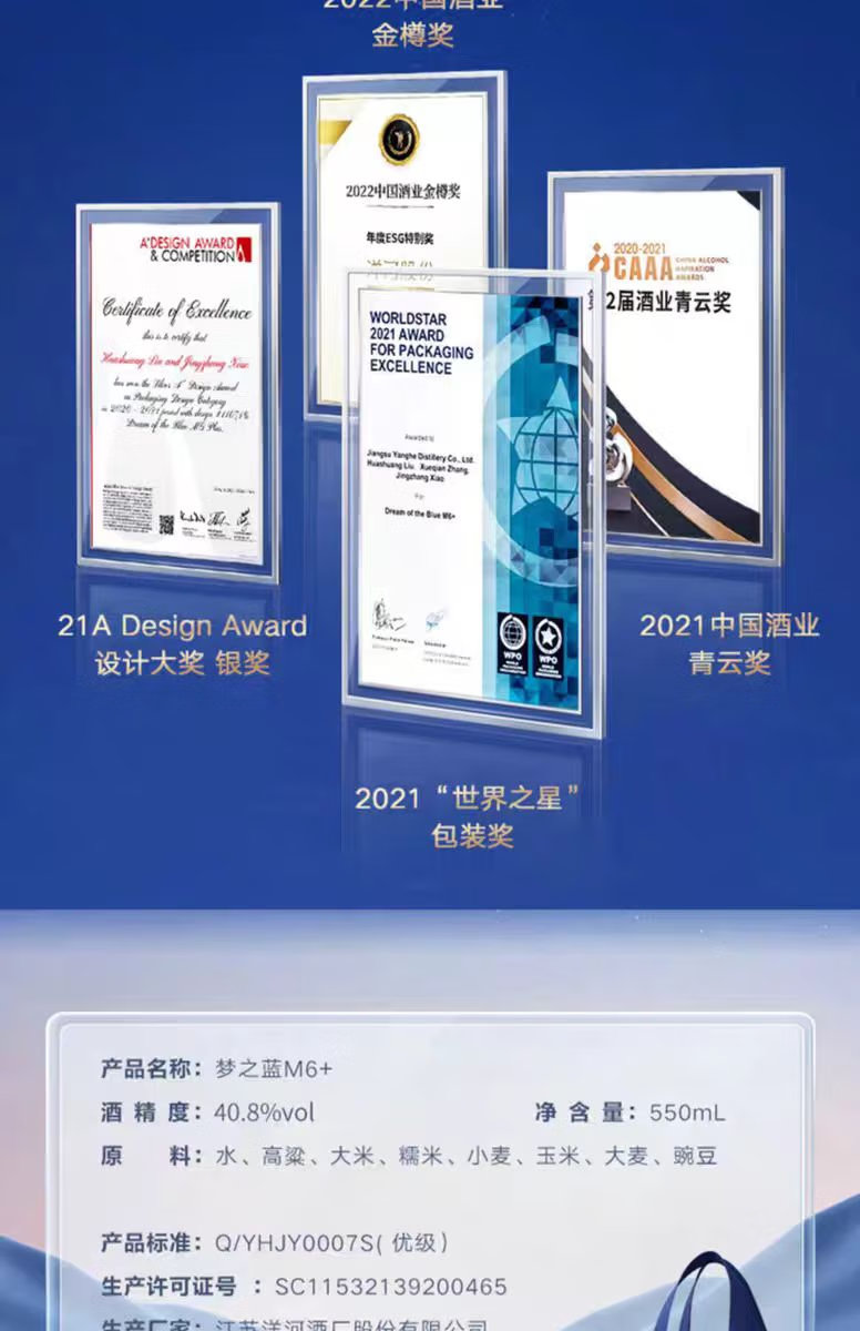 洋河 梦之蓝M6+ 40.8度 550ml 单瓶装(整箱为4瓶)
