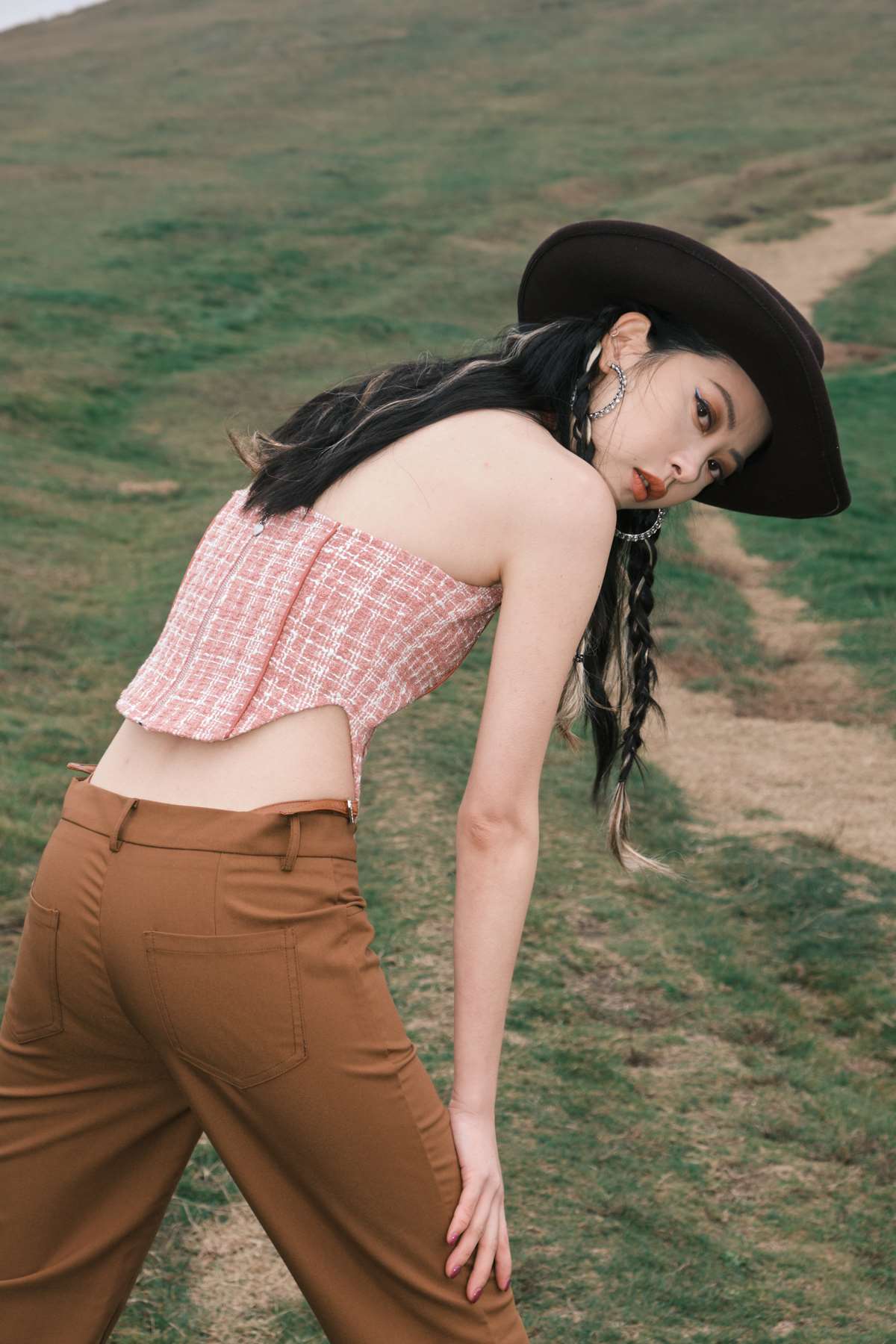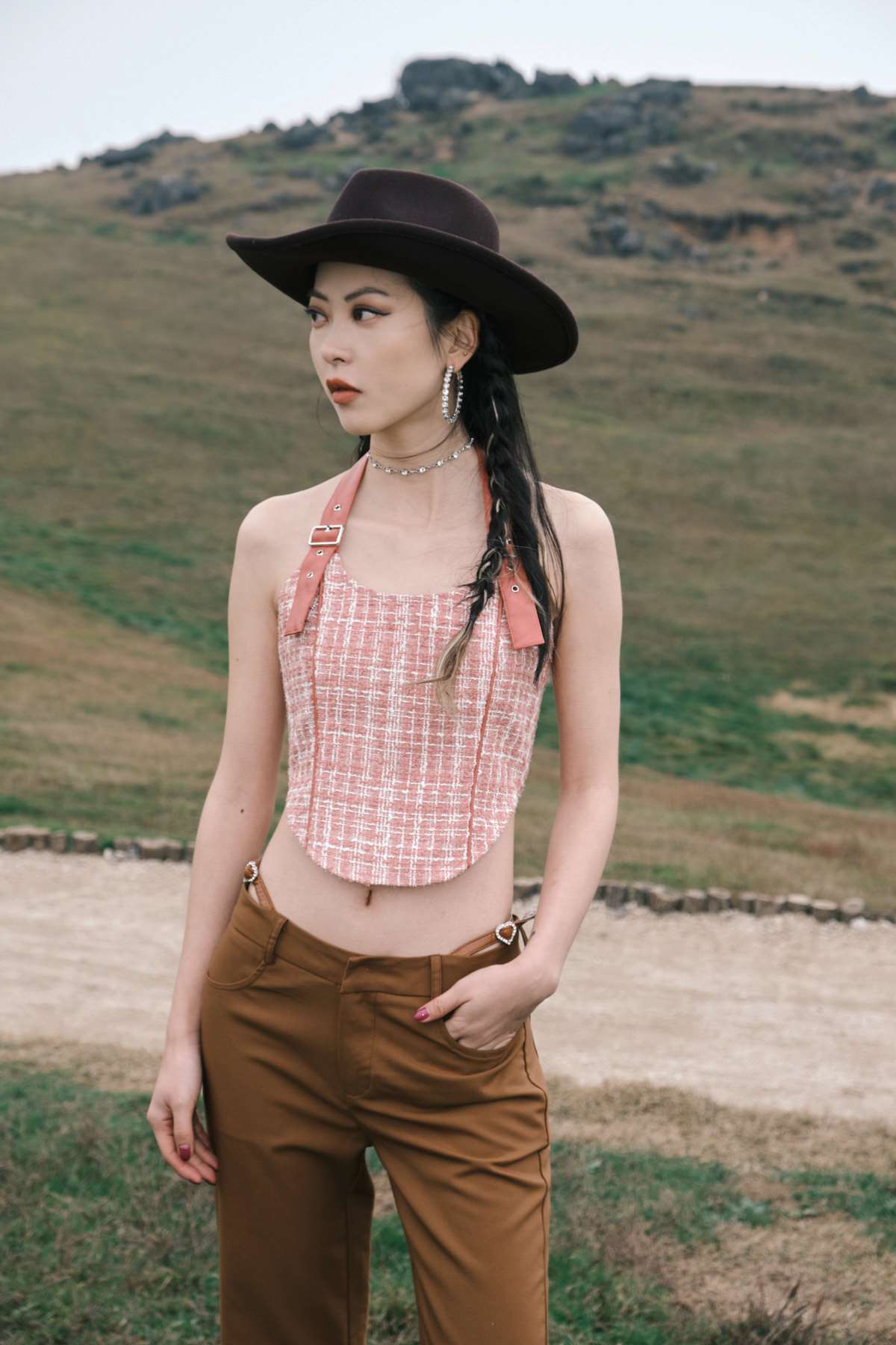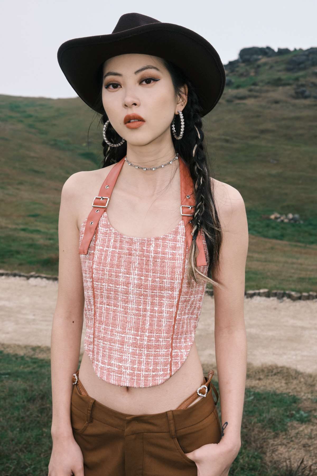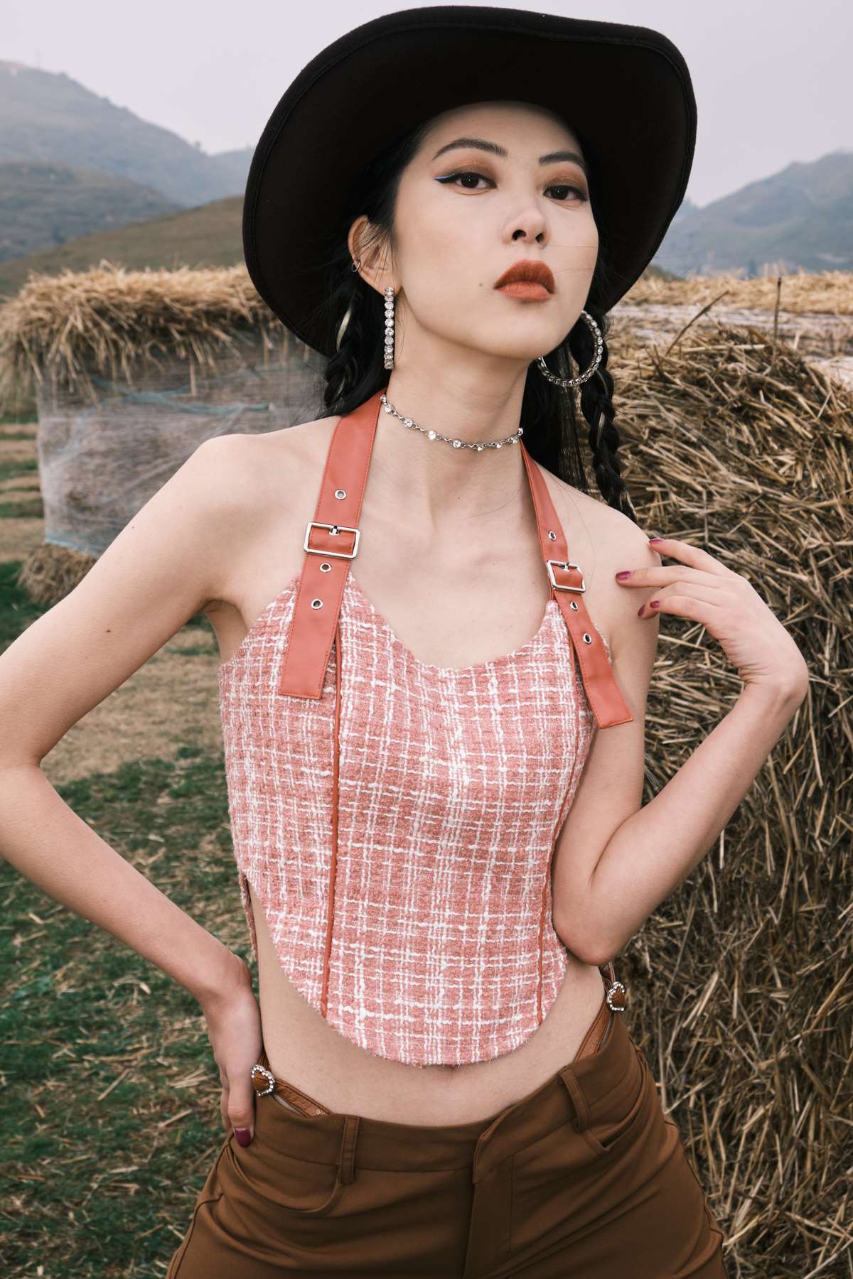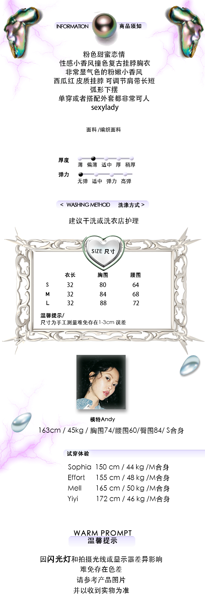 EhK 粉色甜蜜恋情小香风复古挂脖胸衣