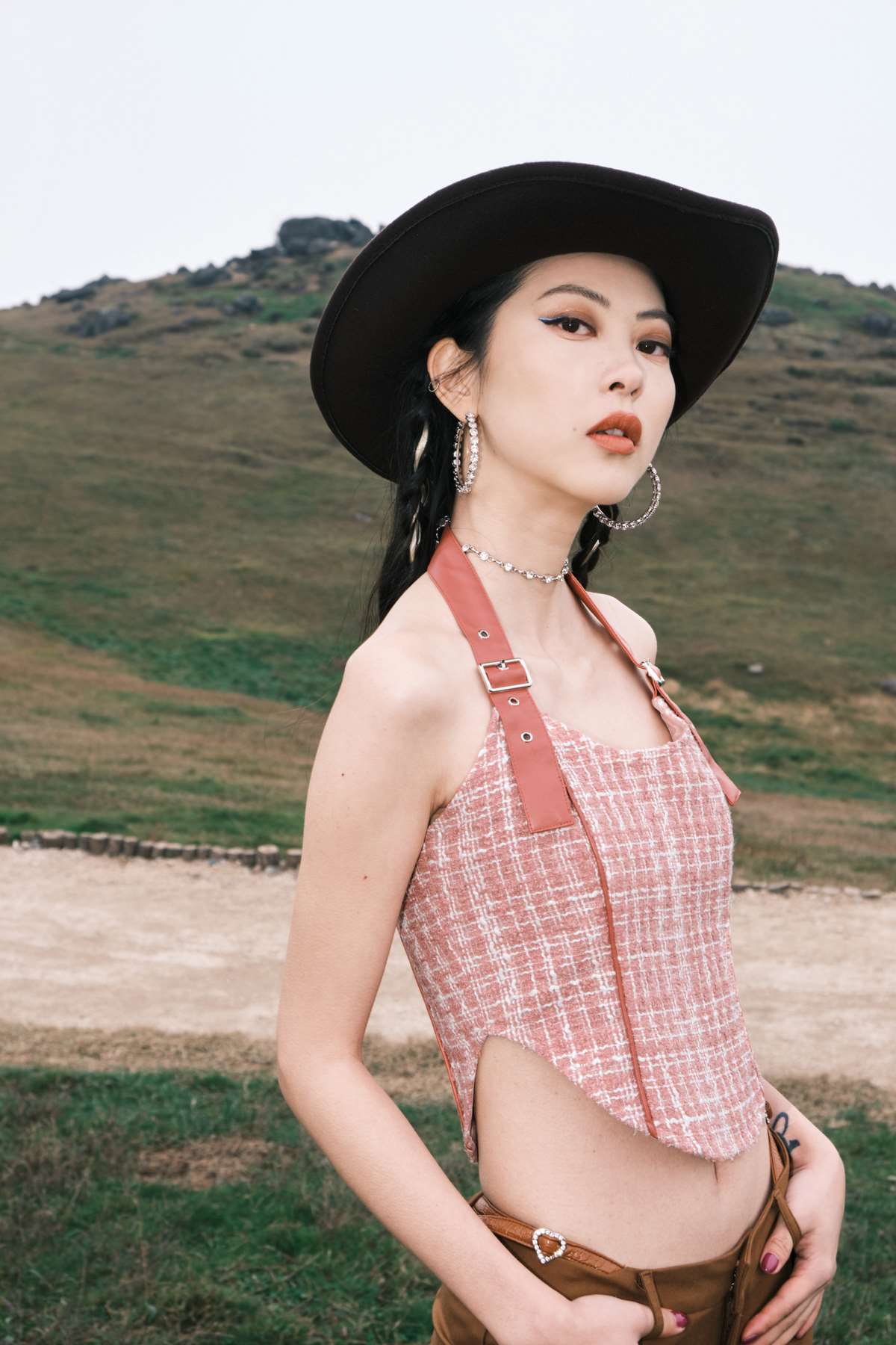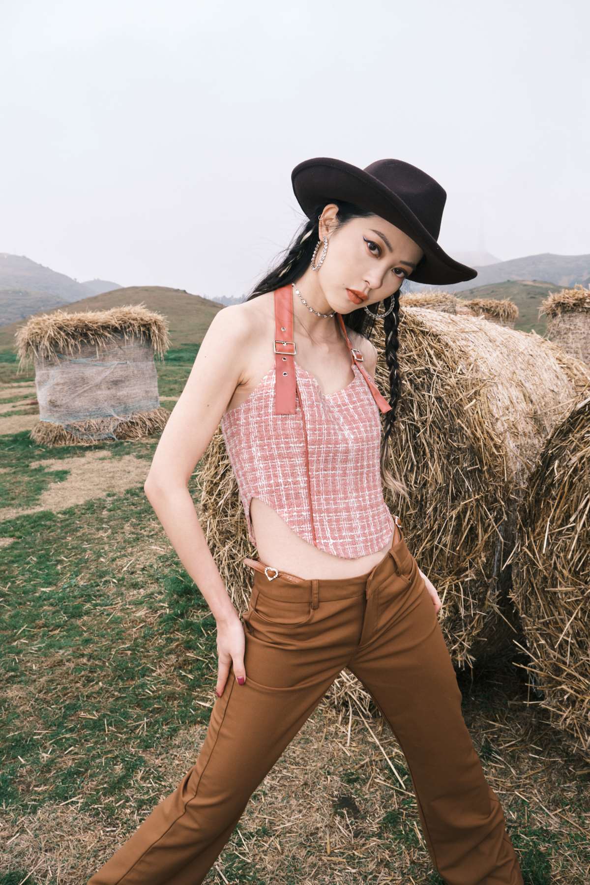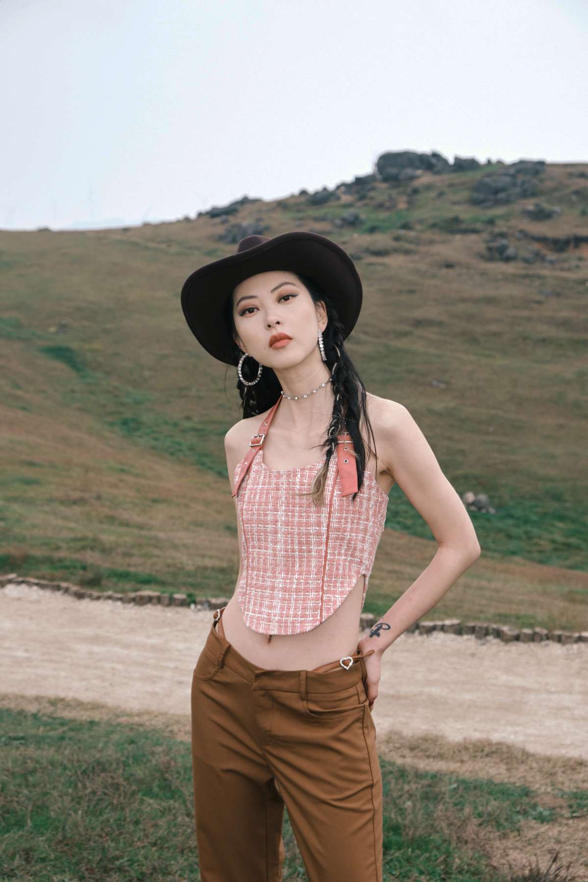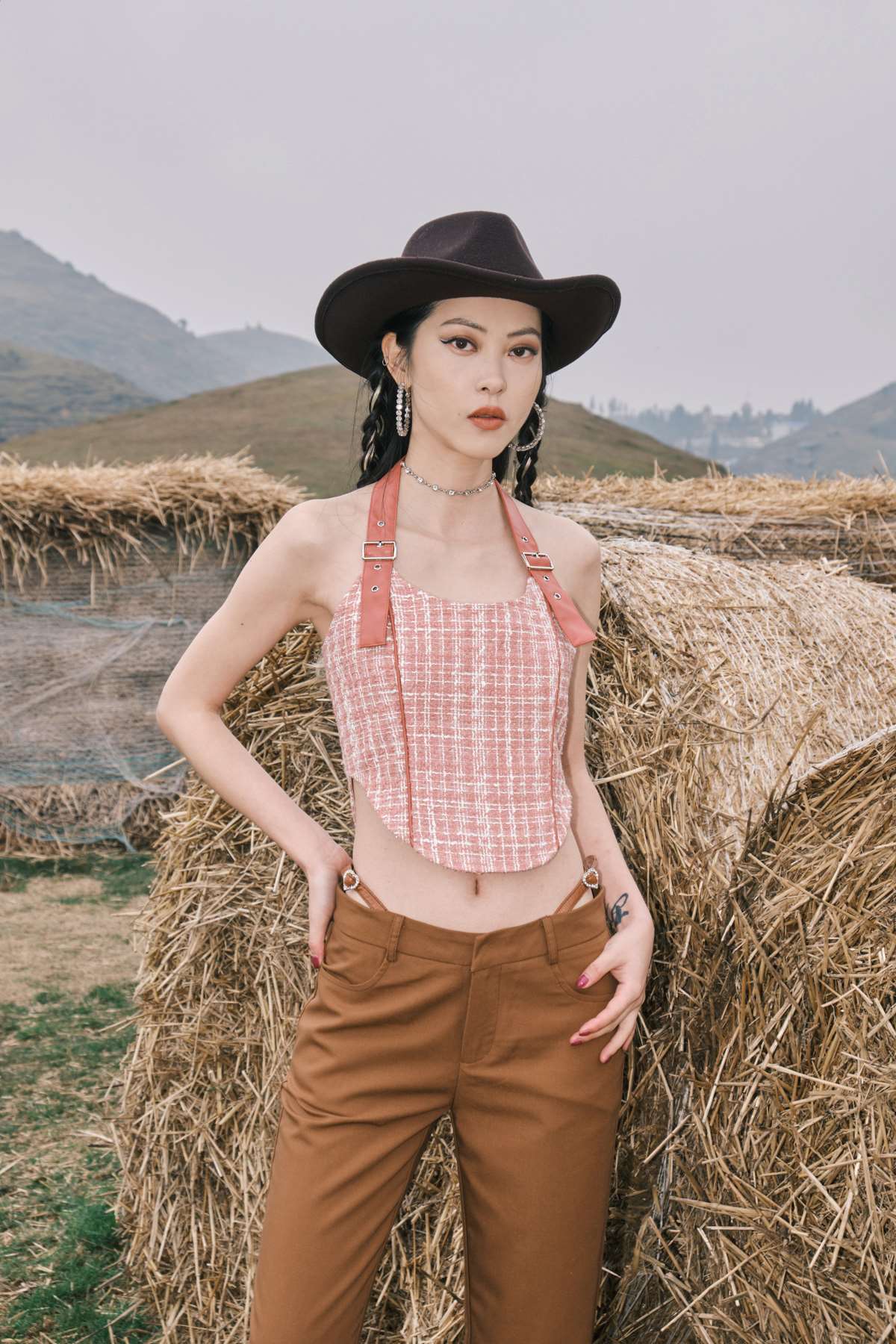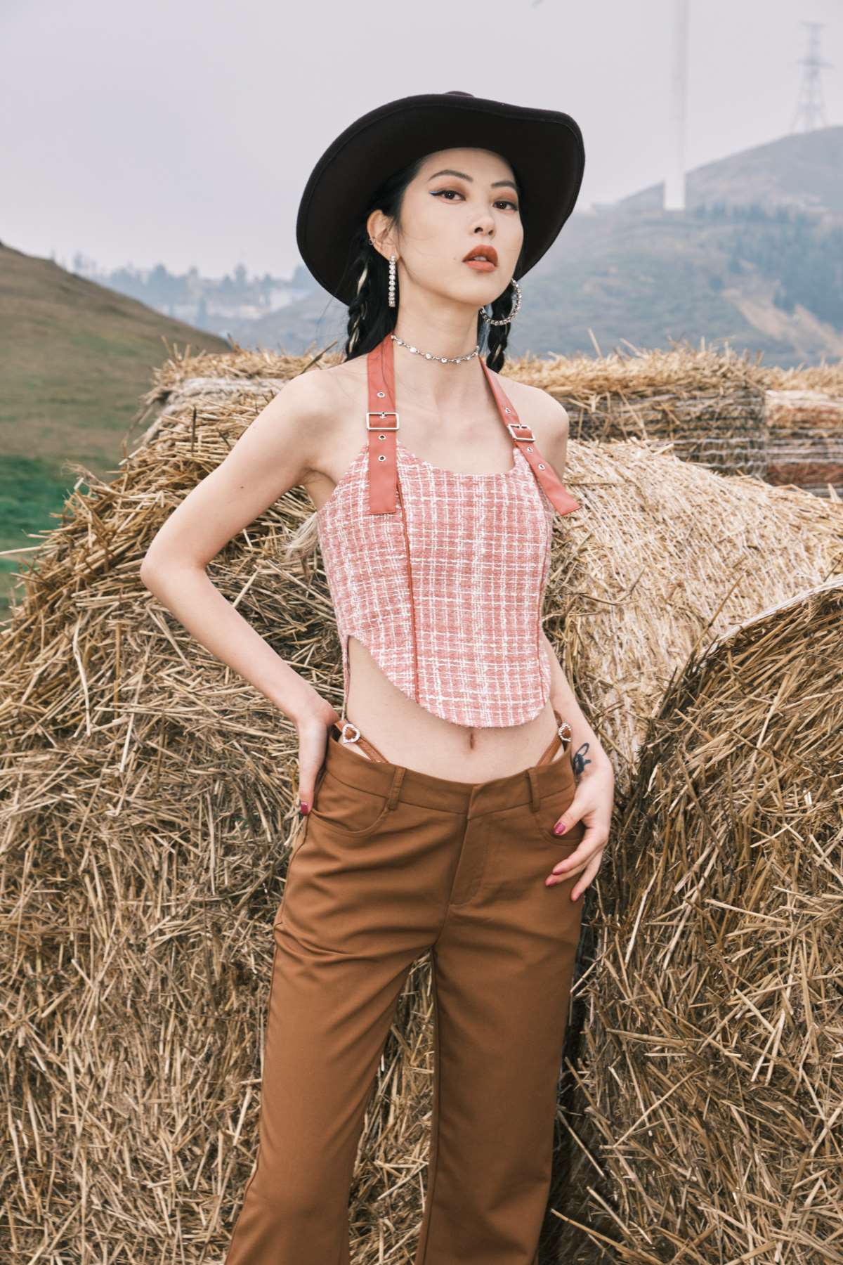 EhK 粉色甜蜜恋情小香风复古挂脖胸衣