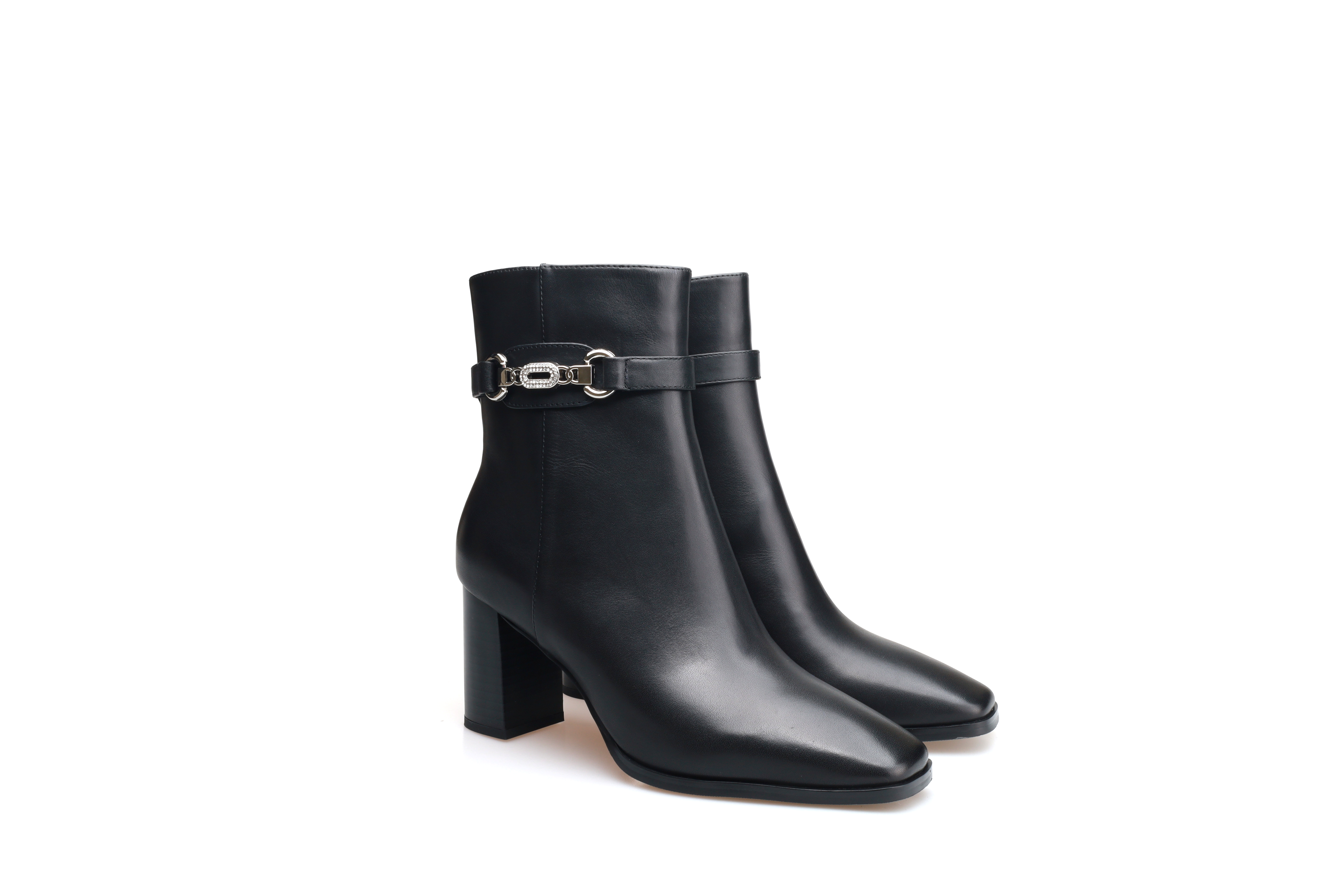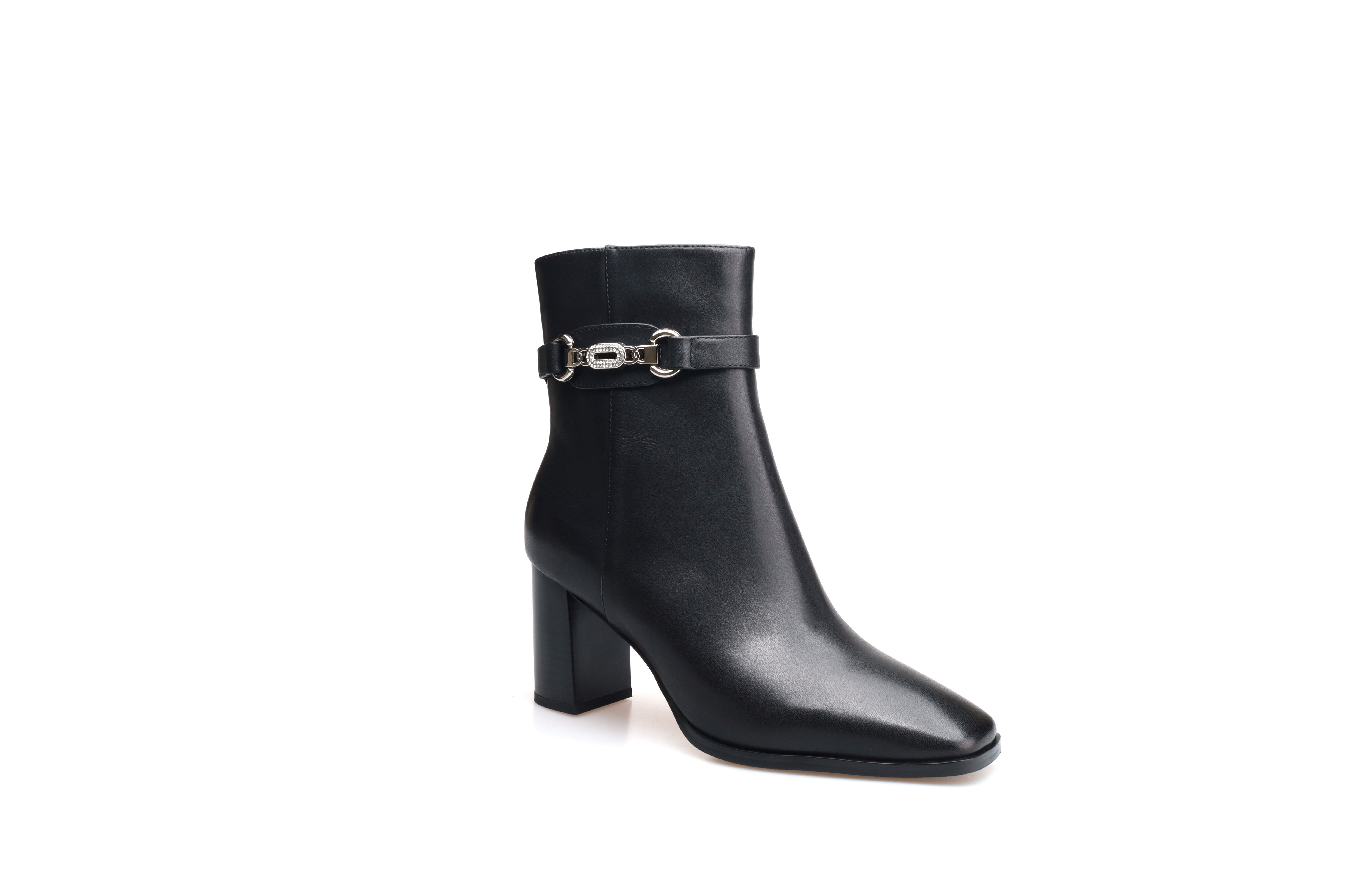 豪麟名鞋迪嘉女鞋短靴牛皮革DJELA52WN018黑色