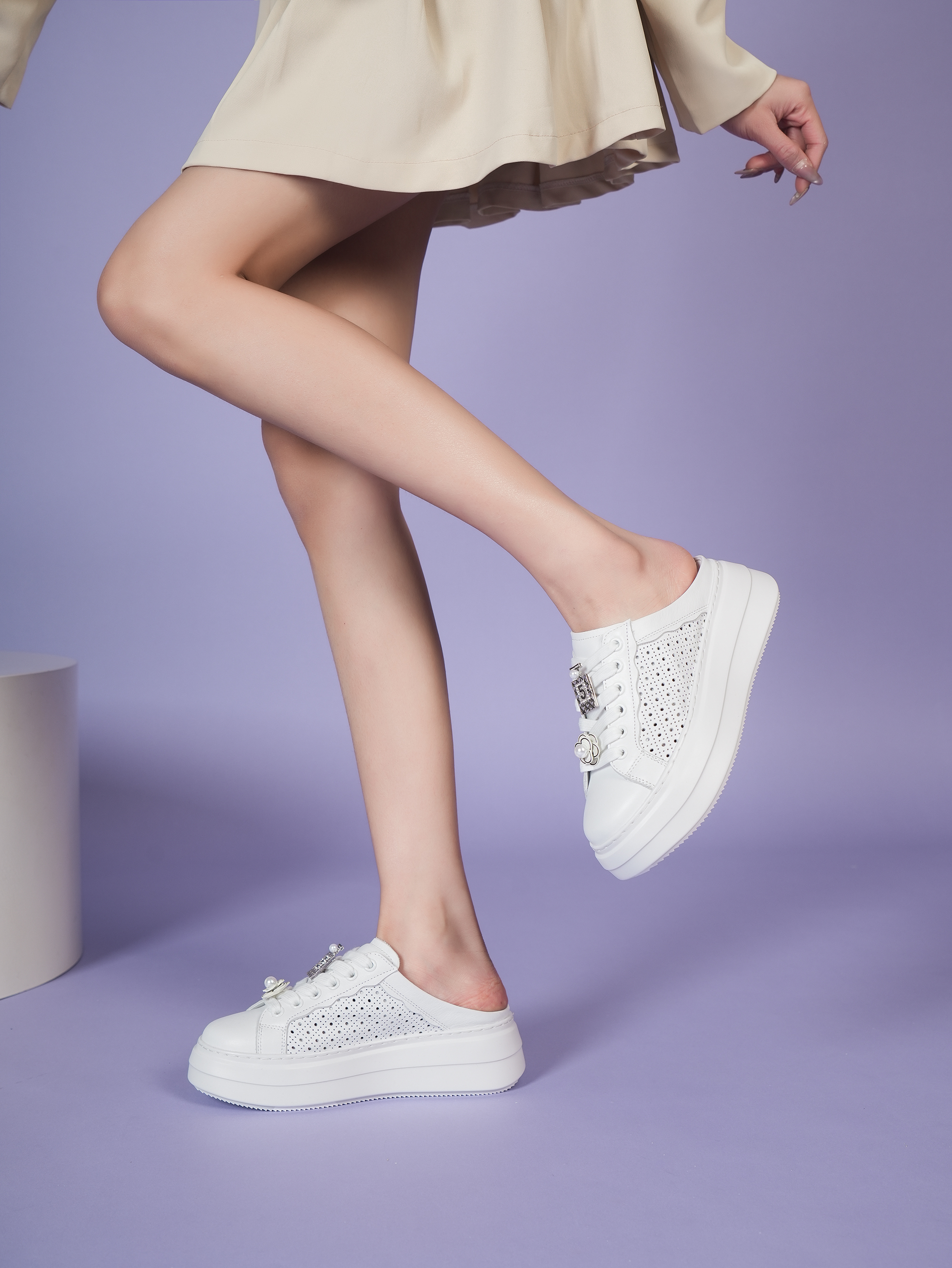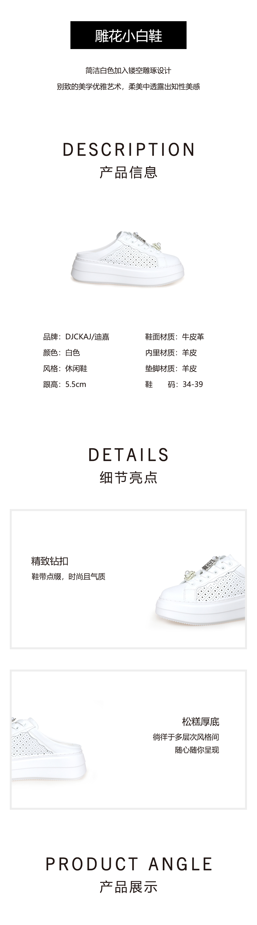 豪麟名鞋奥莱迪嘉女鞋时尚休闲鞋牛皮革DJJGA51WX014白色 原价1960元