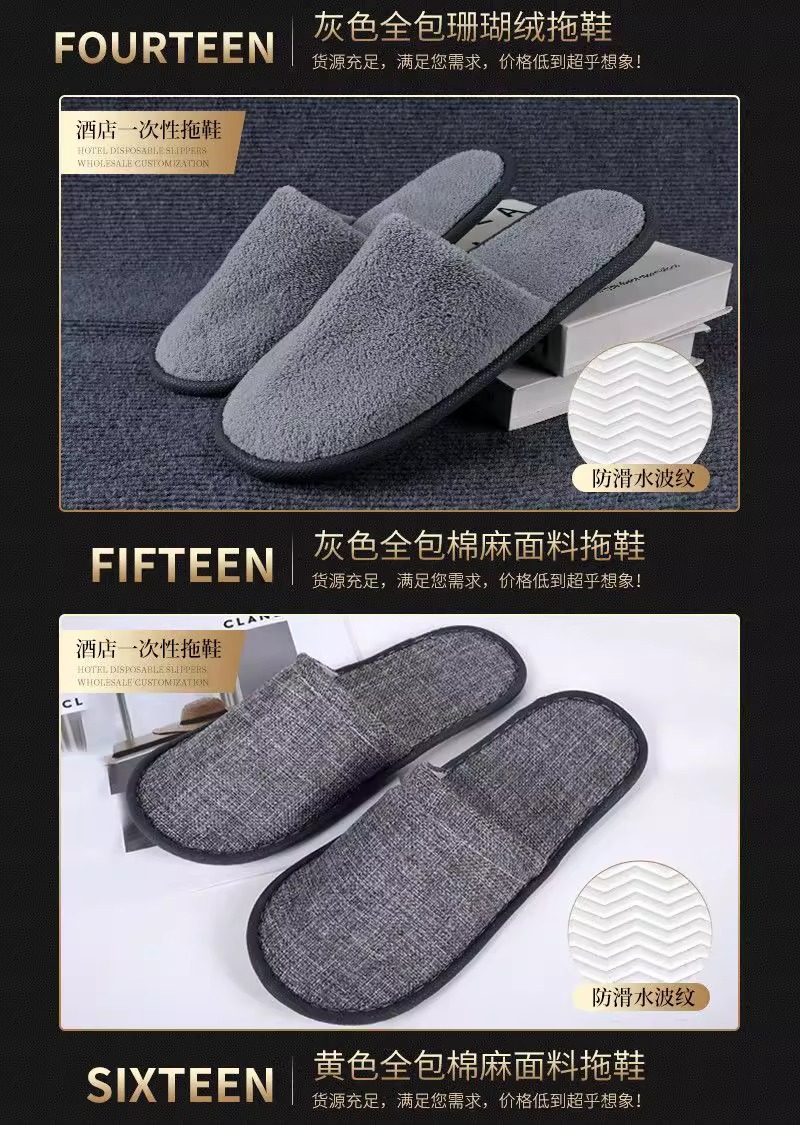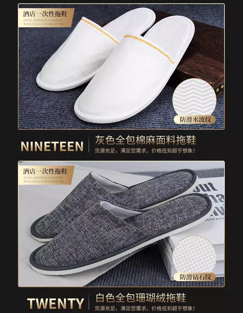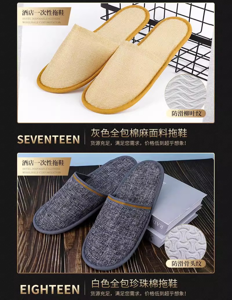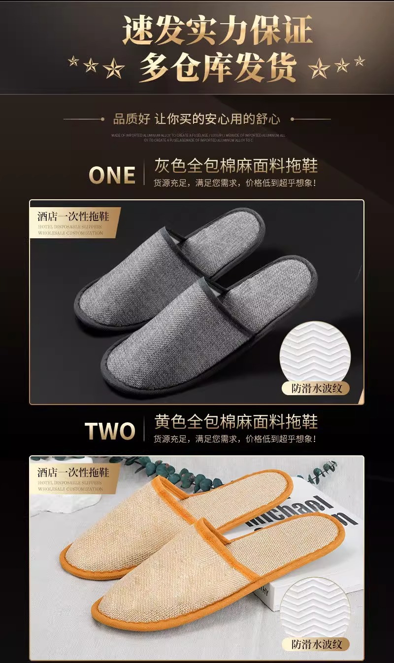 星级酒店一次性亚麻棉麻拖鞋夏季专用大码防滑宾馆民宿logo批发