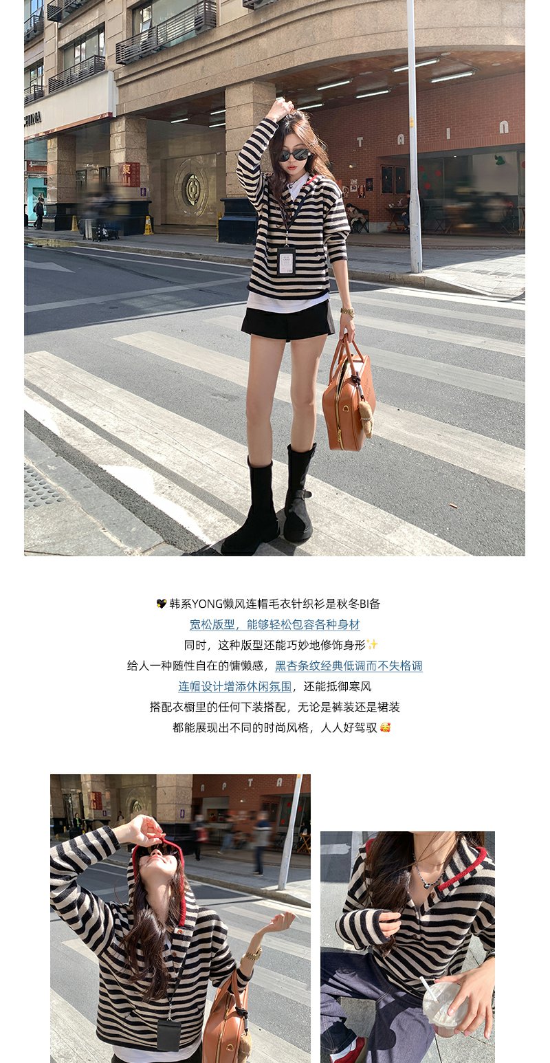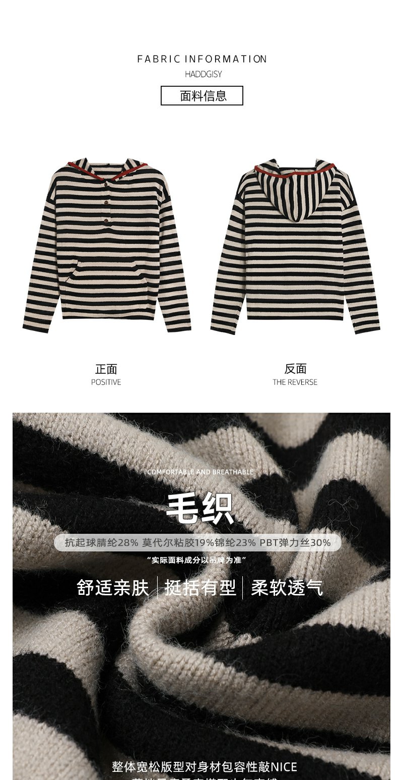 <曾小咸推荐> 黑色条纹连帽毛衣