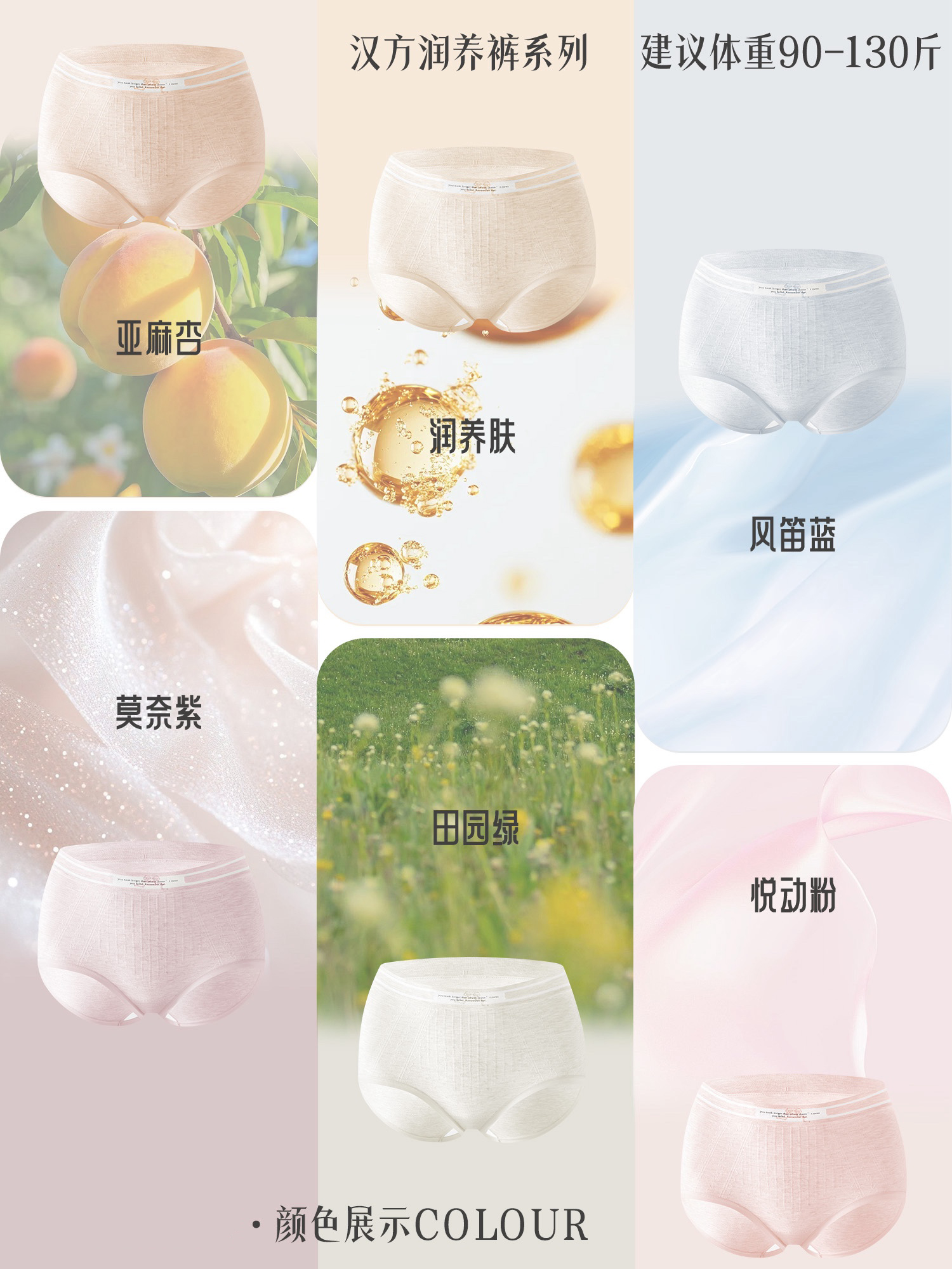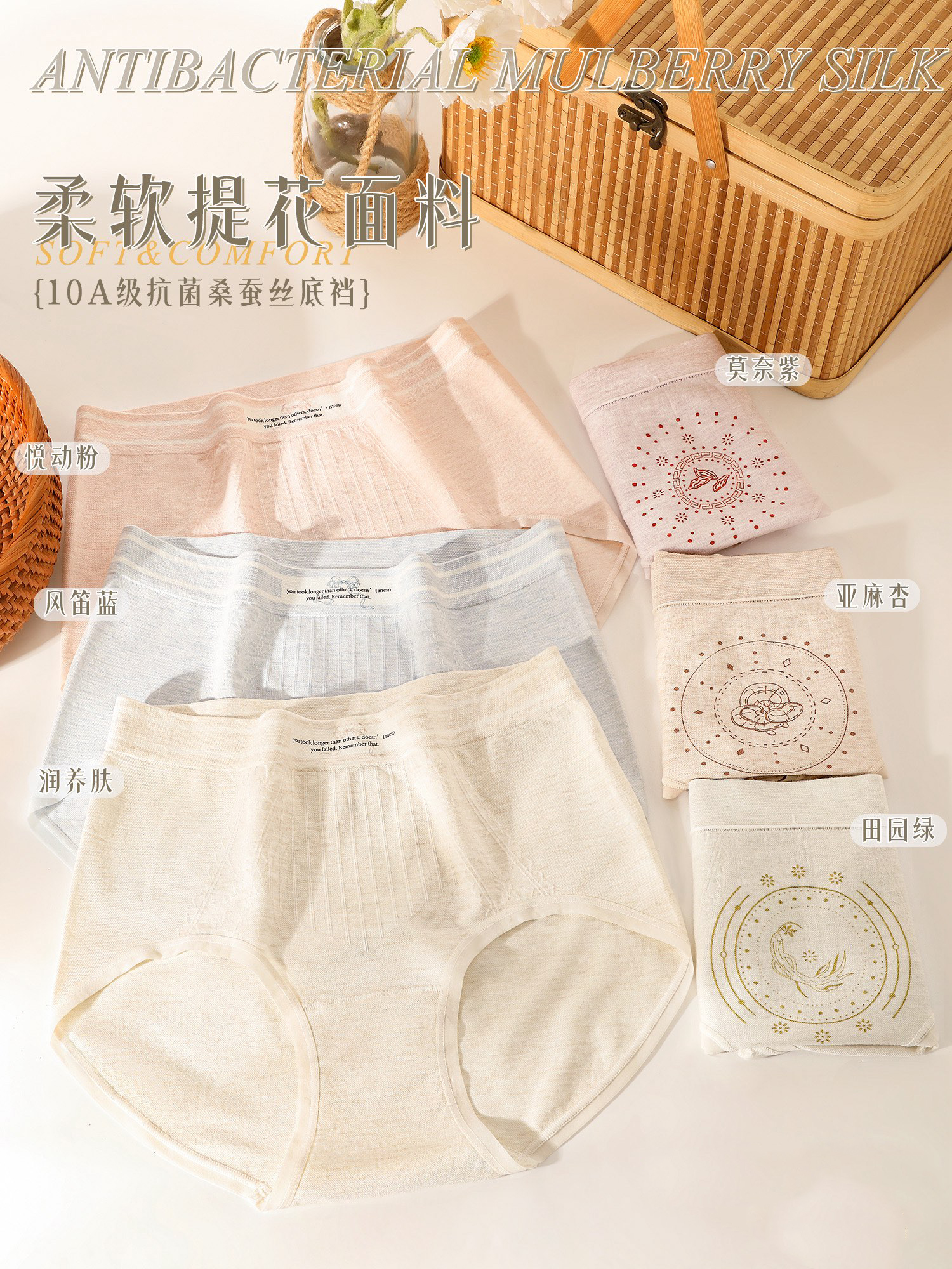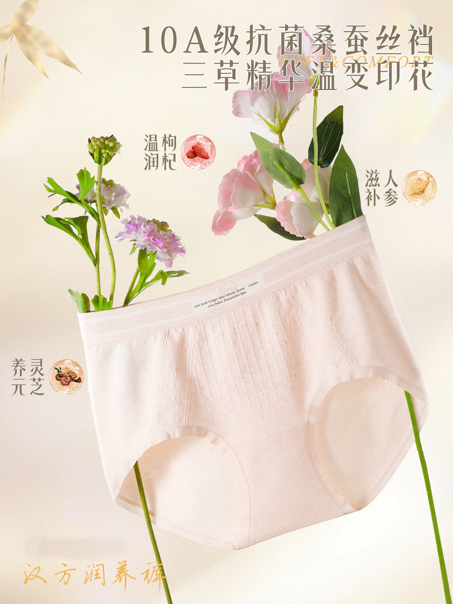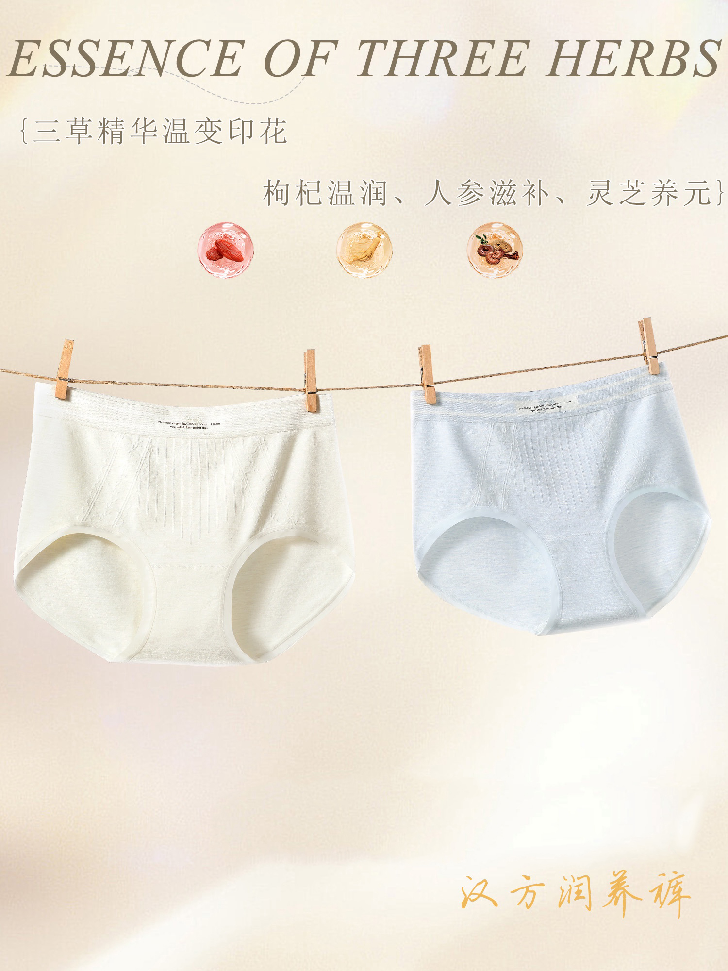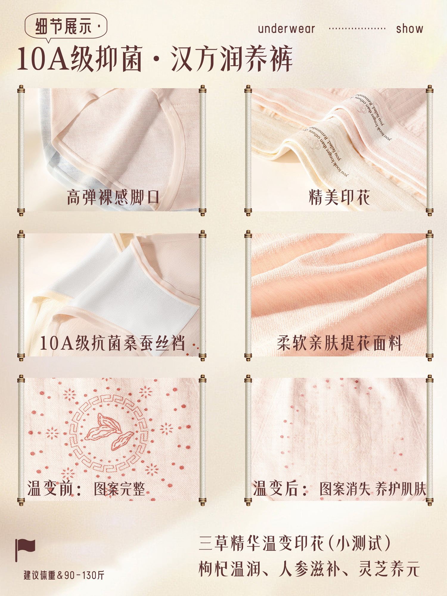 【3条装】女士内裤三草精华温变印花高弹裸感脚口蚕丝底裆内裤90-130斤【CSL25272】