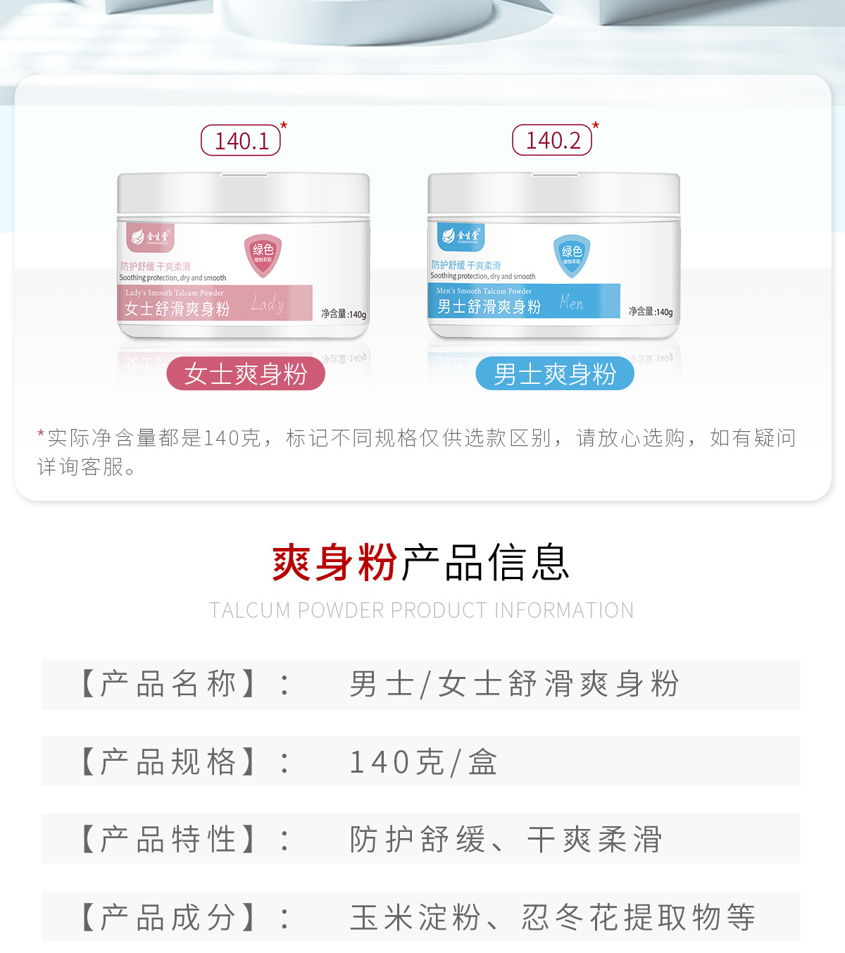 爽身粉痱子粉男女夏季清凉舒缓腋下私处止痒止汗吸汗爽肤清爽批发
