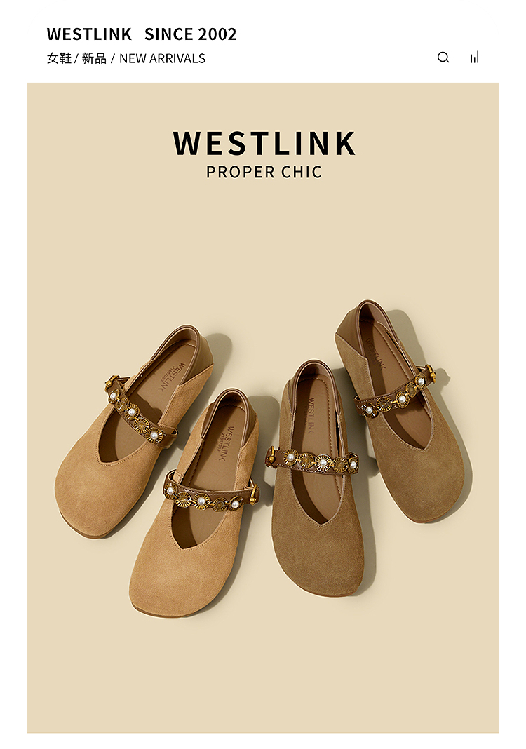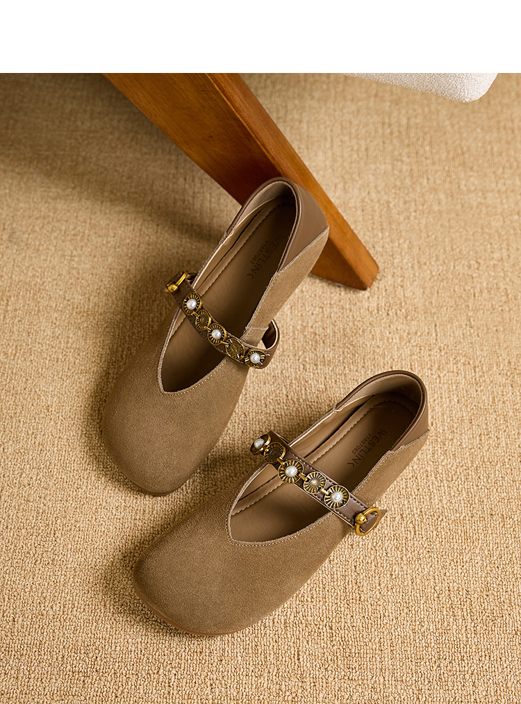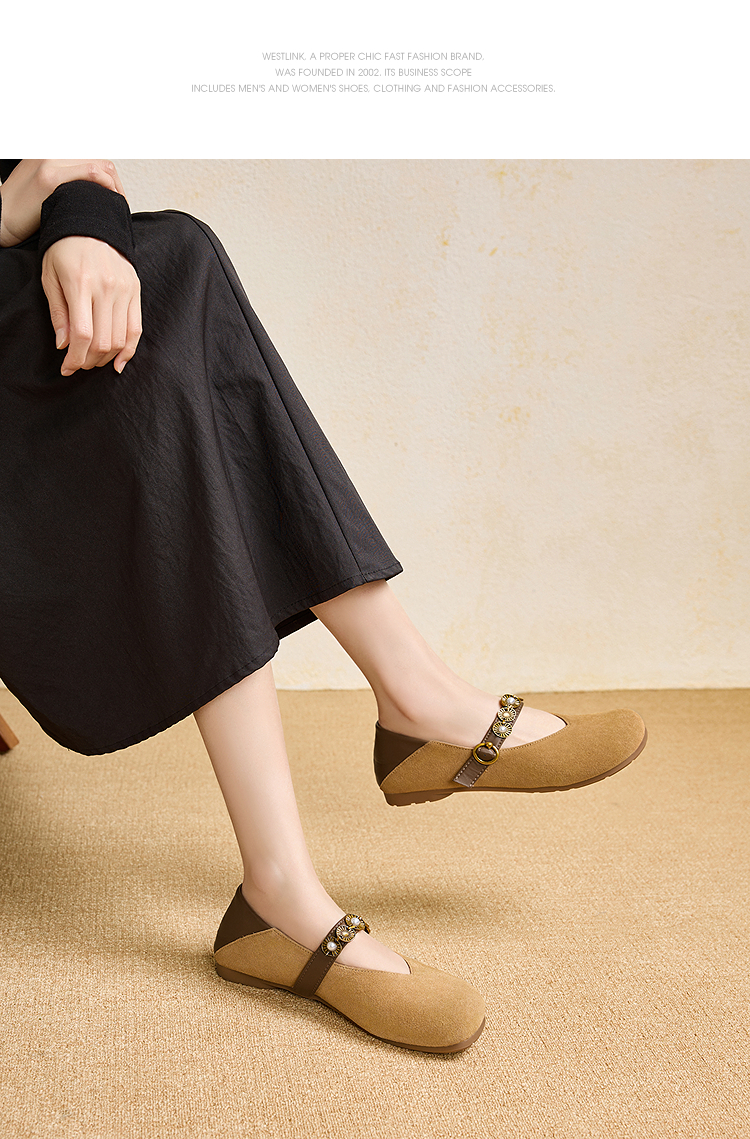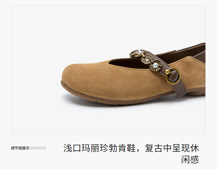 【限时秒杀】西遇复古玛丽珍鞋女新款秋季波西米亚圆头平底单鞋软底勃肯鞋V1857083