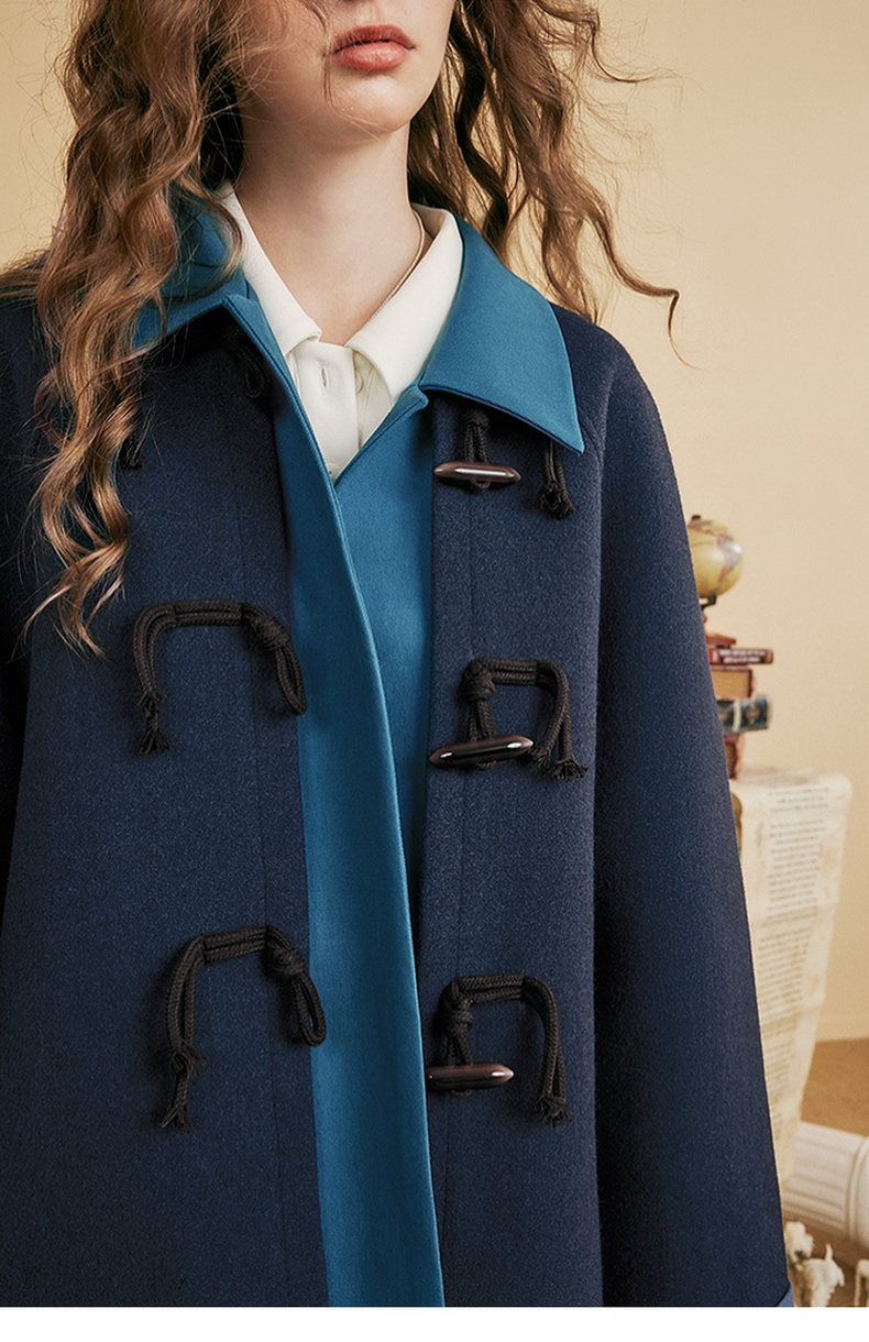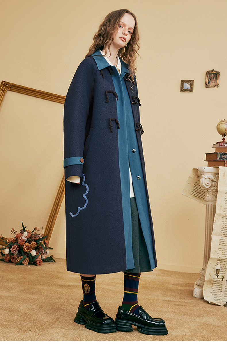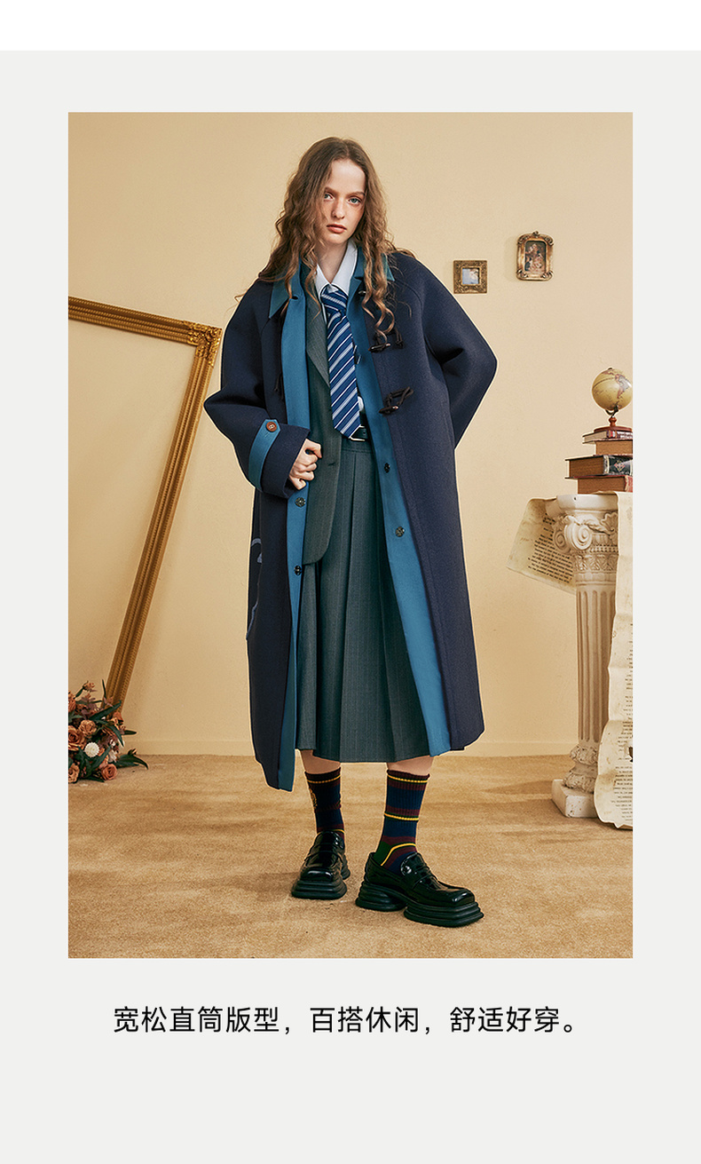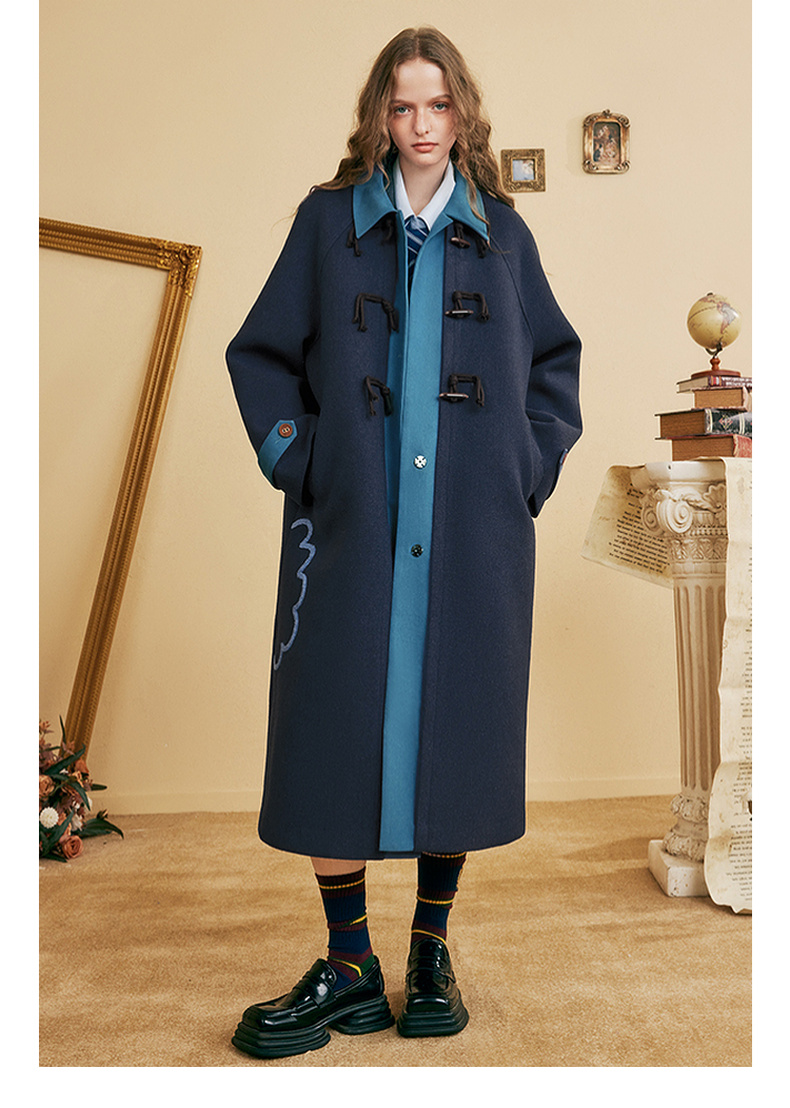 【暖冬内购】两三事 海上神探长 2024秋冬新款花朵毛巾绣拼色牛角扣毛呢外套女