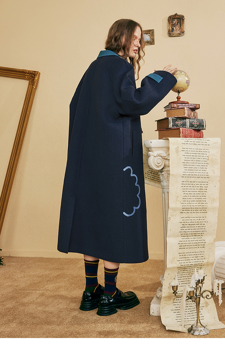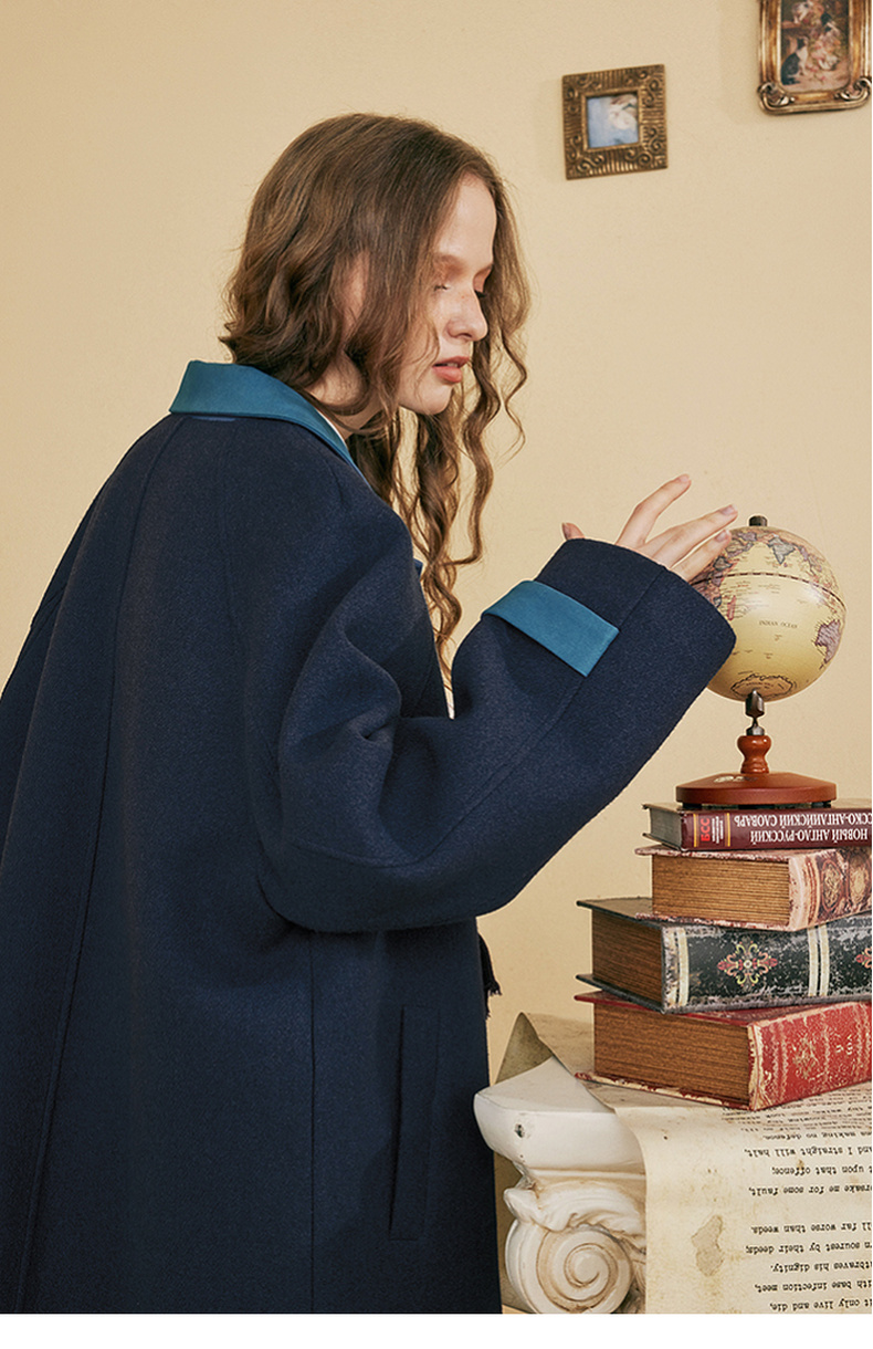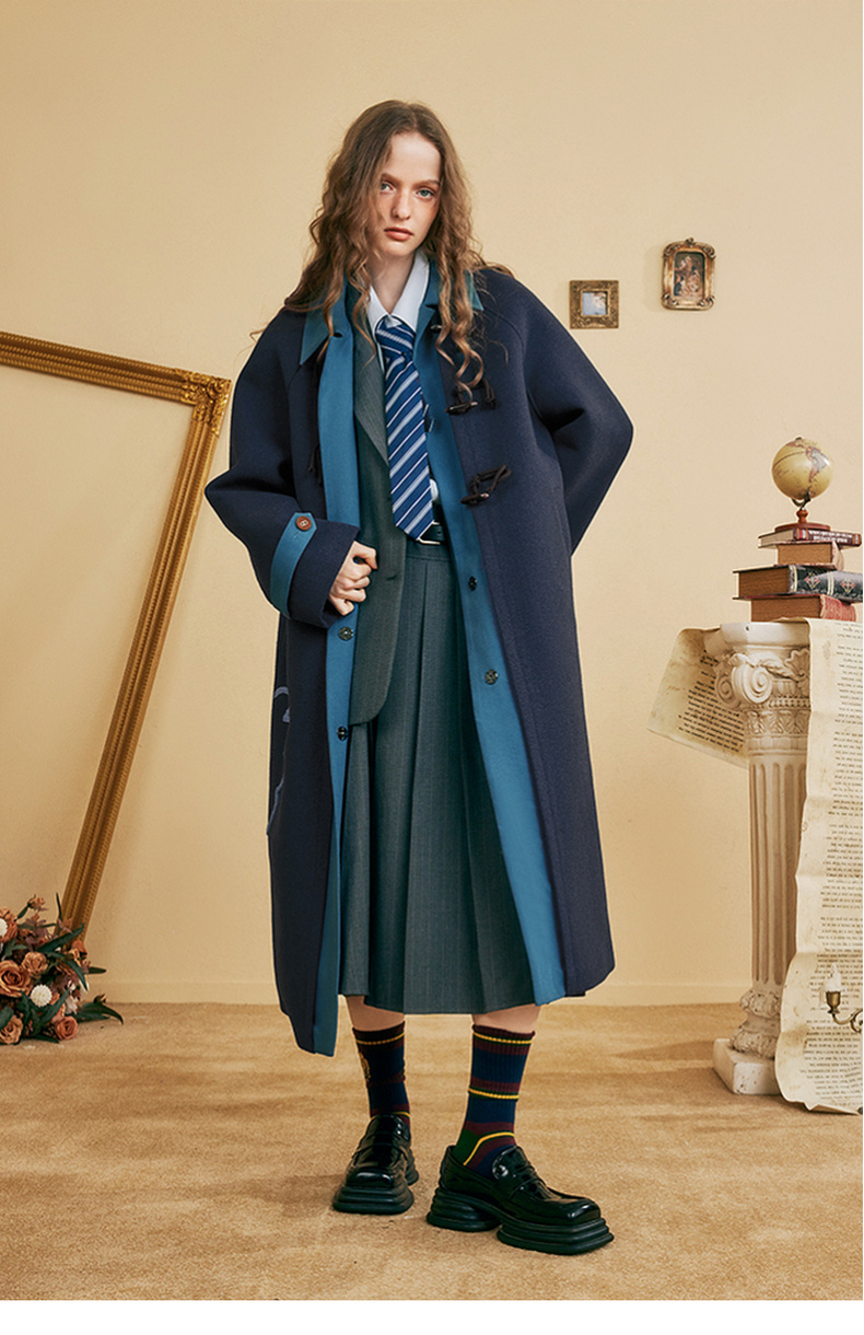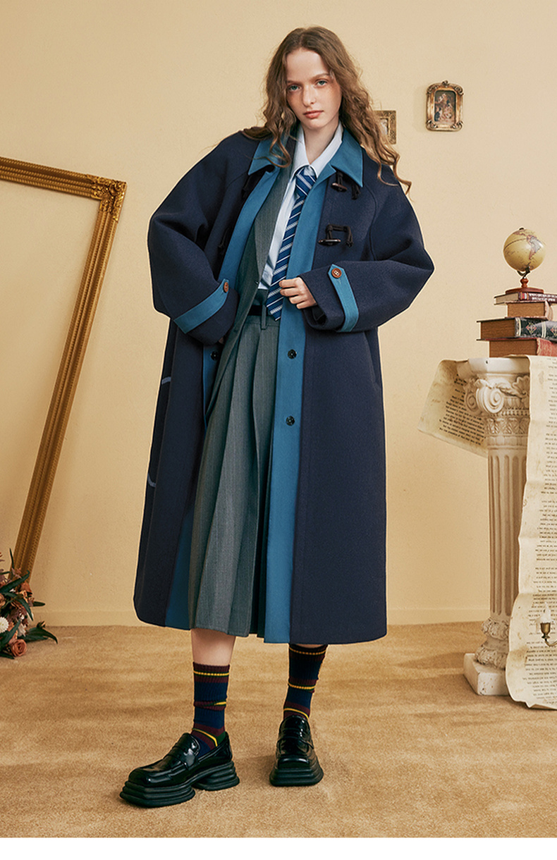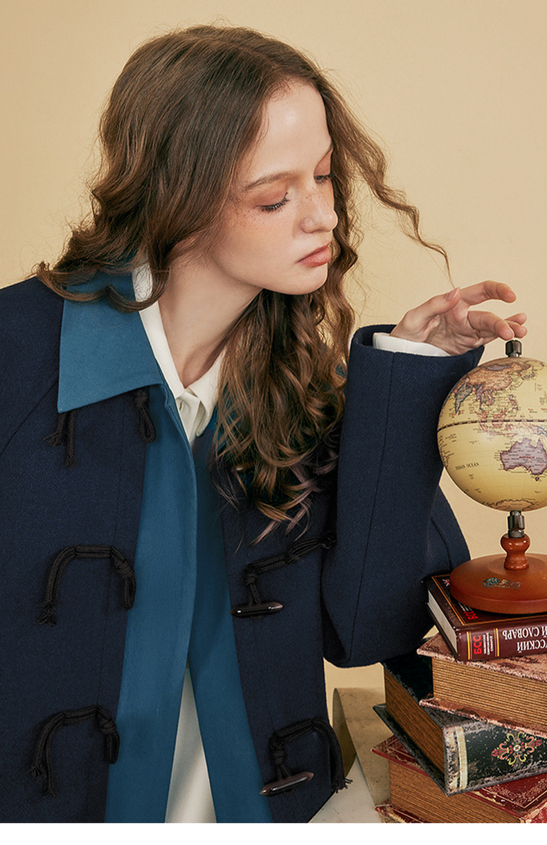 【暖冬内购】两三事 海上神探长 2024秋冬新款花朵毛巾绣拼色牛角扣毛呢外套女