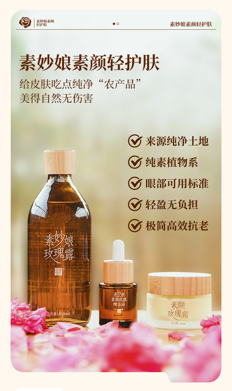 素妙娘轻护肤三合一组合套装 生态种植纯净补水保湿护肤【京东快递送货上门】【赠旅行装小露+小油】