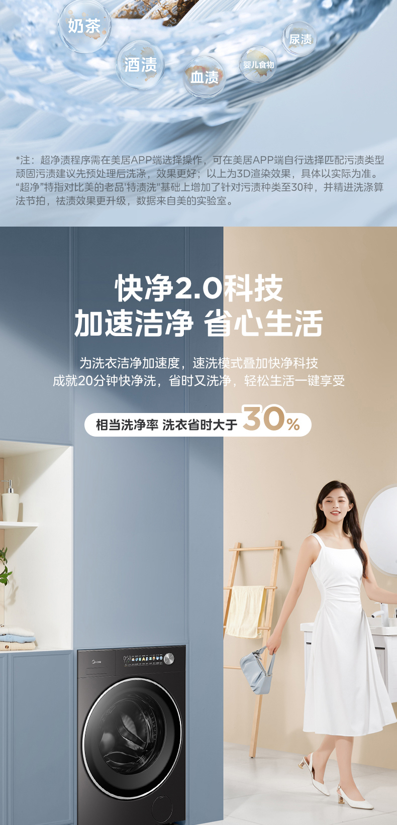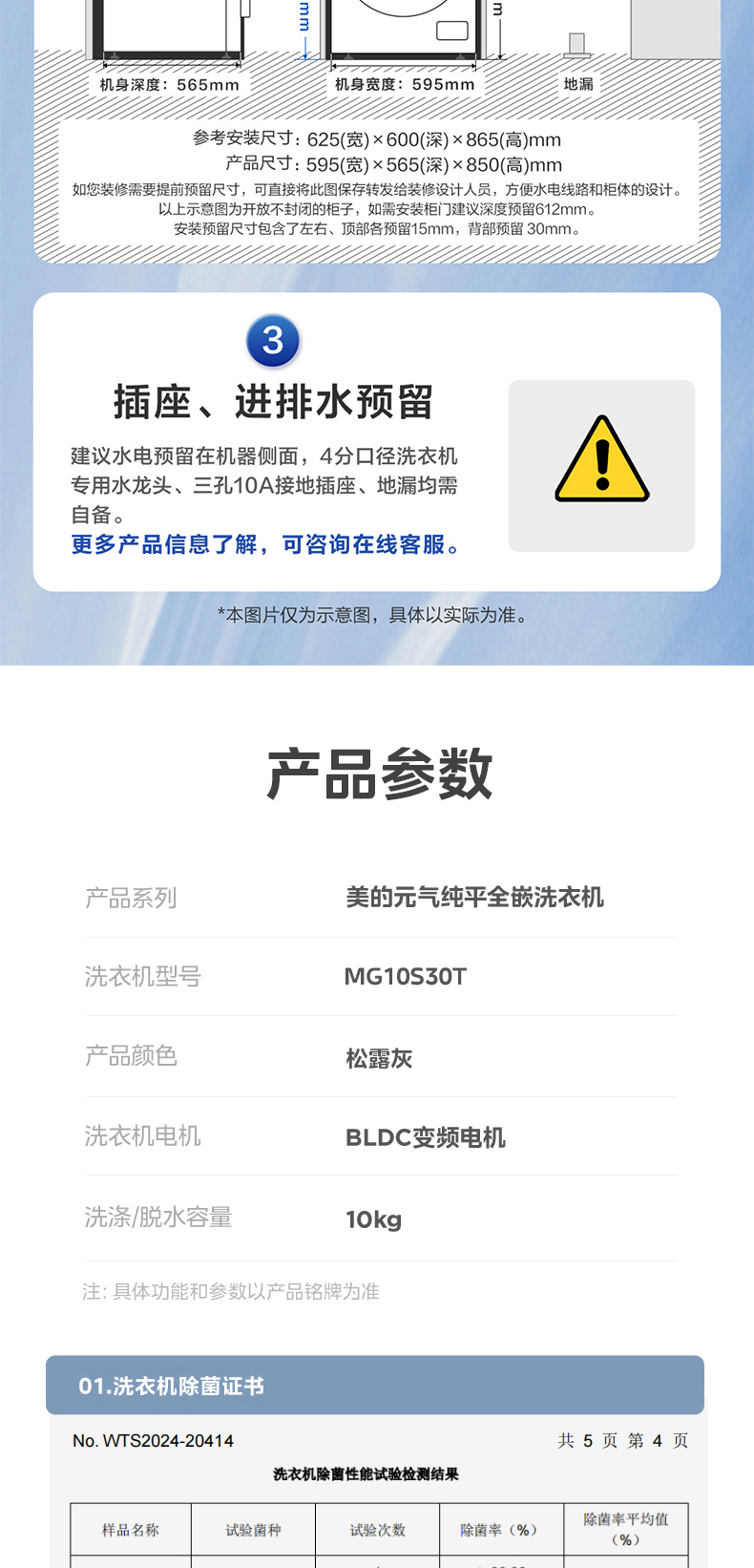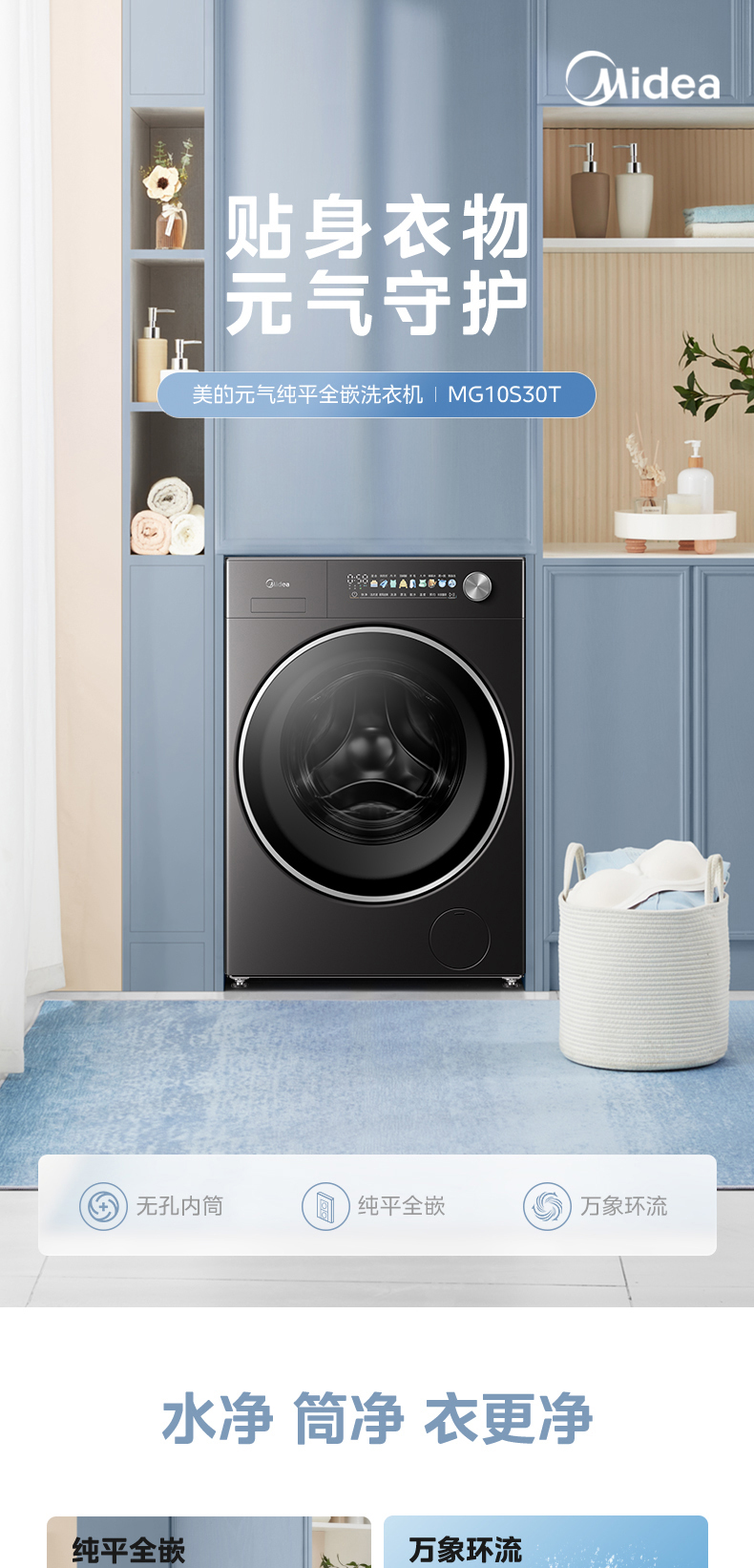 美的 MG10S30T 滚筒洗衣机 松露灰 220V,1Ph 50Hz 转速1400 不带银离子