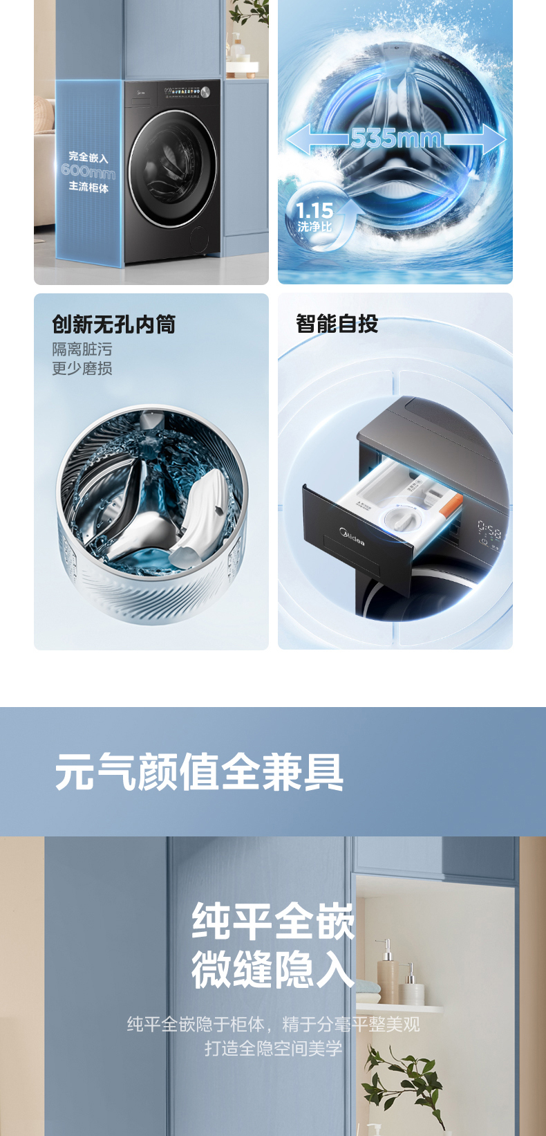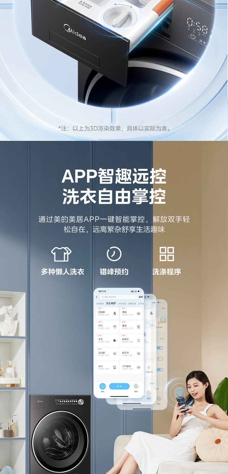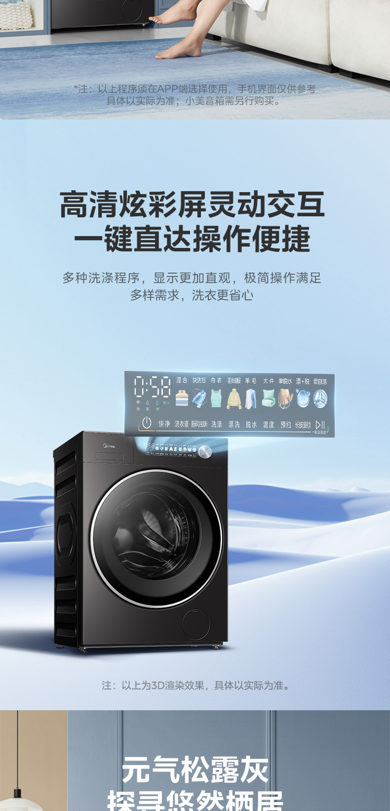 美的 MG10S30T 滚筒洗衣机 松露灰 220V,1Ph 50Hz 转速1400 不带银离子
