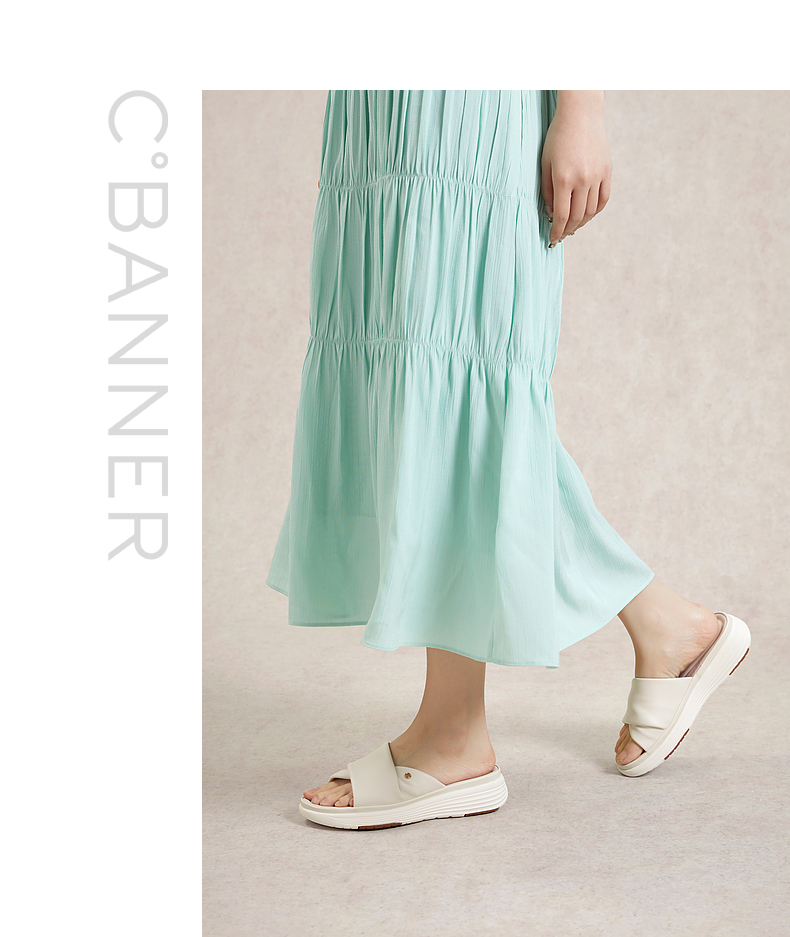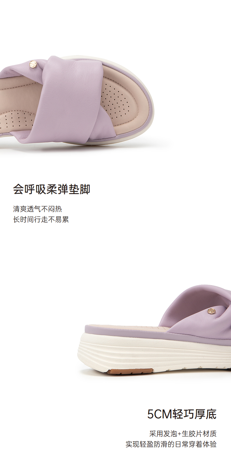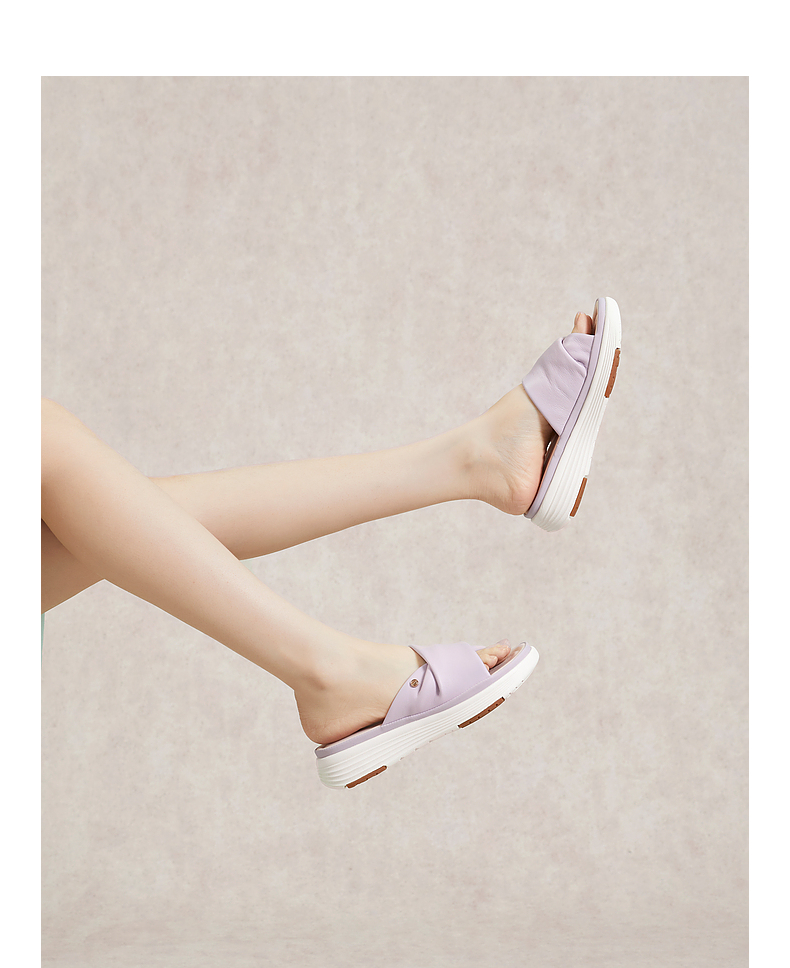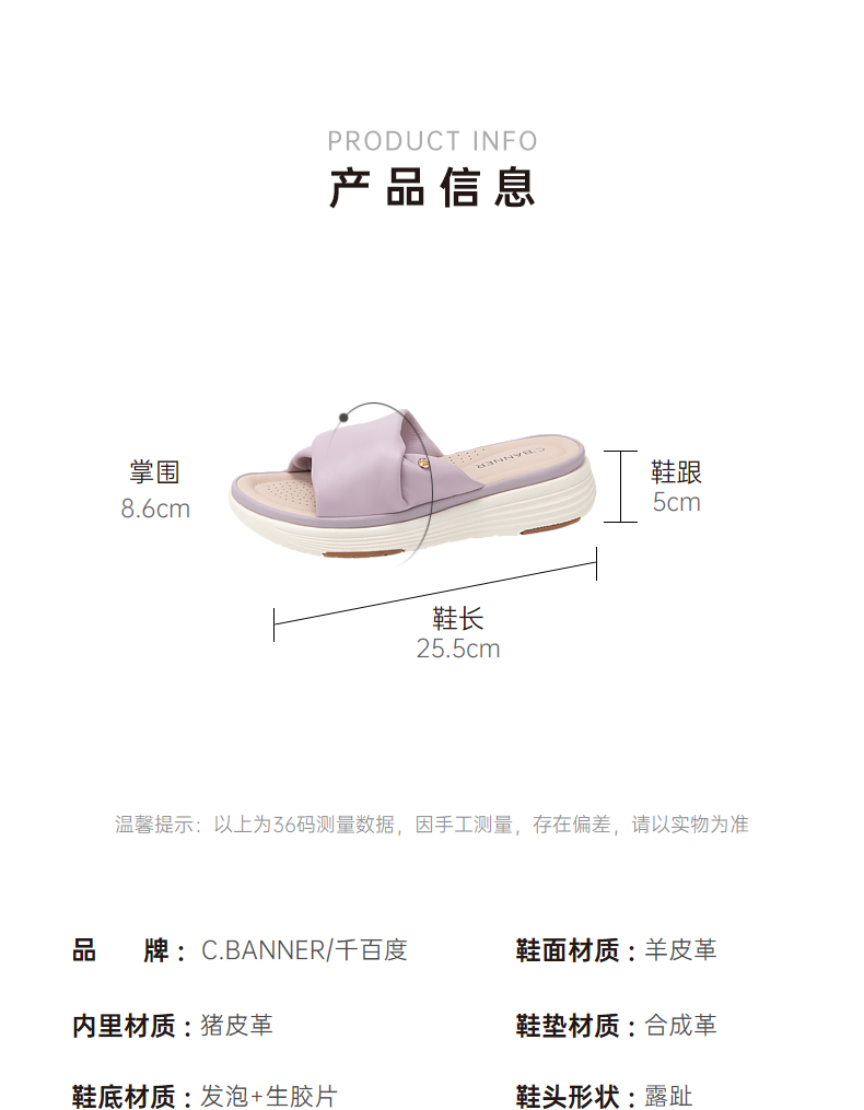 千百度羊皮厚底增高凉拖鞋女款夏季休闲度假可A24317603