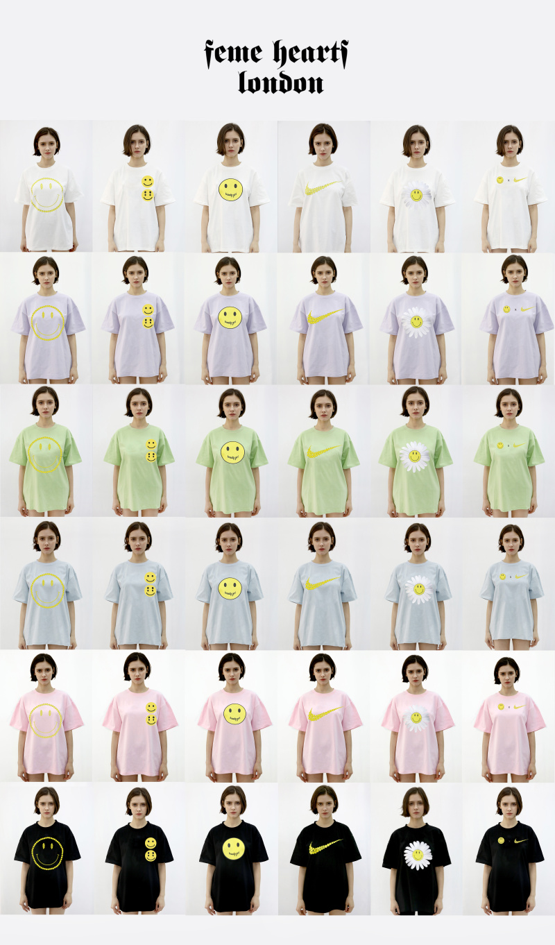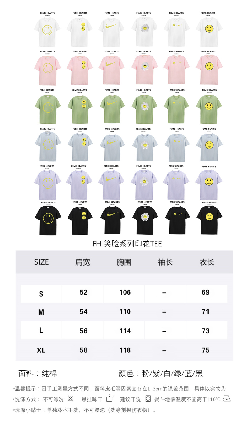 【样品清仓】Feme Hearts欧美笑脸系列印花宽松T恤(不支持退换)[福利品]