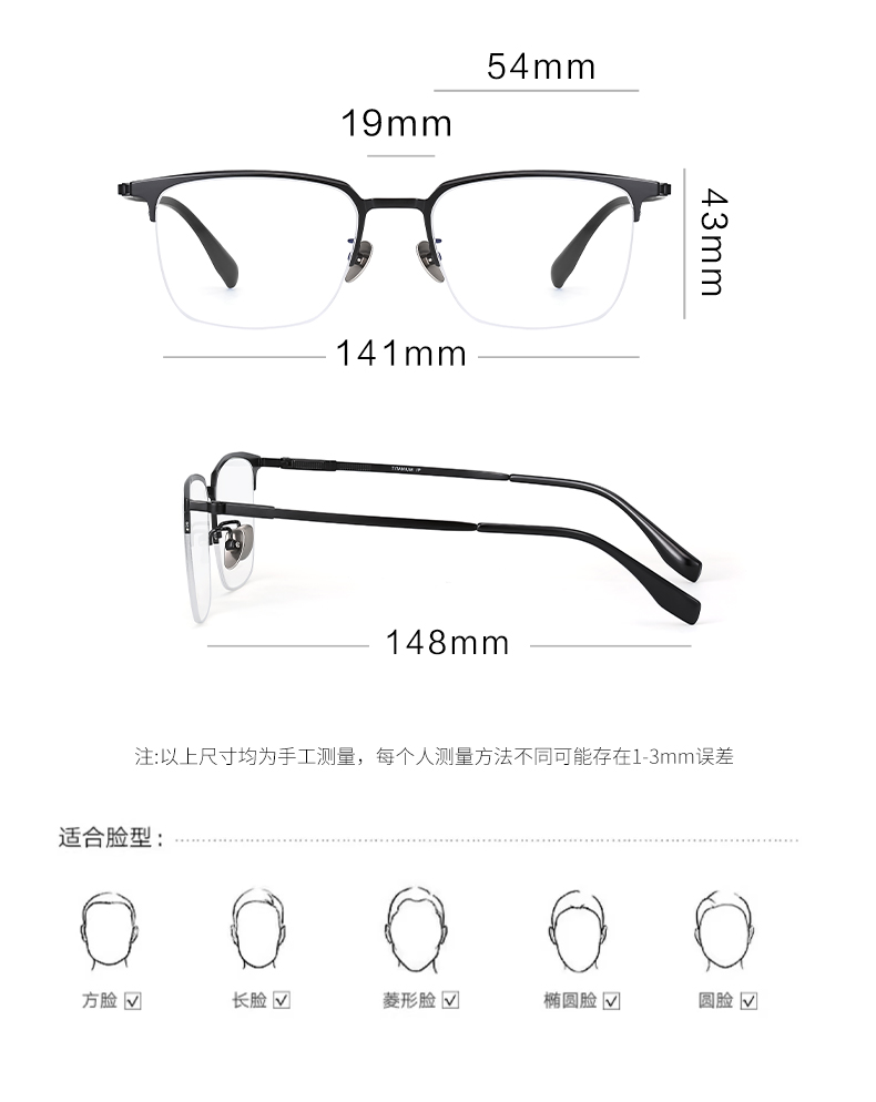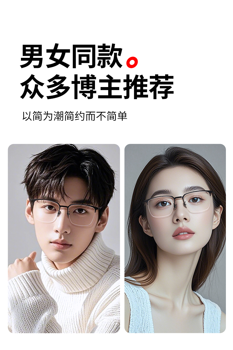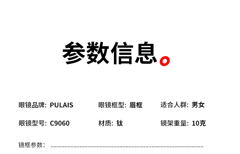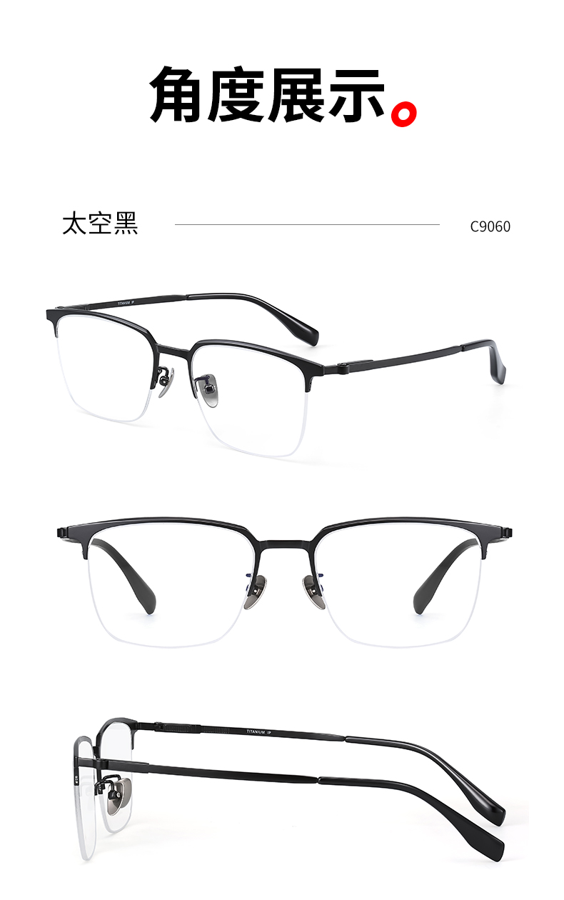 普莱斯光学镜框C9060 简约眉框 纯钛镜框 三色可选 男女同款
