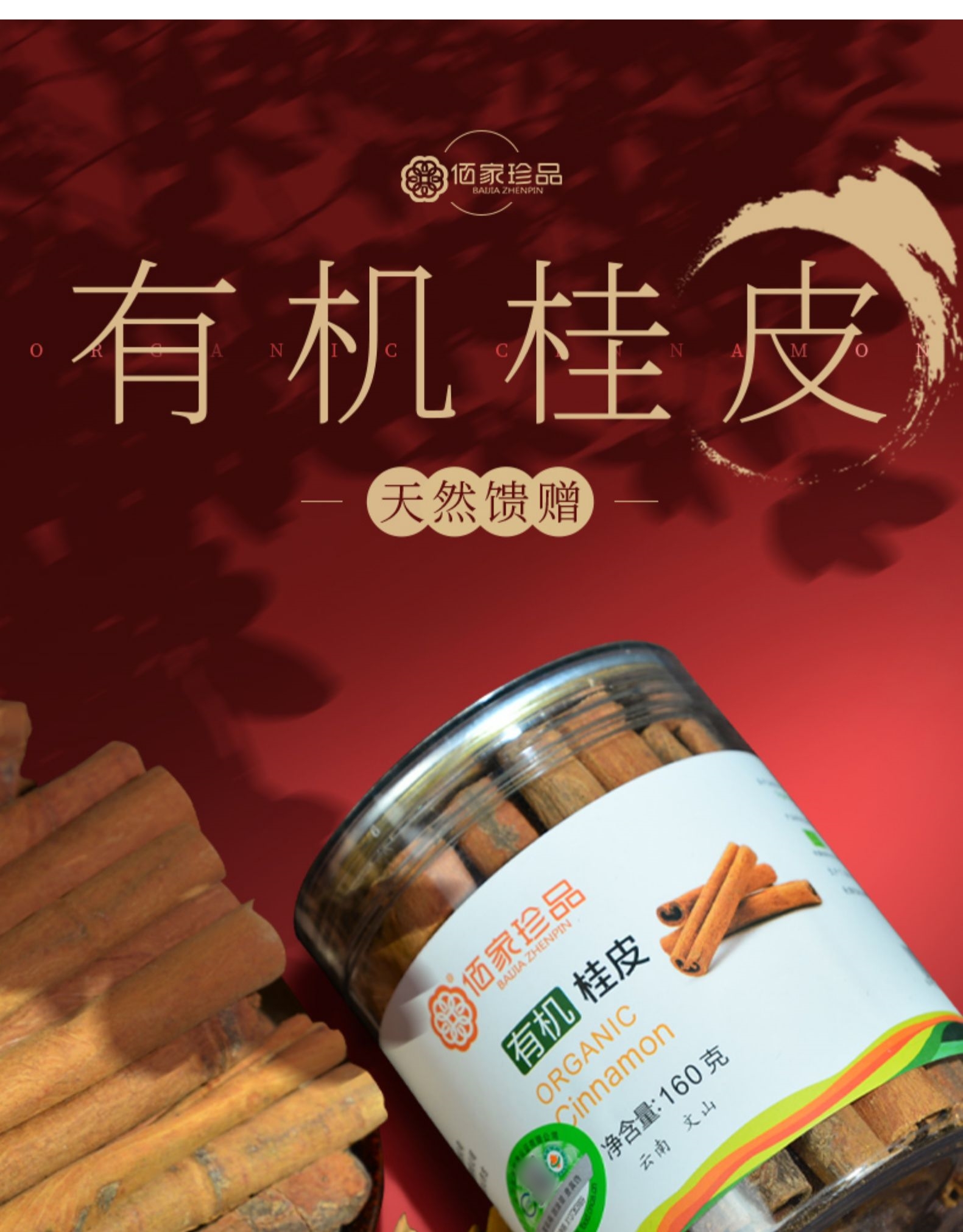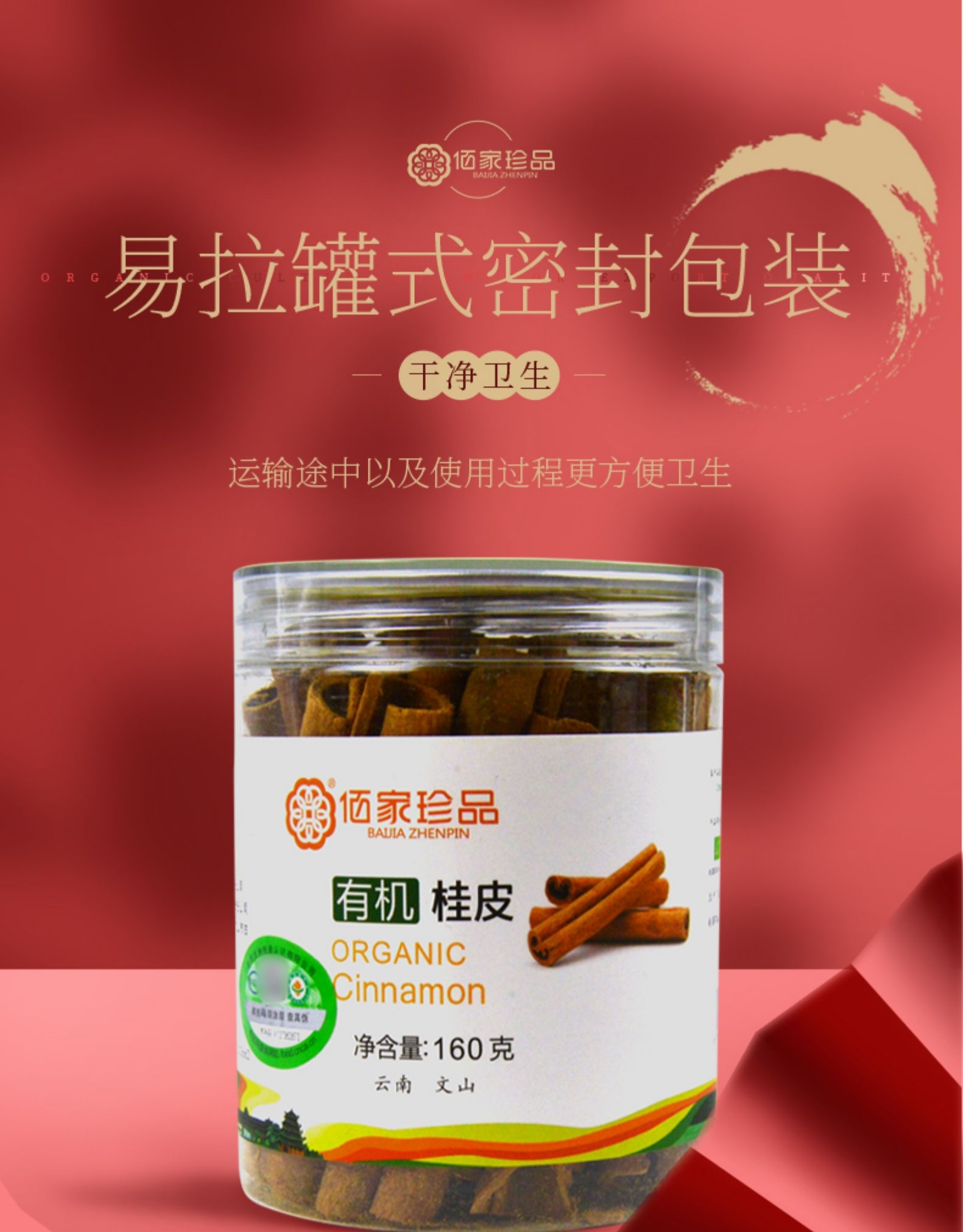 有机桂皮棒 精选去皮卤调料香料 160g/罐【京东快递送货上门】