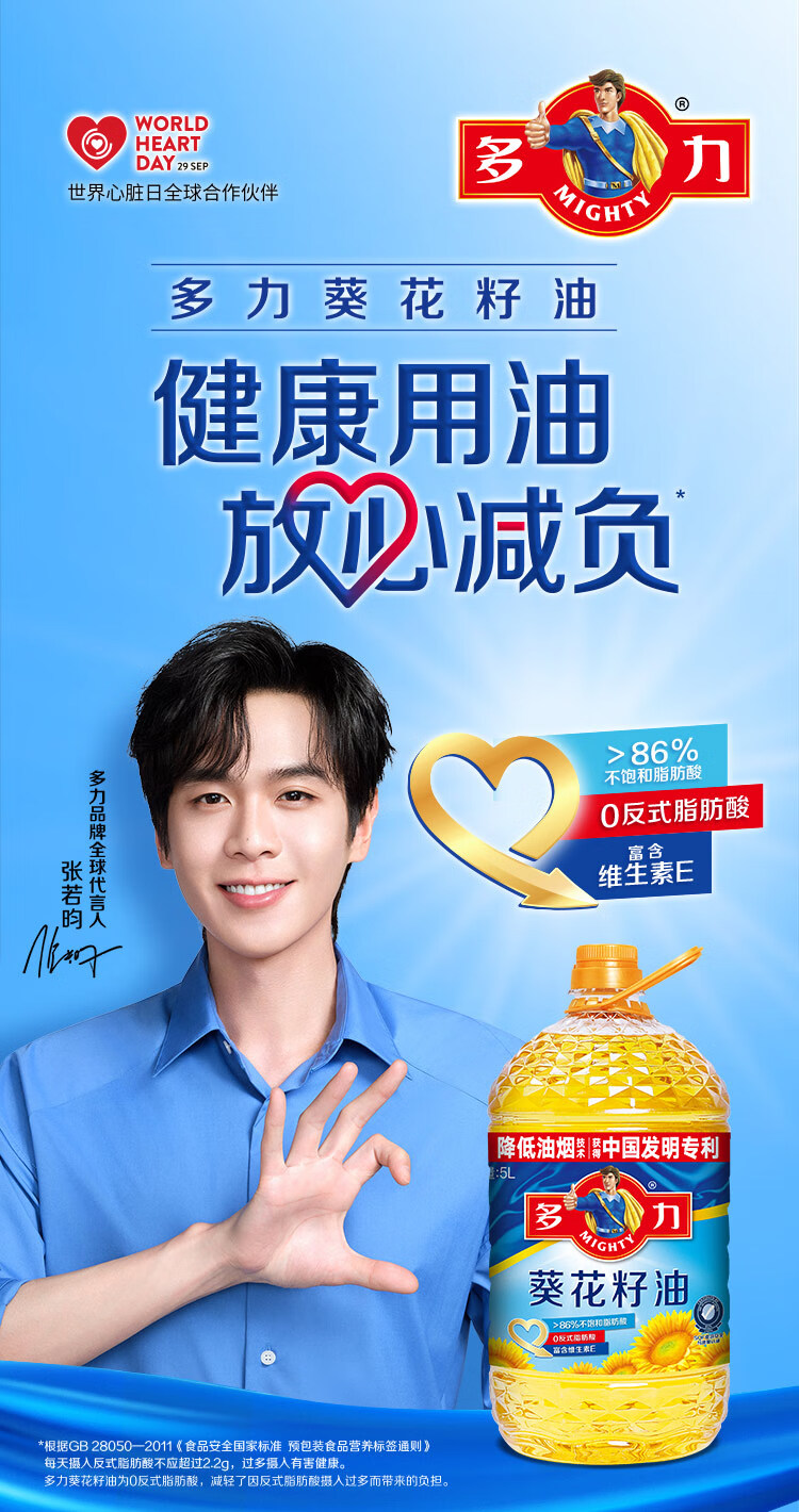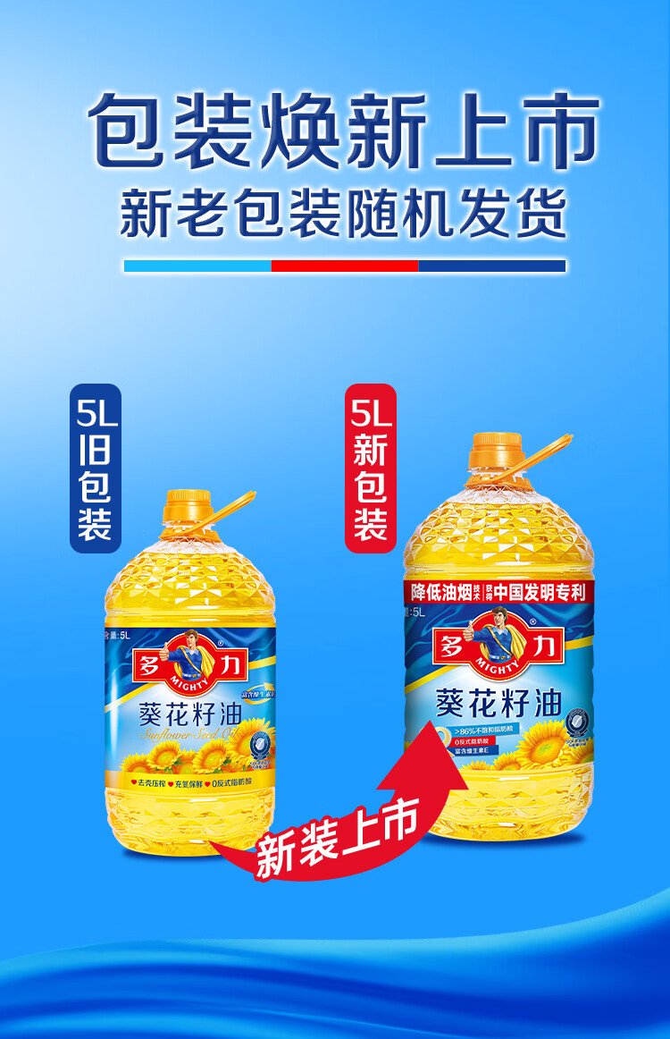 多力 葵花籽油5L食用油 物理压榨 零反式脂肪酸 1151232