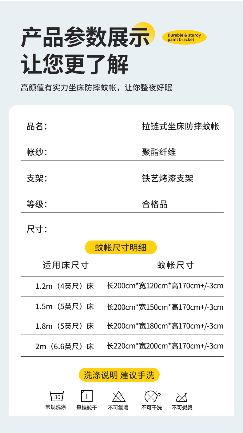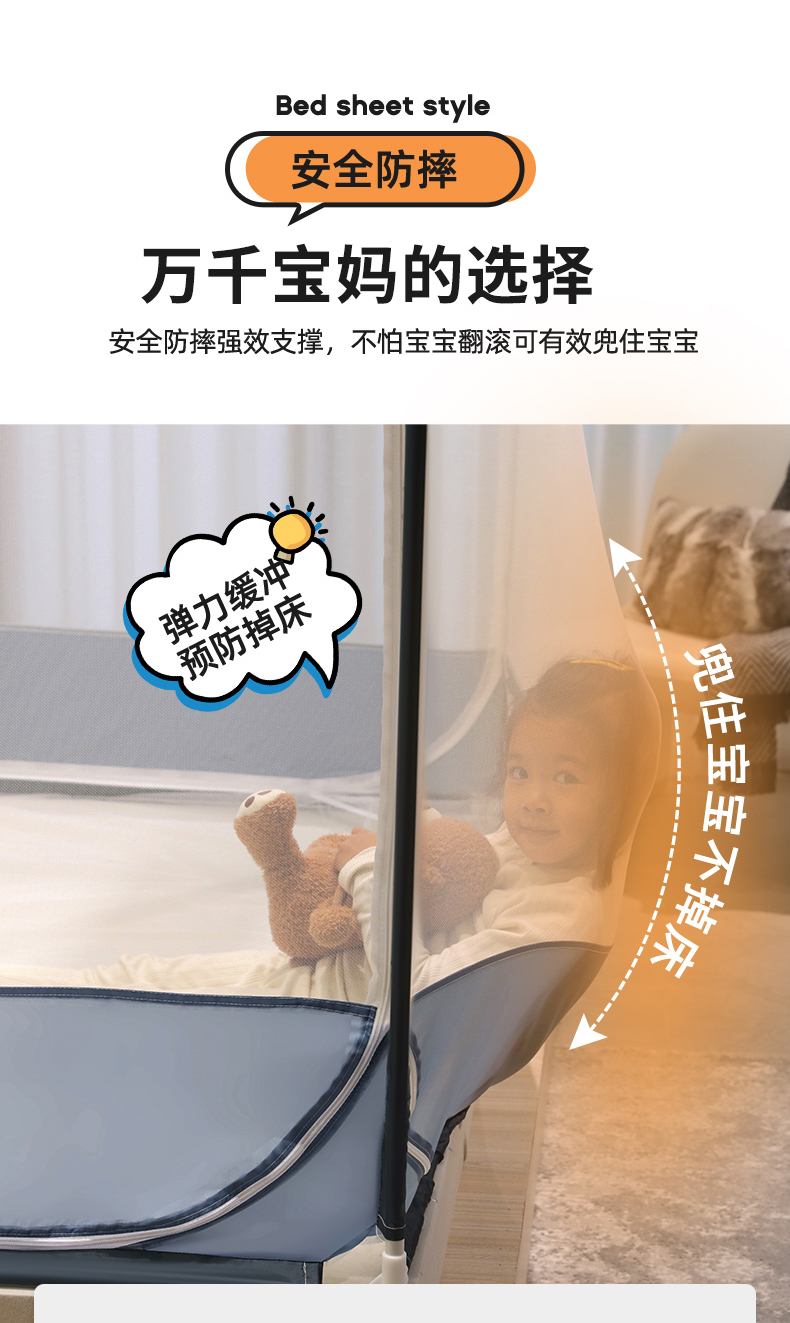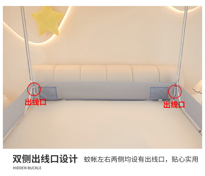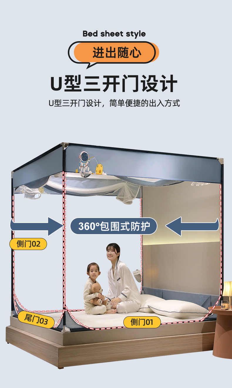 自然醒防摔蚊帐家用卧室免安装蒙古包支架婴儿童防止掉床帘遮光2302HH
