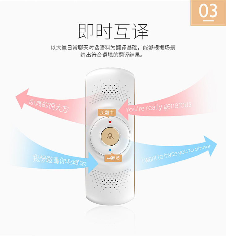 再按下翻译按钮,扬声器中便传来了标准的英语。同样的,只要对着仪器说句英文,