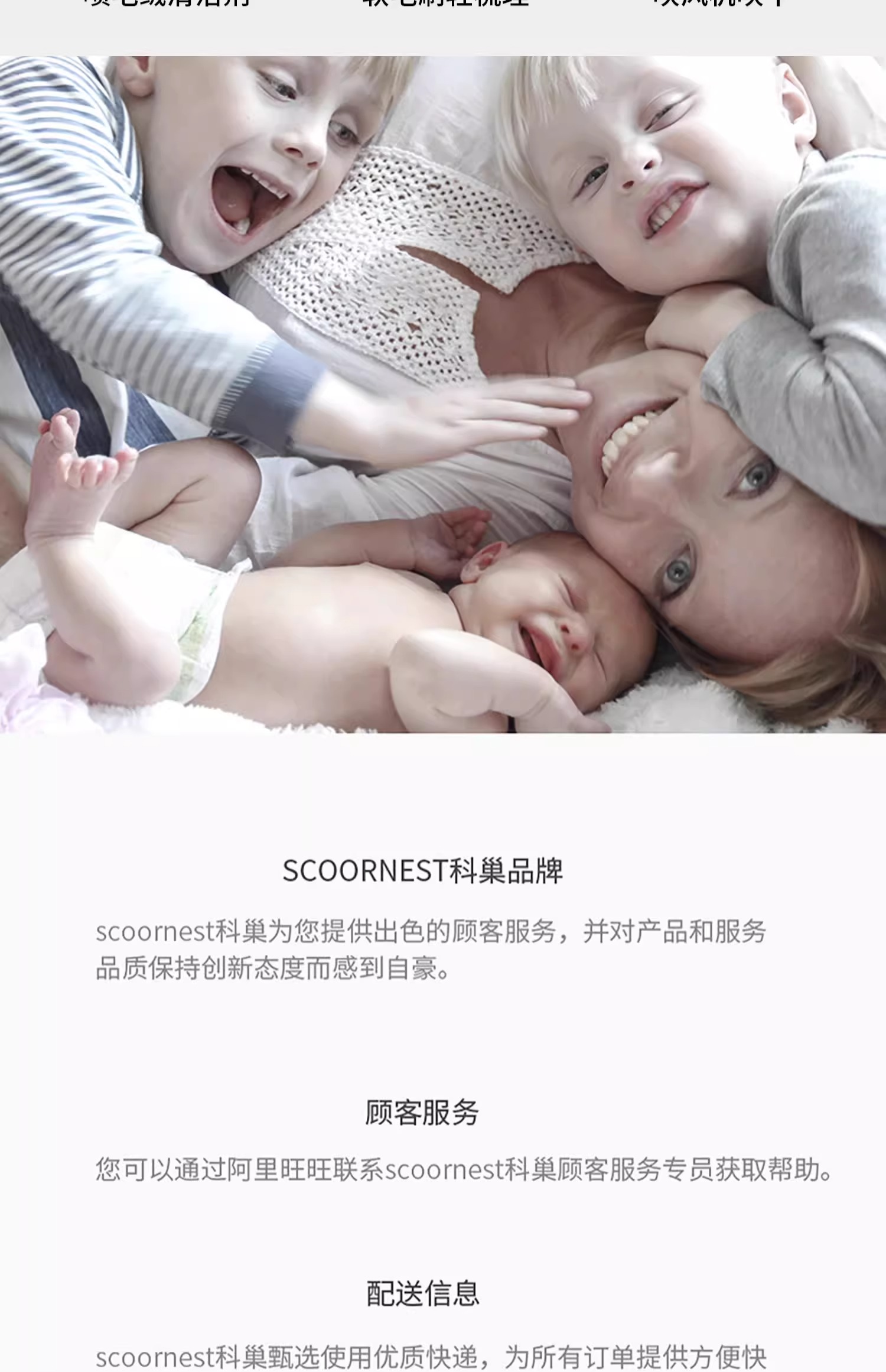 - Scoornest始终秉承给每一位宝宝送去科学的、关心的、创新的成长体验,通过提供商品和服务,使顾客形成守护、发展、巩固这种弥足珍贵的亲情的爱。