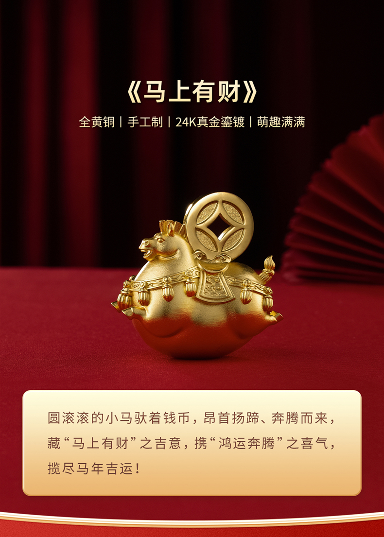 铜师傅《马上有财》客厅桌面铜马摆件 家居装饰工艺品 新年礼物