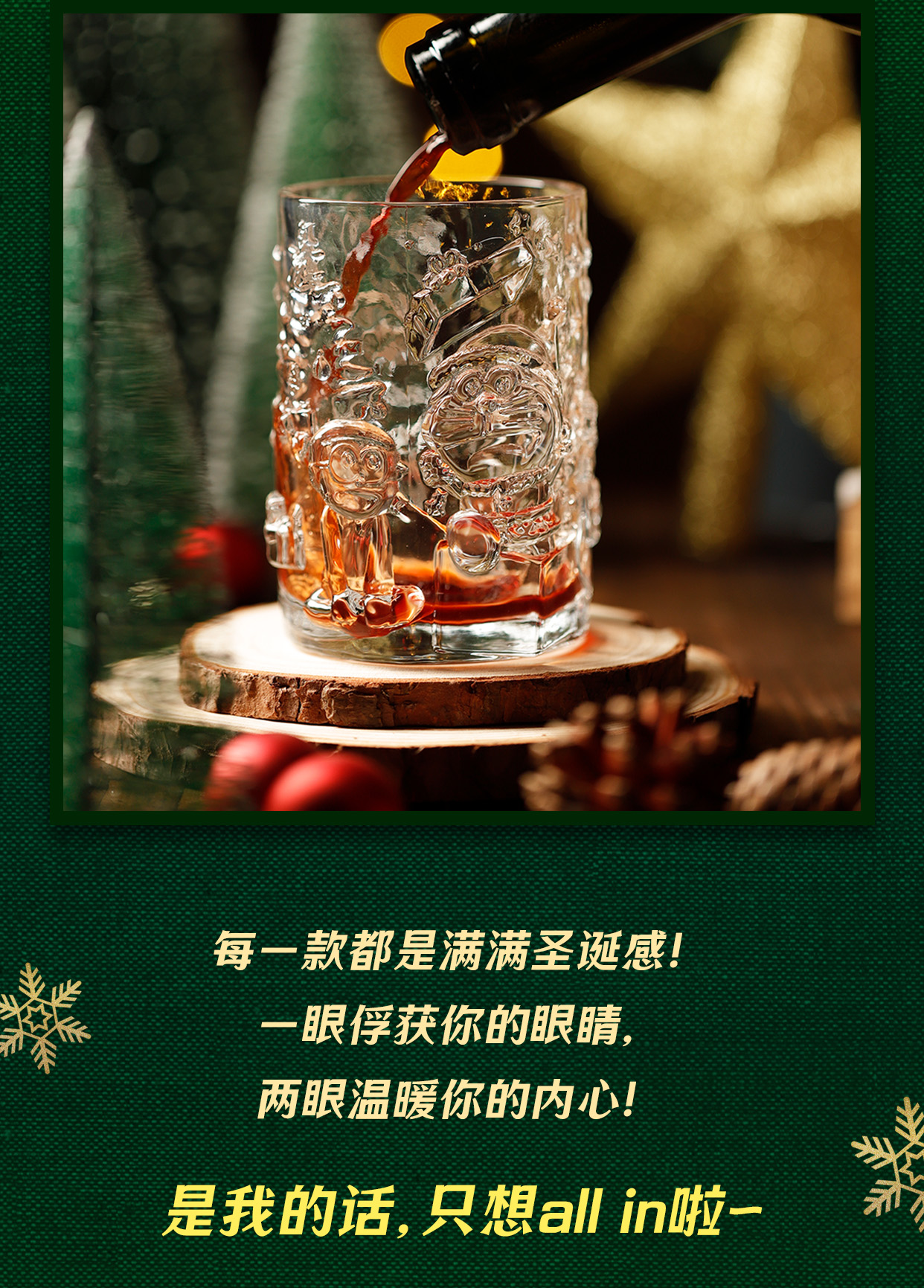 【已下架】哆啦A梦 圣诞款浮雕玻璃水杯1只装 [福利品]