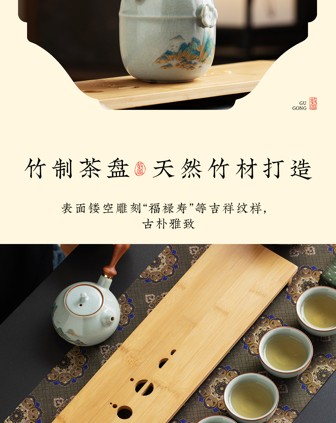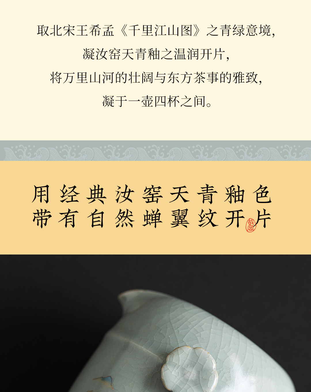 【赠“摸金招财”擦手巾】上新了故宫·千里江山汝瓷茶具,将传世名画与汝窑瑰宝融合,养出你独有的一片江山【预售4月15日陆续发货】【G】