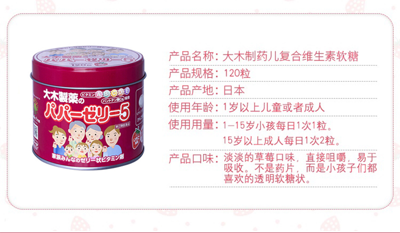 日本大木儿童综合维生素软糖草莓味
