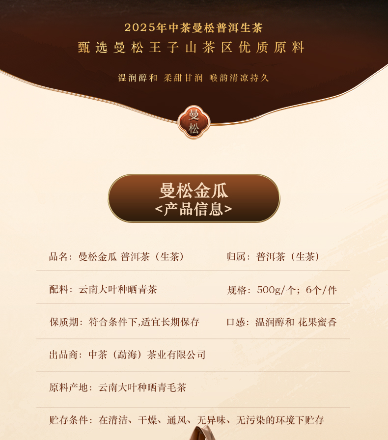 中粮-中茶曼松金瓜2025年曼松王子山核心产区优质原料500g礼盒装 /云南干仓直发