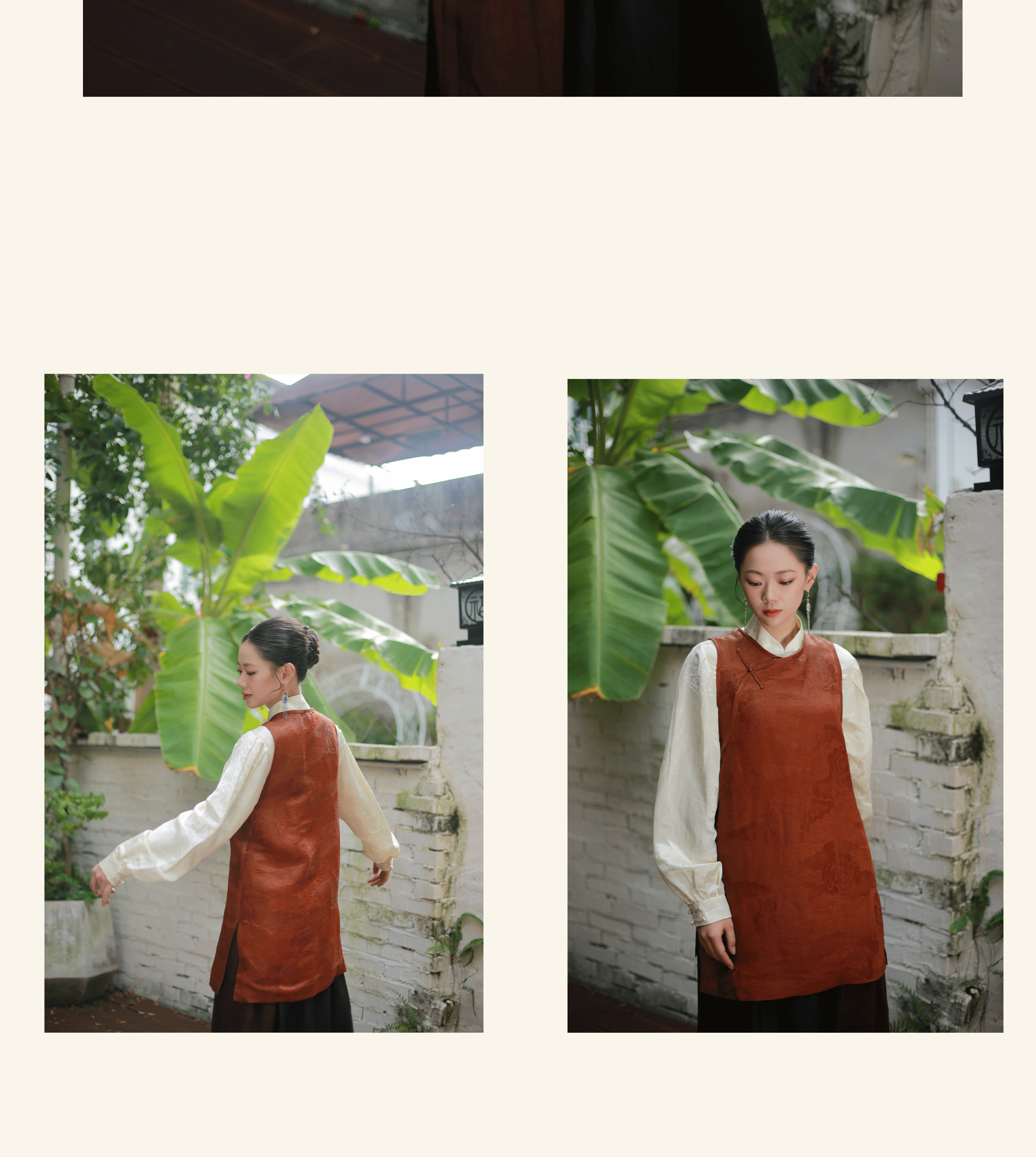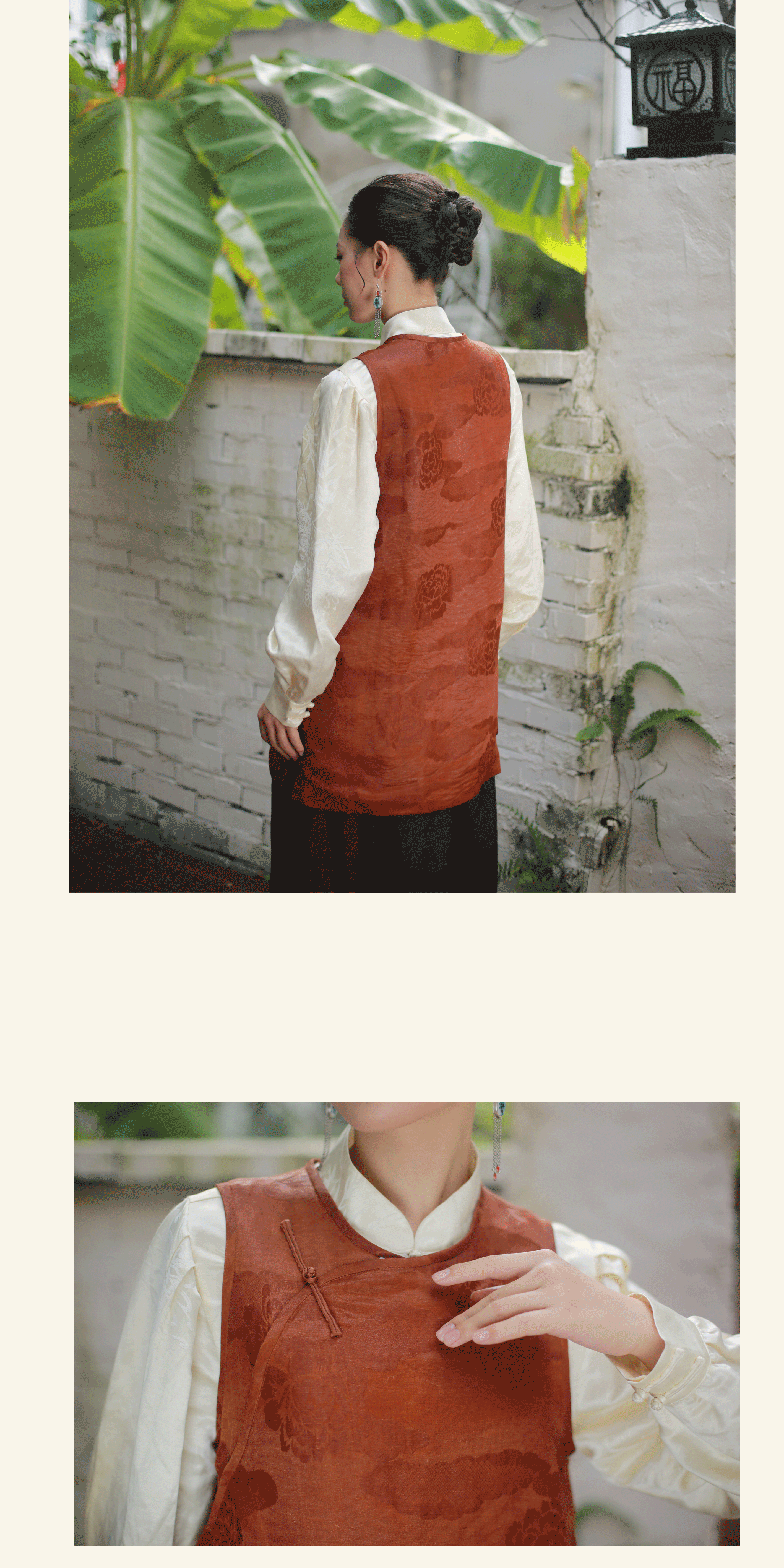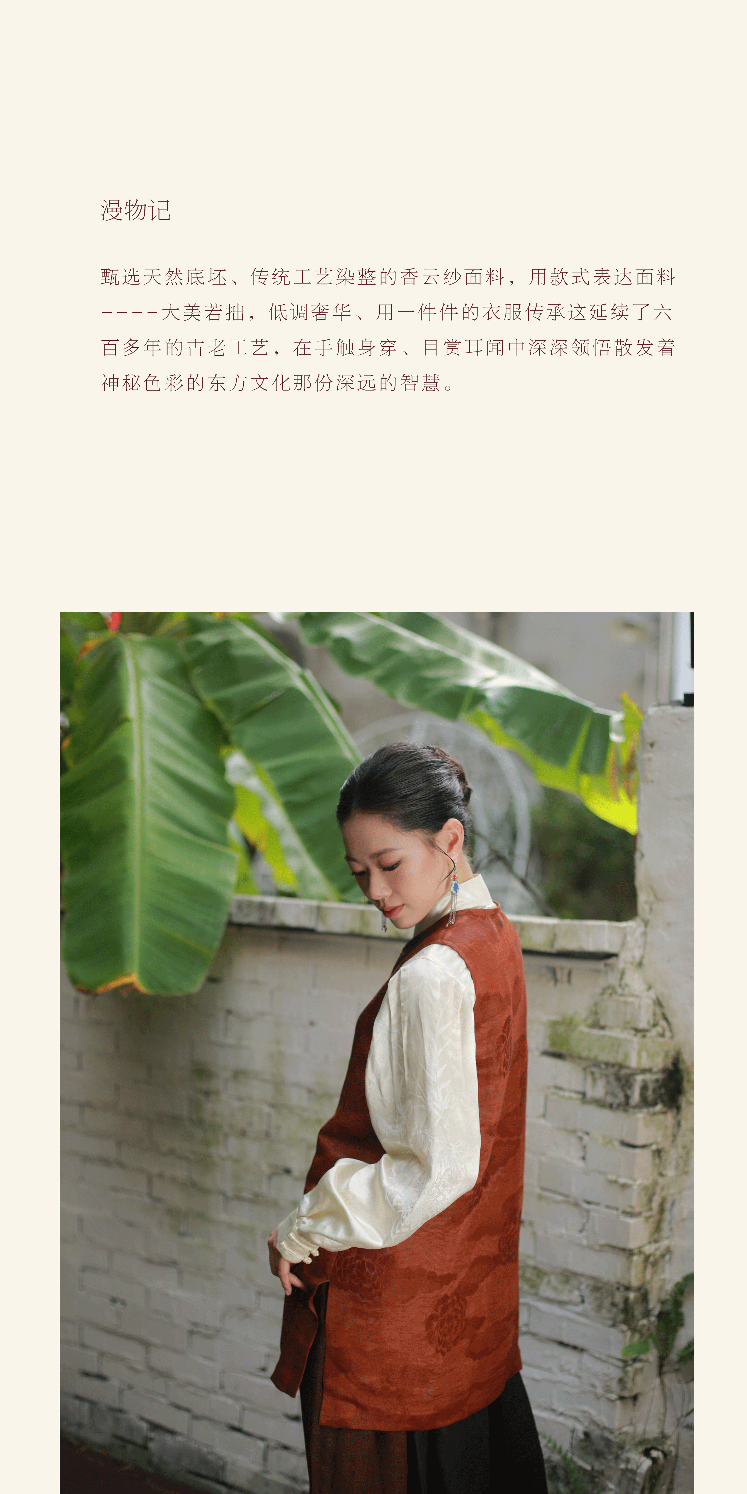 漫物记丝麻红云纱祥云牡丹花立领马甲mwj-M289