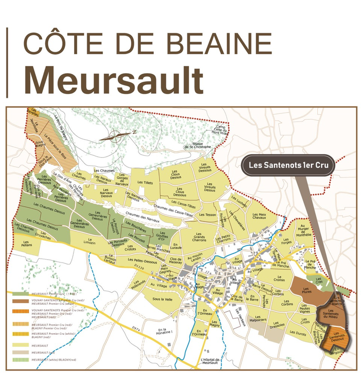 而面积接近30公顷的Satenots一级园的核心精华部分,正是这块仅有8.01公顷Santenots du Milieu地块,拥有这里土地并单独装瓶出品的大多数是大名家——Domaine Leroy,Jacques Prieurs(Clos des Santenots独占园),Comtes Lafon,Arnaud Ente(弓箭脸)和Francois Mikulski(粉笔字)。其中Leroy红头的国际不含税的价格已经接近4万,足见这个地块的潜力。