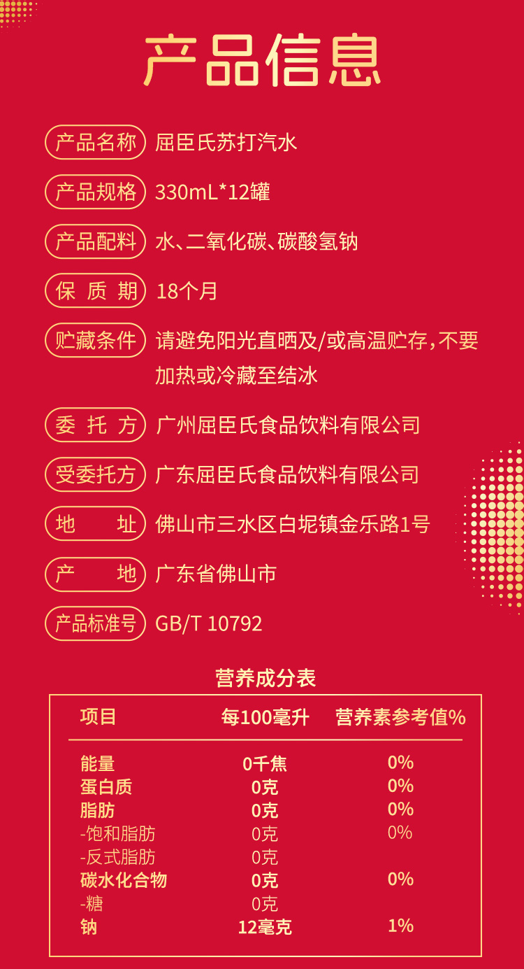 屈臣氏苏打汽水原味330ML*12*1(节庆限定装)