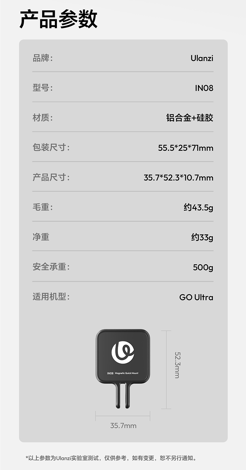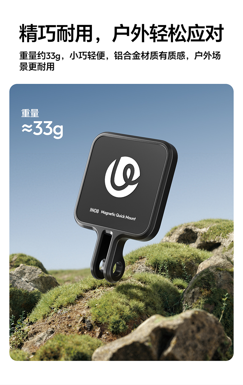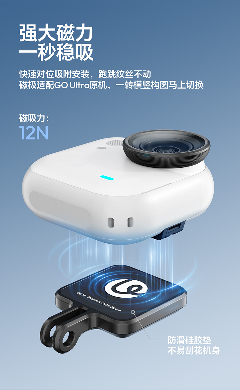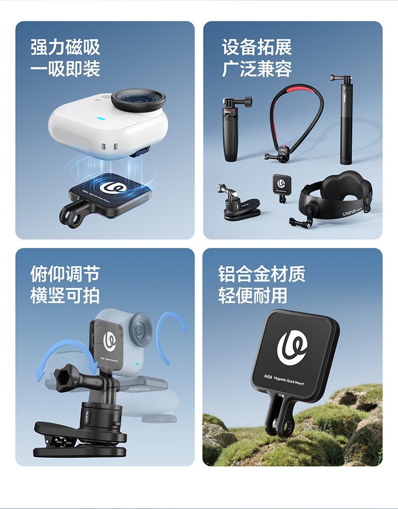 Ulanzi优篮子 IN08影石GO Ultra口袋相机磁吸转接头适用Insta360户外运动相机配件仰俯拍照摄影Vlog拓展配件