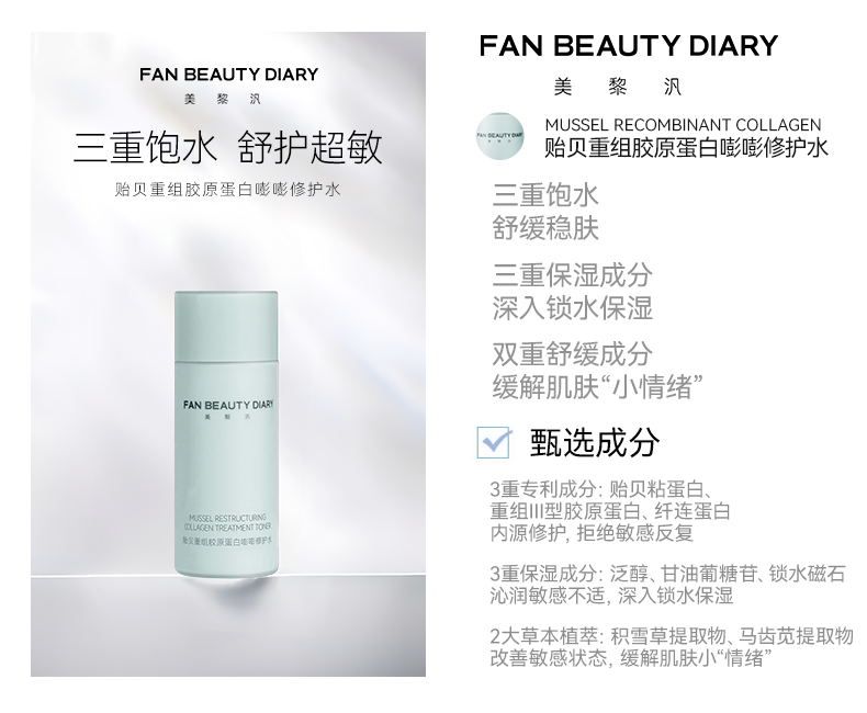 【双十二返场】贻贝重组胶原蛋白嘭嘭修护水100ml+乳液75ml+洁颜奶泡200ml